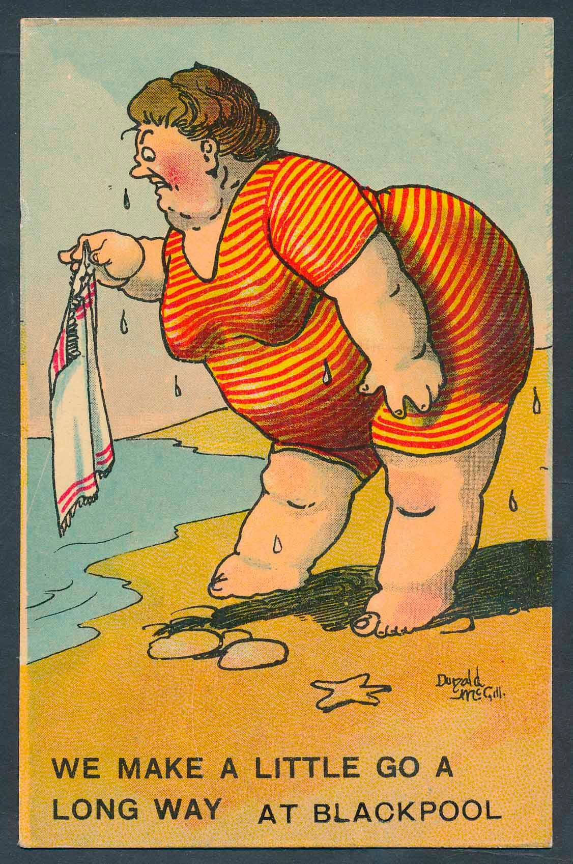 Comic. McGill. Coln. in 2 modern albums mainly middle period but earlier cards noted. World of Donald McGill book. Qty. approx. 400 (B)