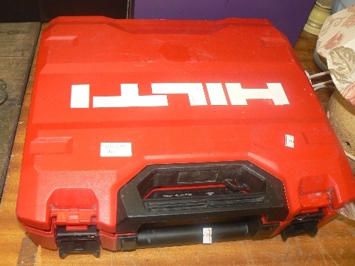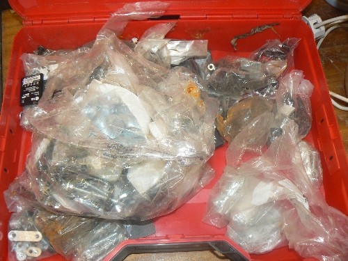 BOX OF CLAMPS, SCREWS, WASHERS ETC ETC. CONTAINED IN LARGE HILTI CASE.