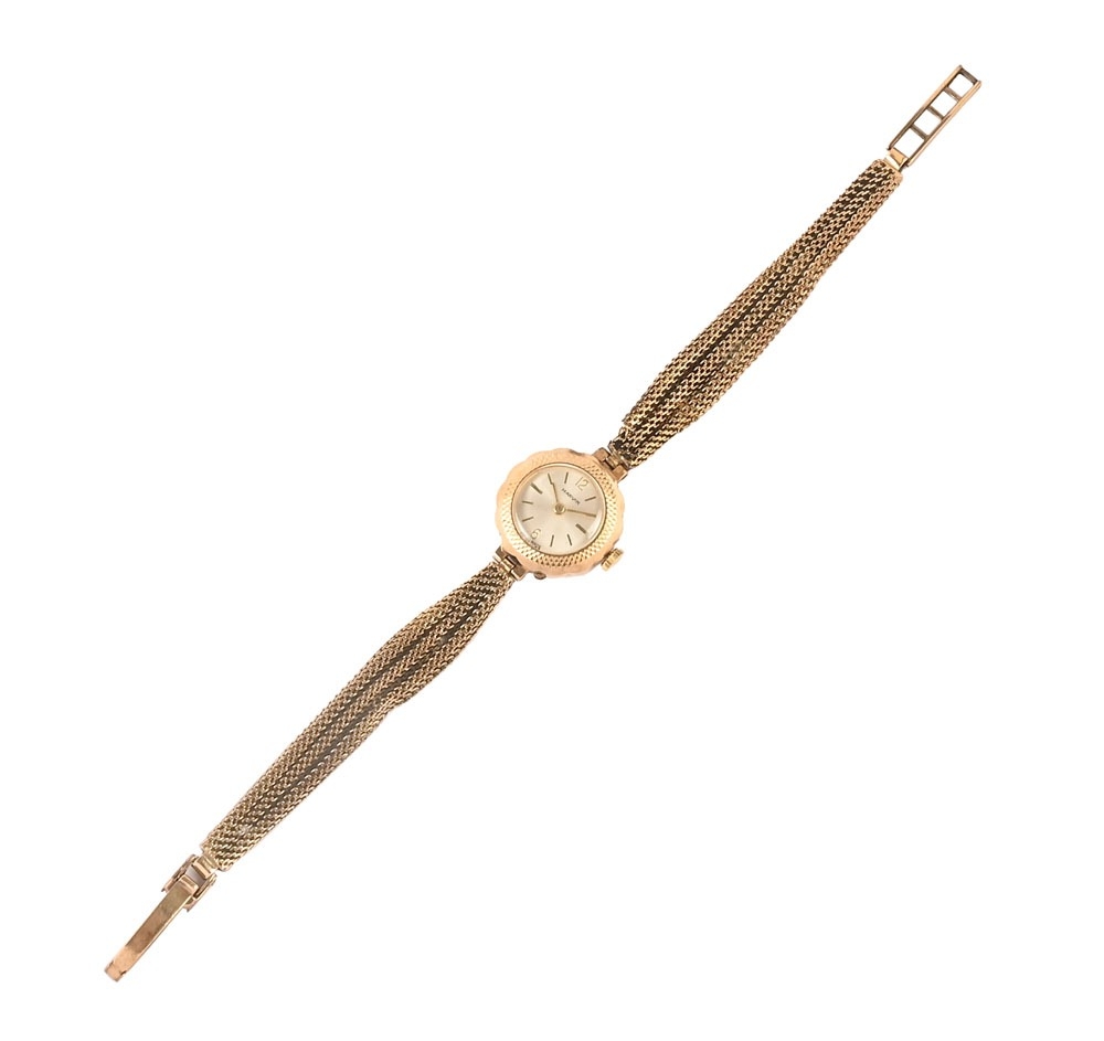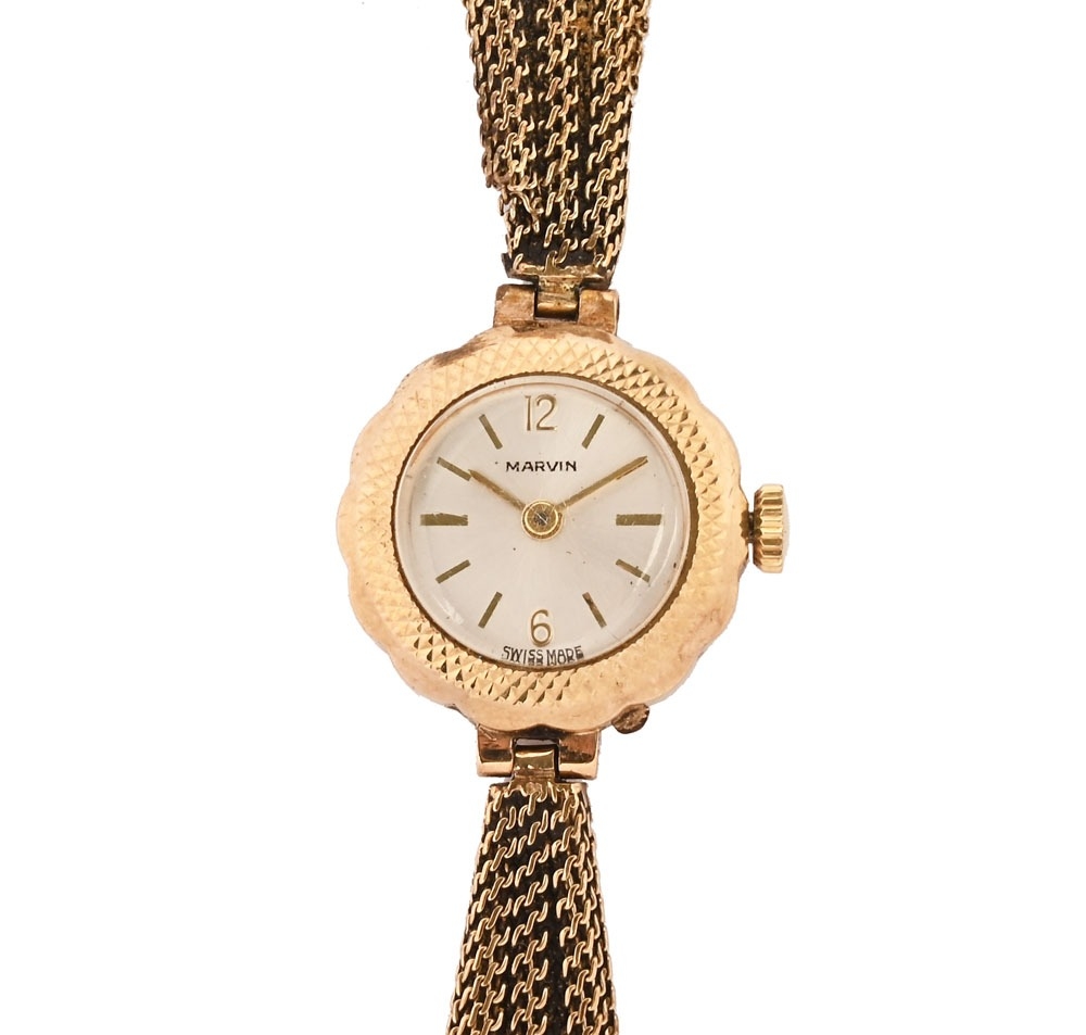 A Marvin 9 ct gold case and strap ladies wristwatch, weight 14.7 grams.