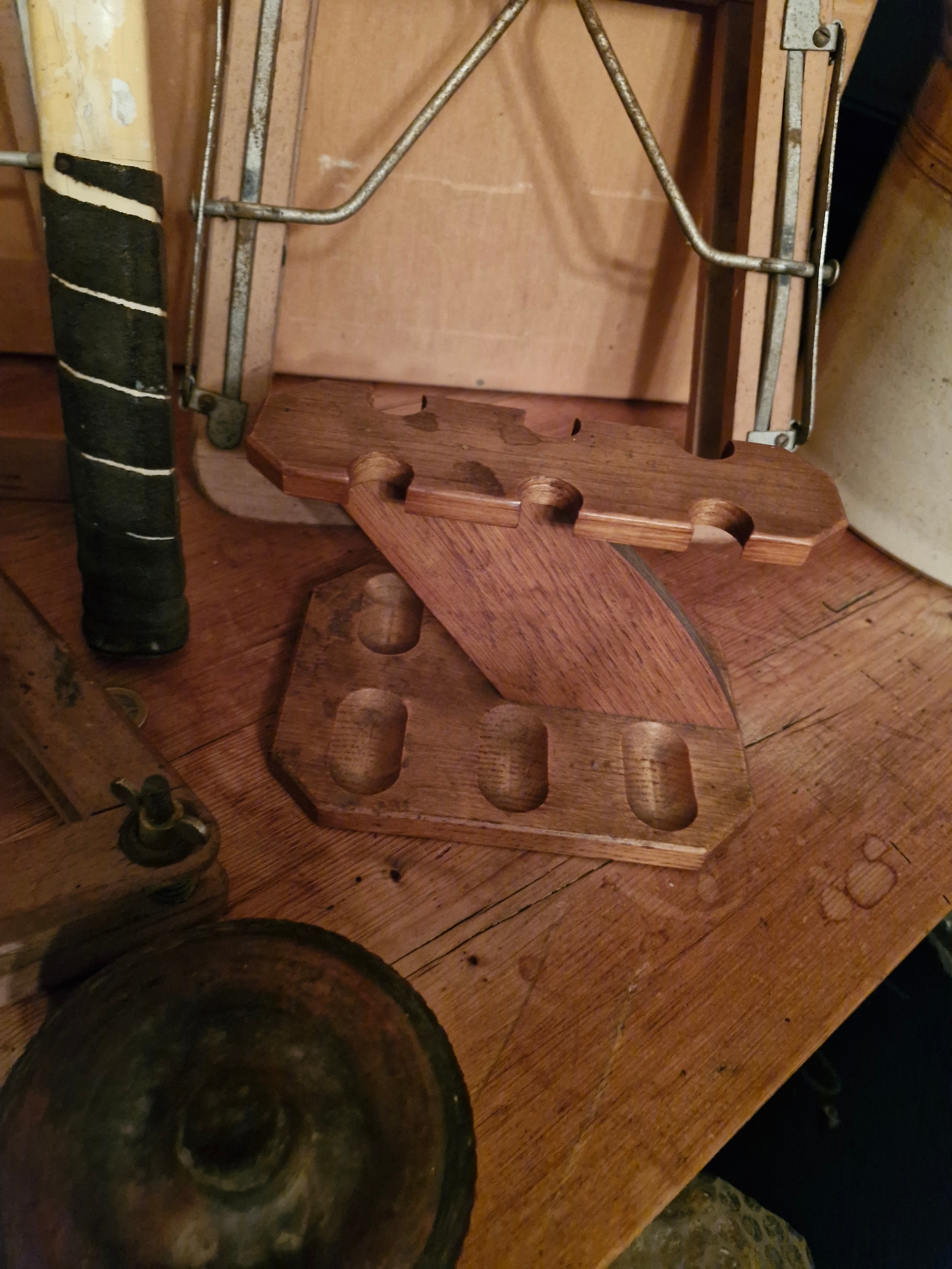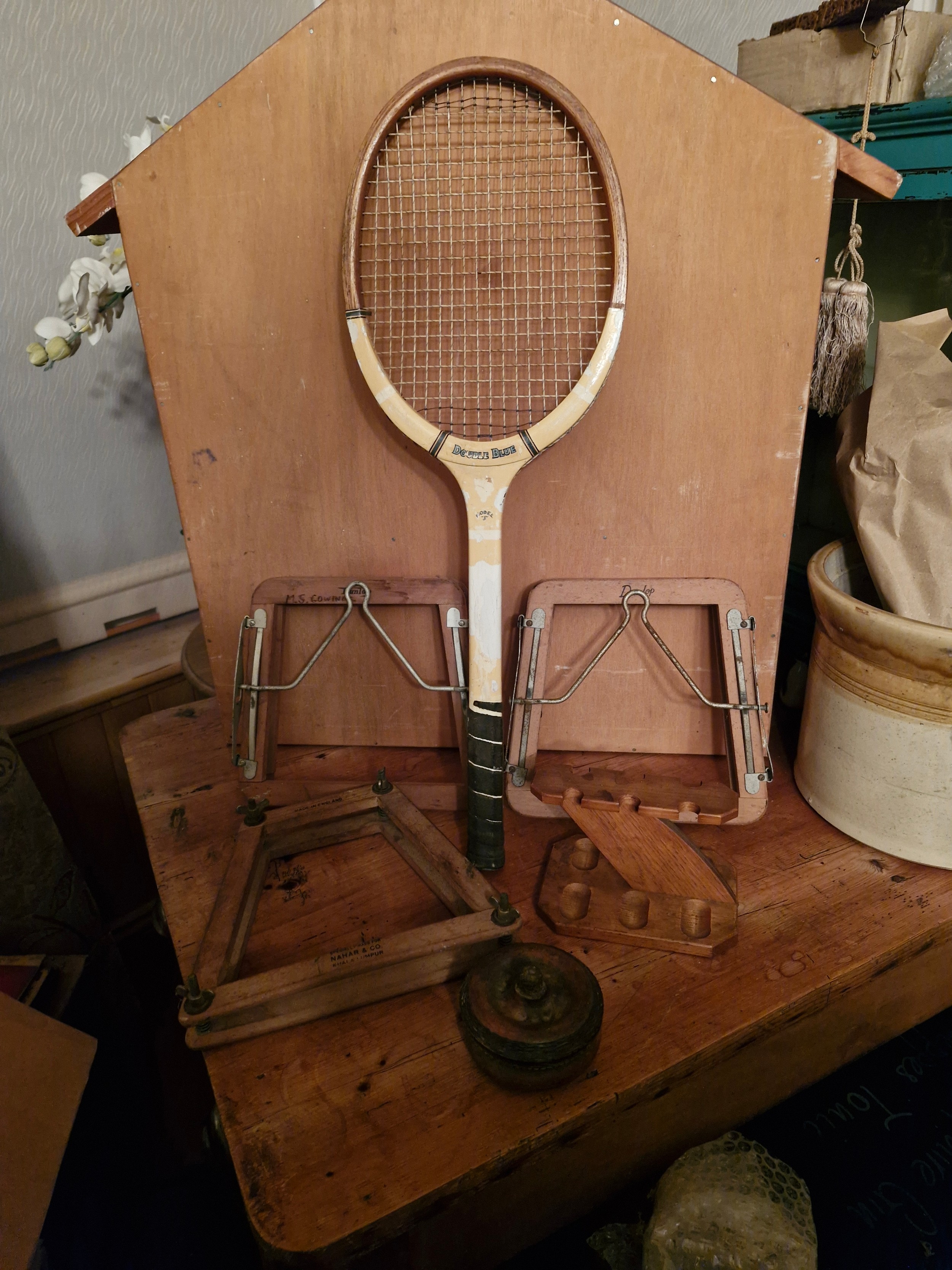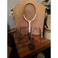 Vintage tennis racquet - 3 press frames and a tobacco pipe holer -