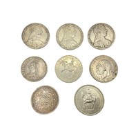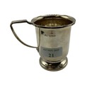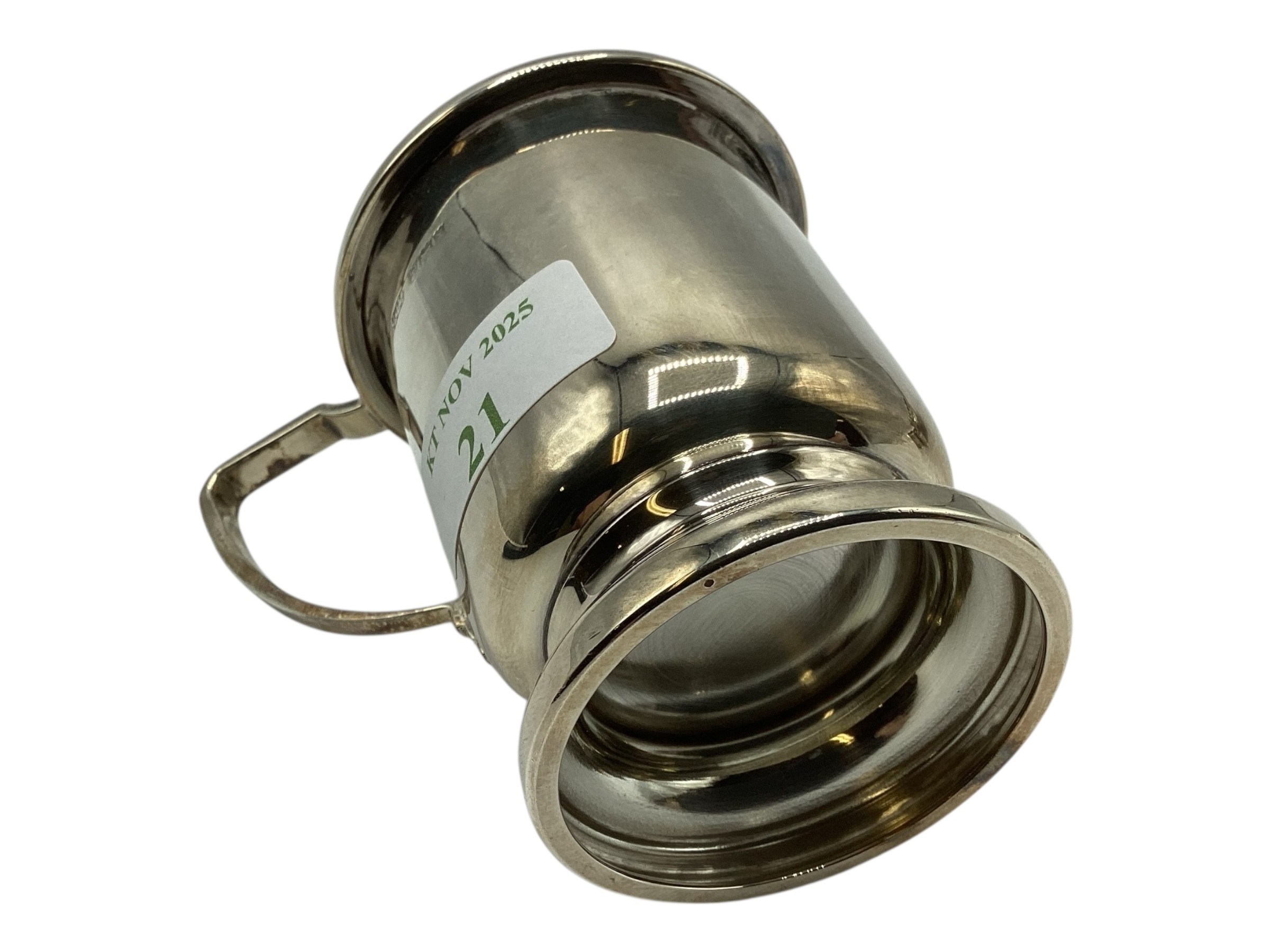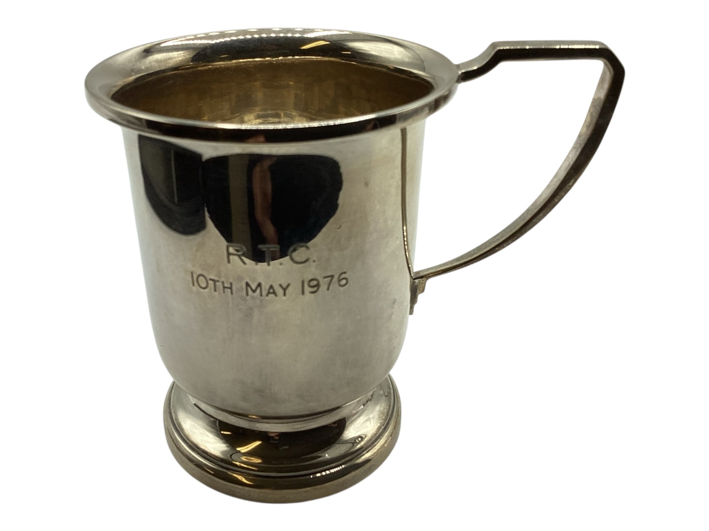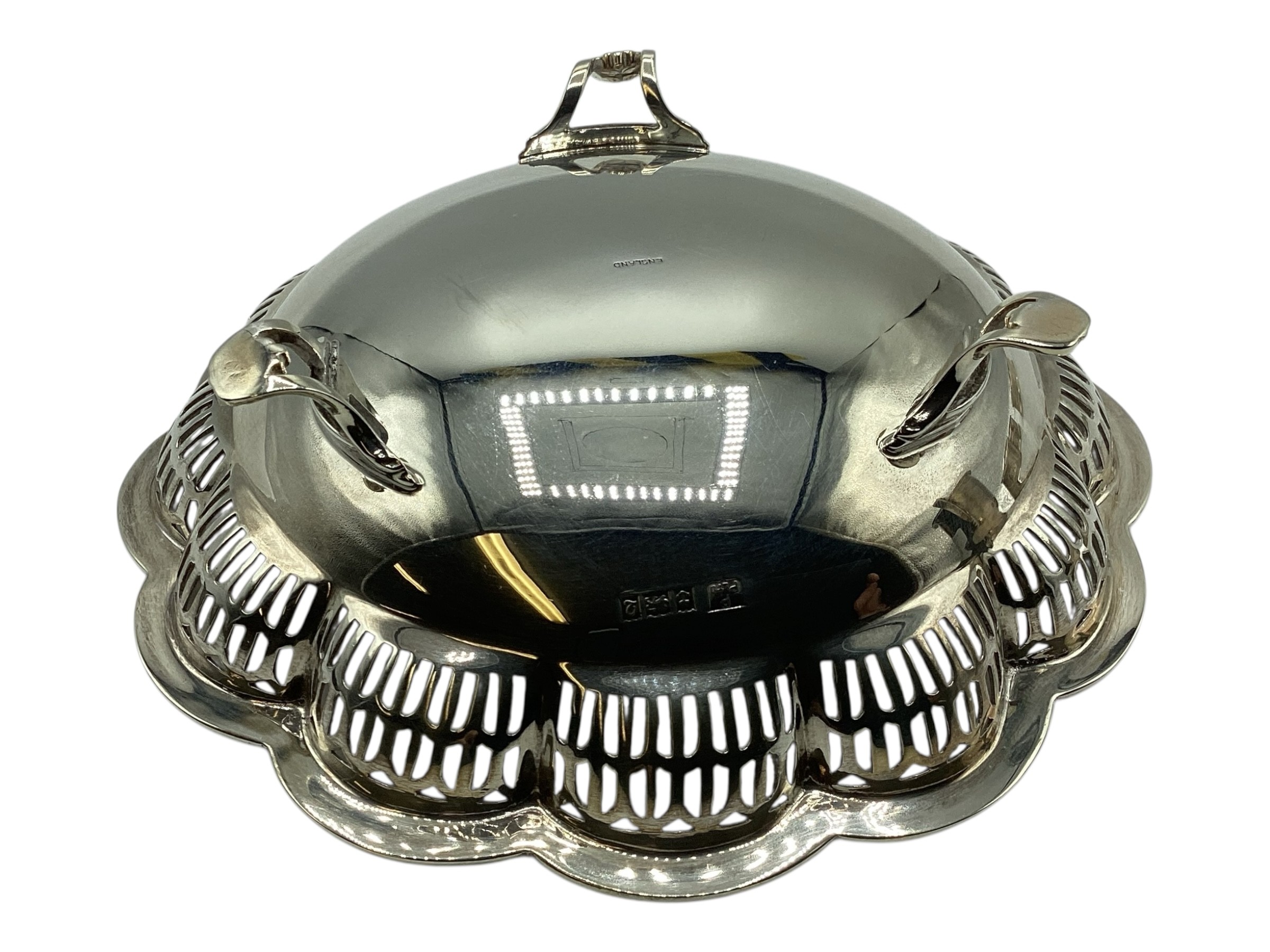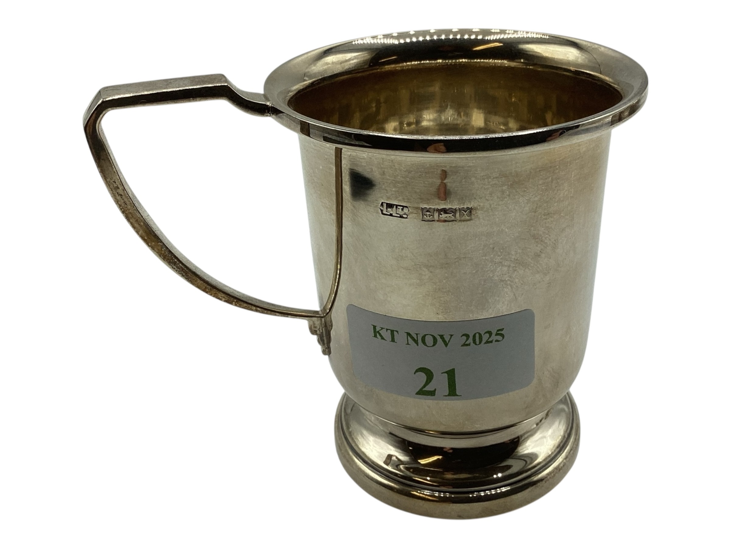 A collection of sterling silver items, napkin rings christening cup and a small pierced bowl. Various dates and makers. 238g