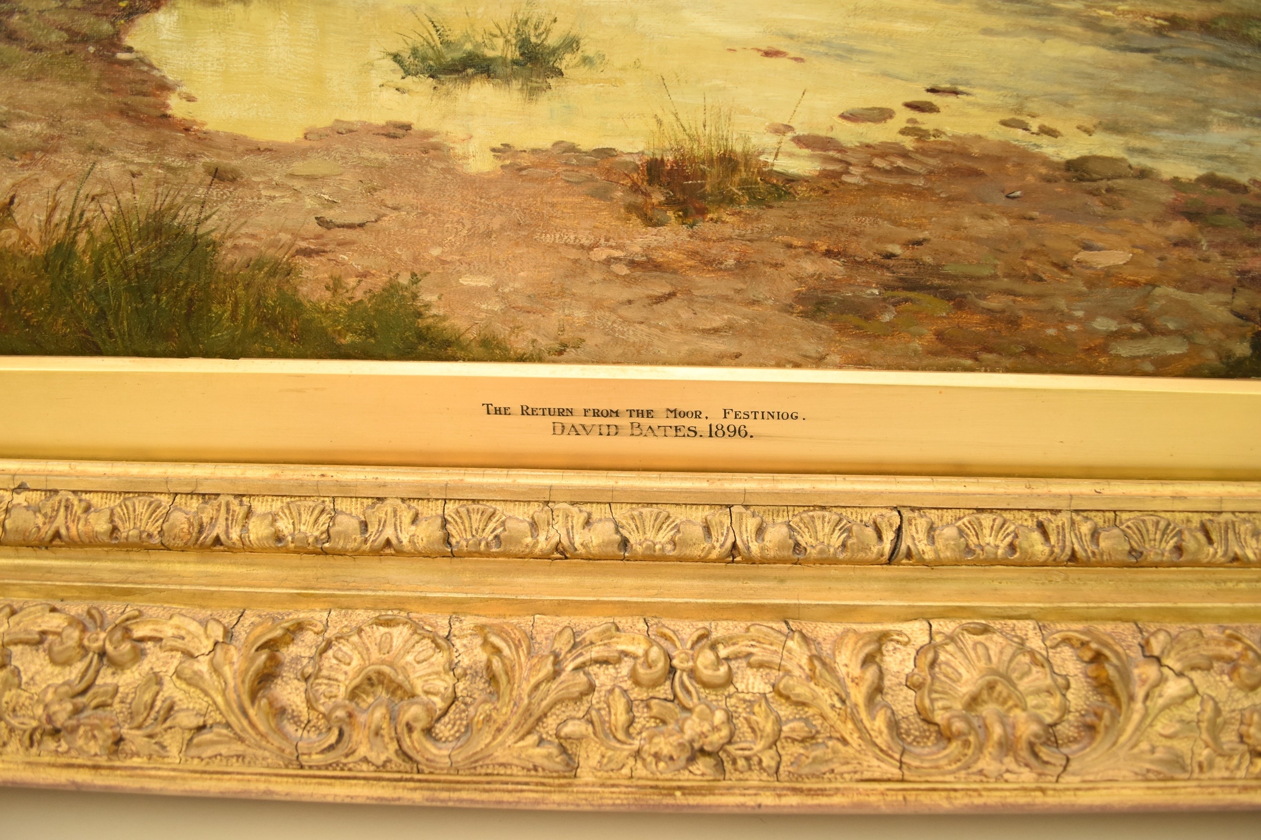 David Bates (1840-1921) The Return from the Moor, Near Ffestiniog, signed and dated 1896 lower left, titled verso, oil on canvas, 51 x 76 cm, frame 79 x 104 cm Provenance: Private Mid Wales collection