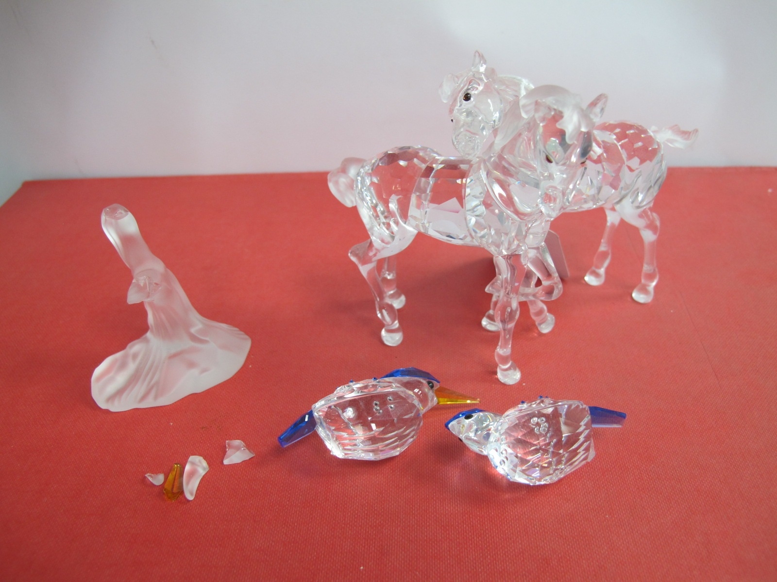 Swarovski Crystal Glass Two Foals Group, 9cm high together with Swarovski Crystal Glass Kingfishers Group, 9.5cm high