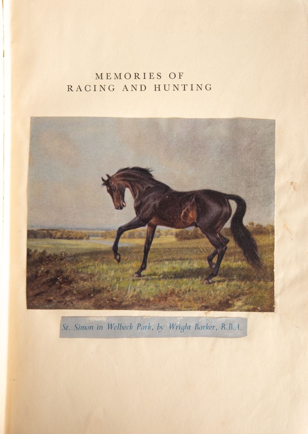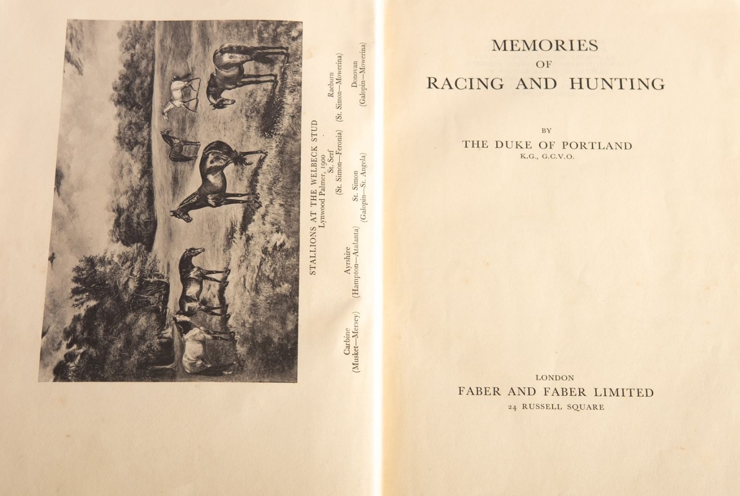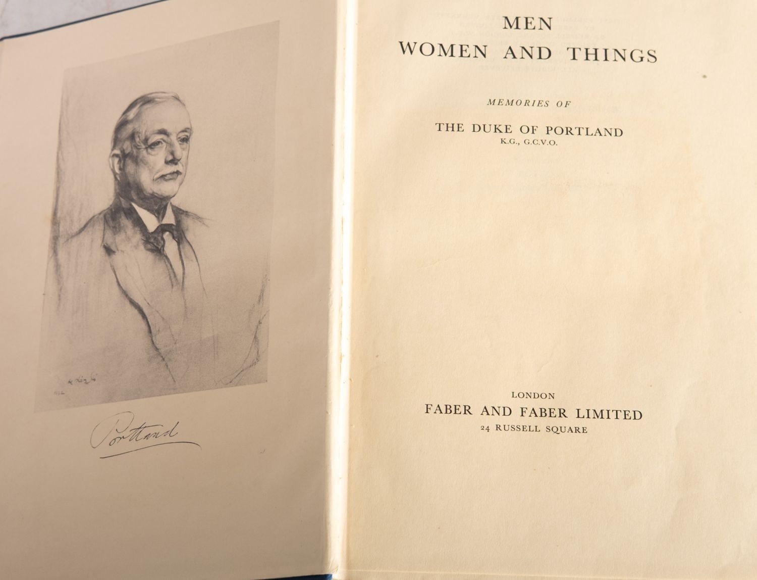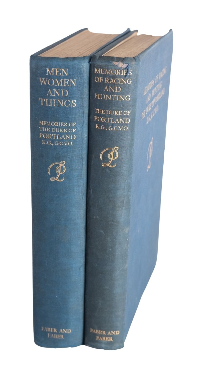 CAVENDISH-BENTINCK, William Arthur Charles (6th Duke of Portland). Two 1st editions: Memories of Racing and Hunting, 1935; Men, Women, and Things..., 1937; (the first with gift inscription to ffep 'Christine Hamlyn.... from Betty and Arthur Asquith Christmas 1935... Clovelly' [son of Herbert Henry Asquith], bookplate of Christine Hamlyn, the second with tipped-in card of Frances Lady Legard inscribed 'with best wishes'), orig. blue cloth scuffed, 4to. (2)