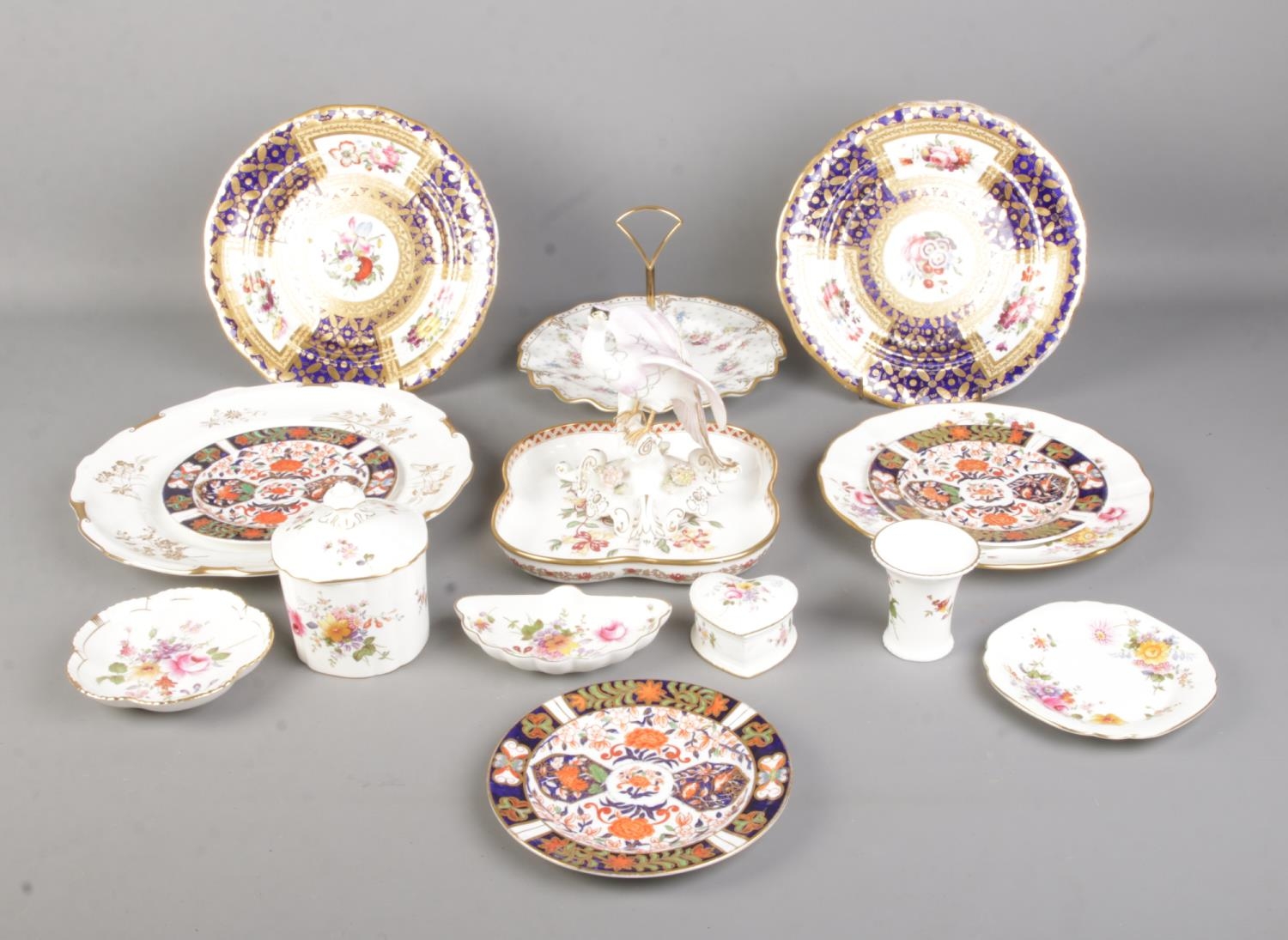 A collection of Derby and Royal Crown Derby ceramics, to include 198 pattern Imari plates, Derby Posies and eagle figure.