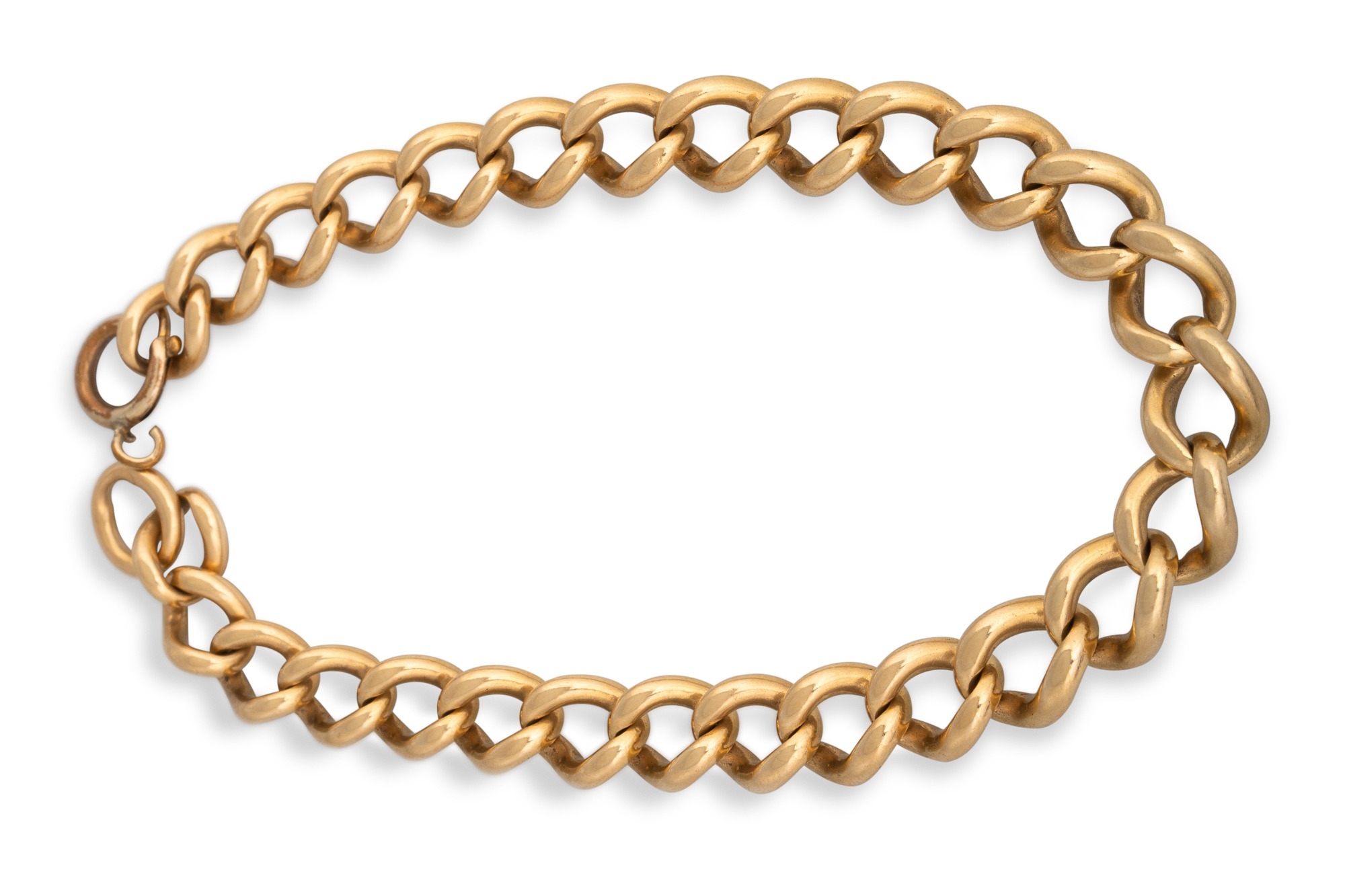 AN 18CT YELLOW GOLD BRACELET, broken clasp, 34.8 g.
