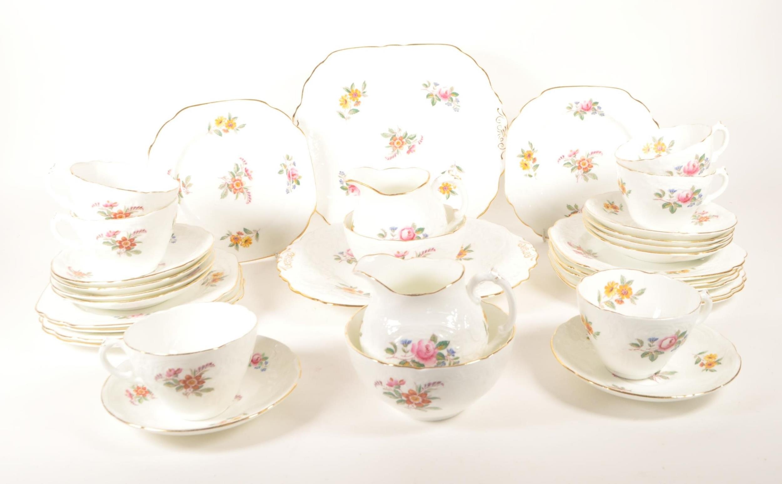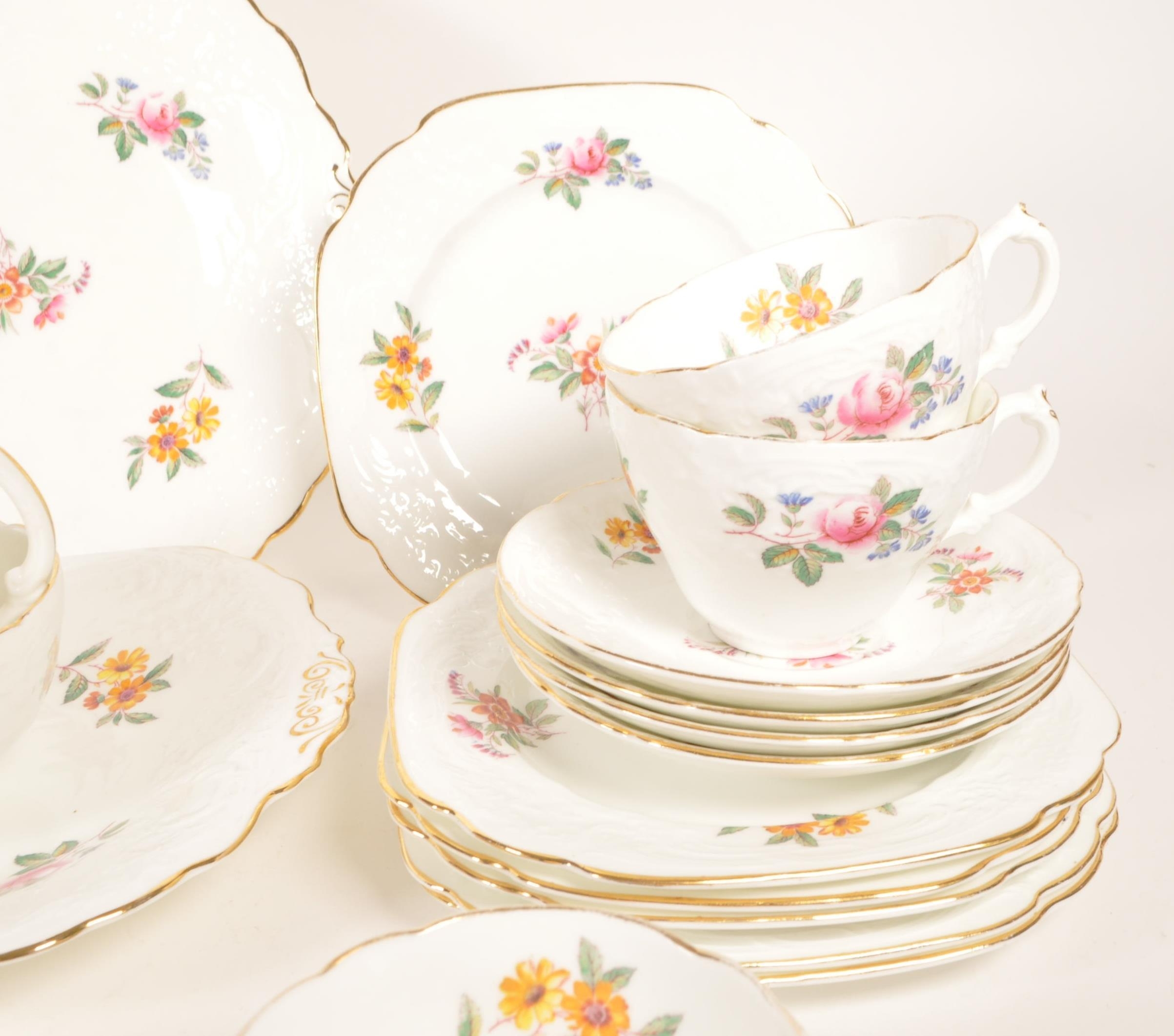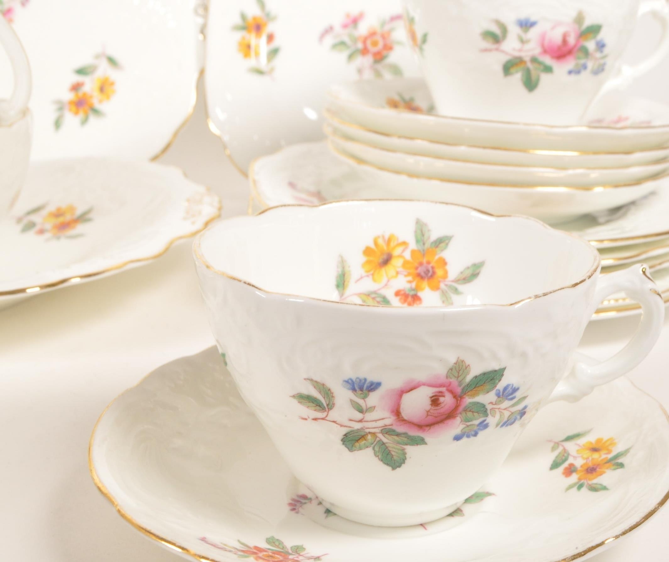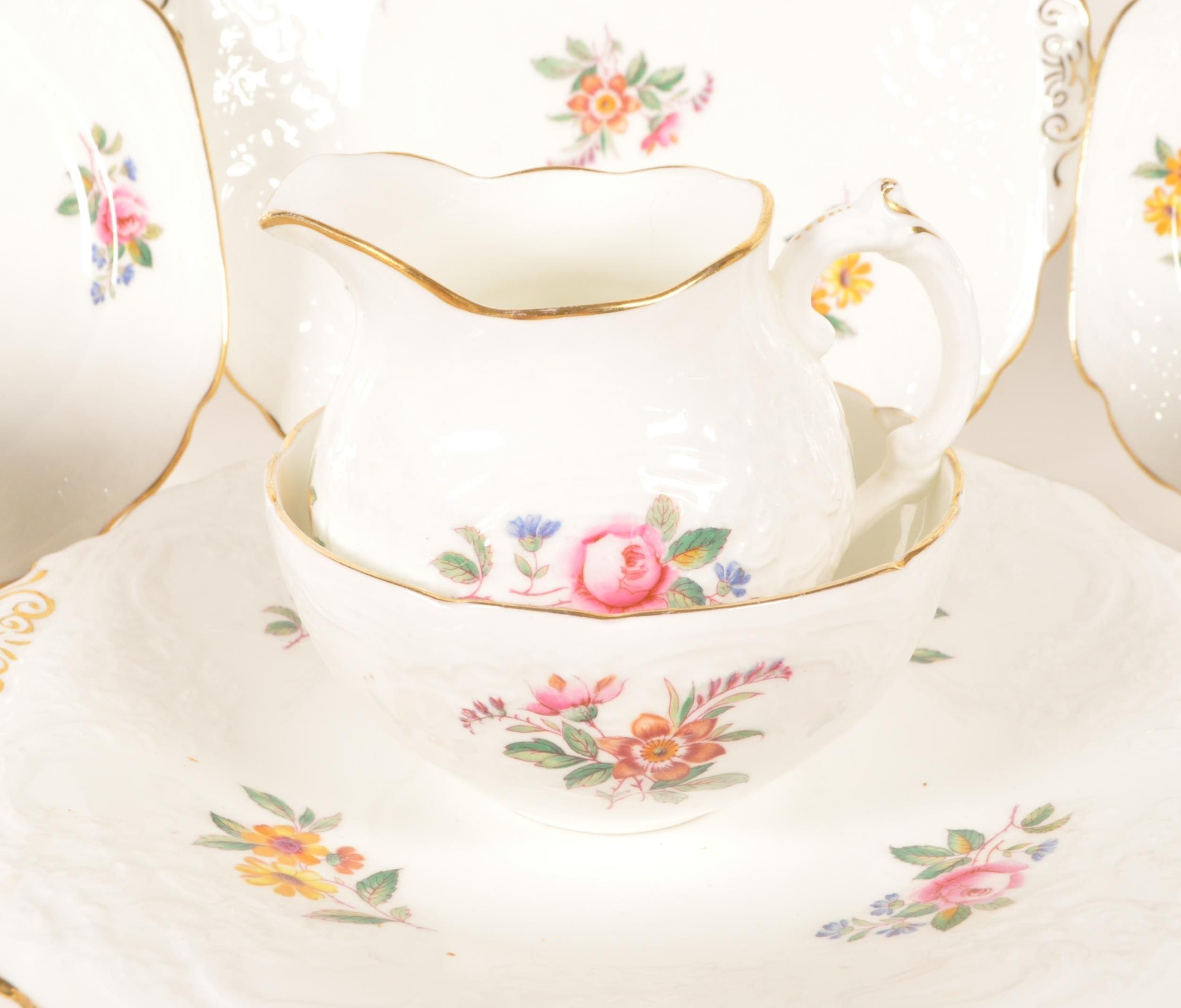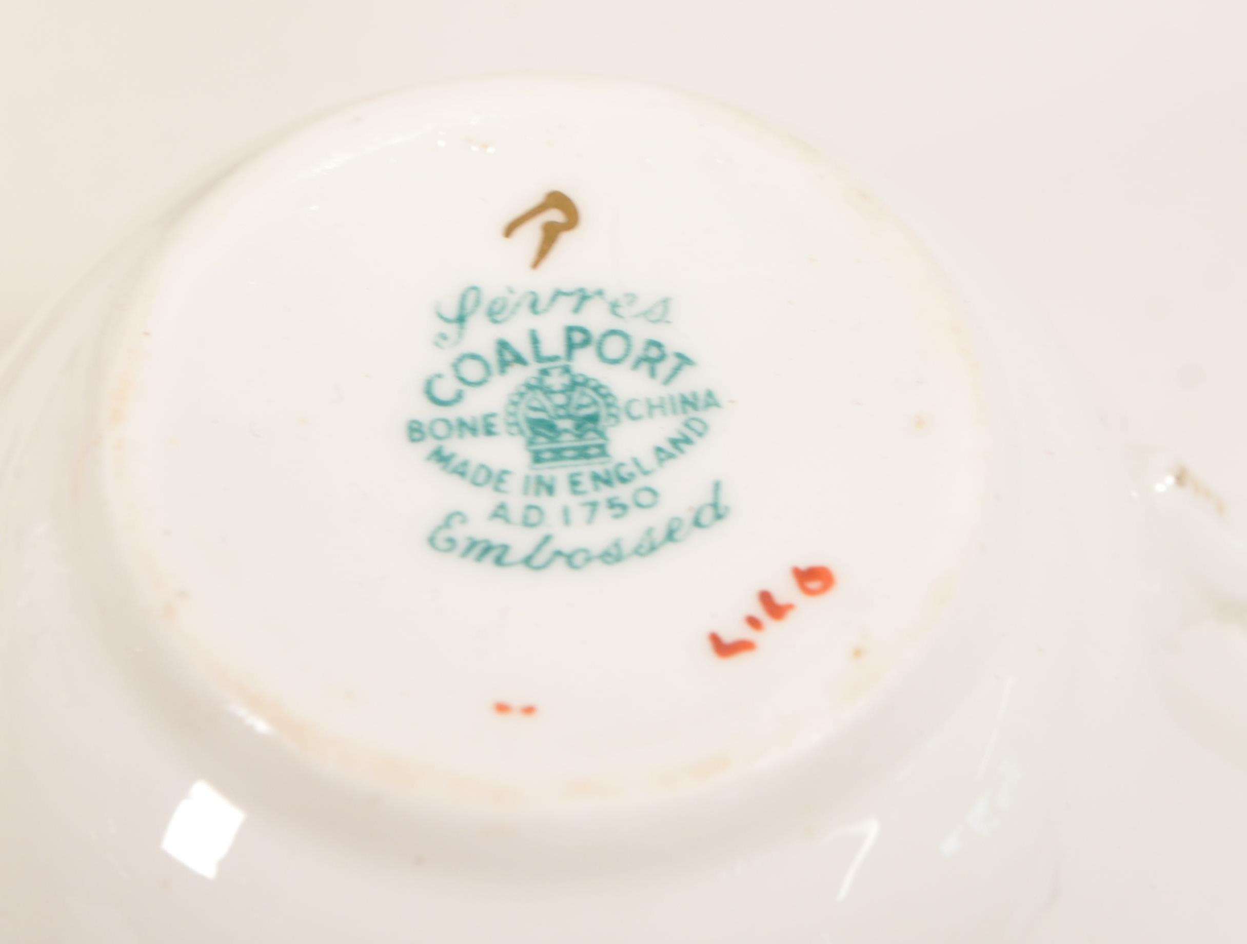 Coalport - Embossed, Sevres - Early 20th century chine porcelain tea service set. Including two milk jugs, cups, saucers, side plates (trios) and serving plate. Maker's mark to underside.