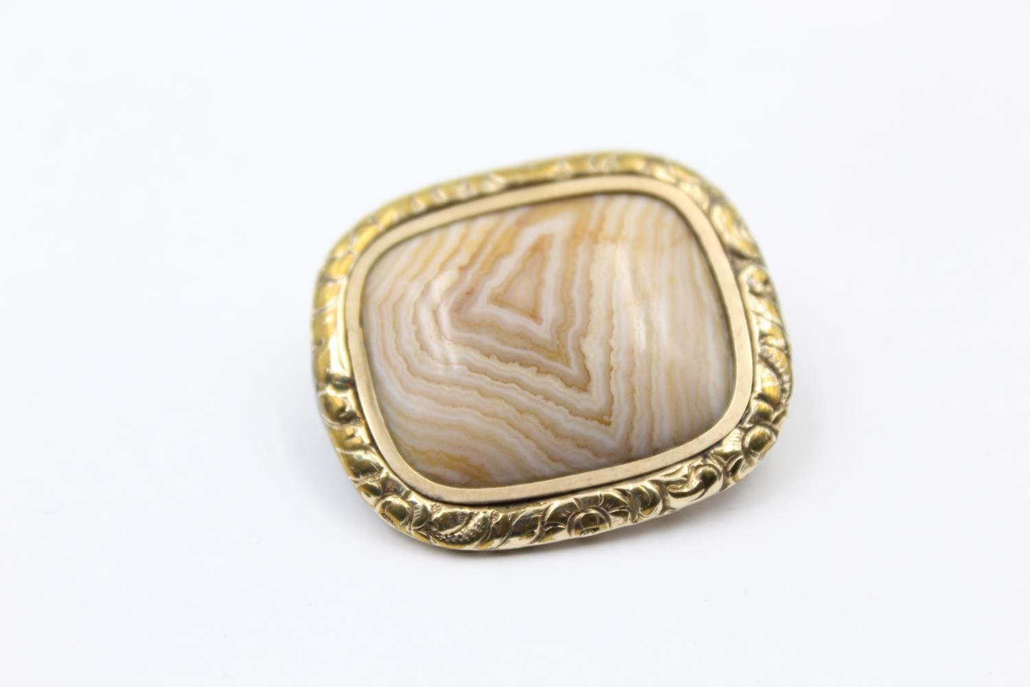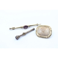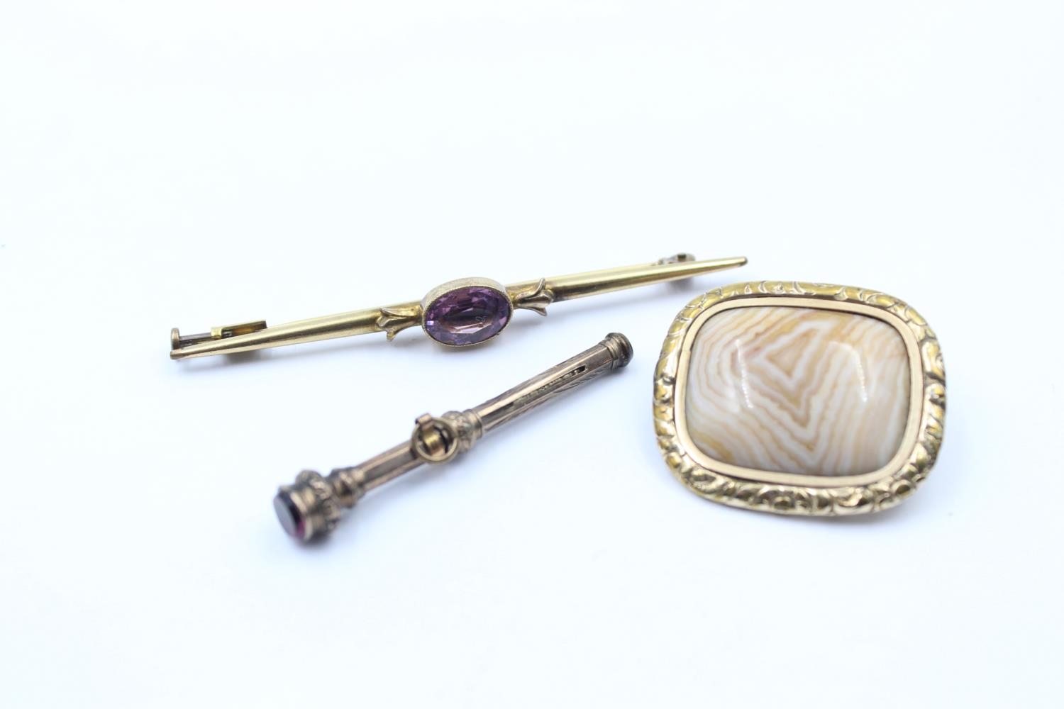 3 x low carat antique jewellery inc. agate, brooch, pencil (15.3g)