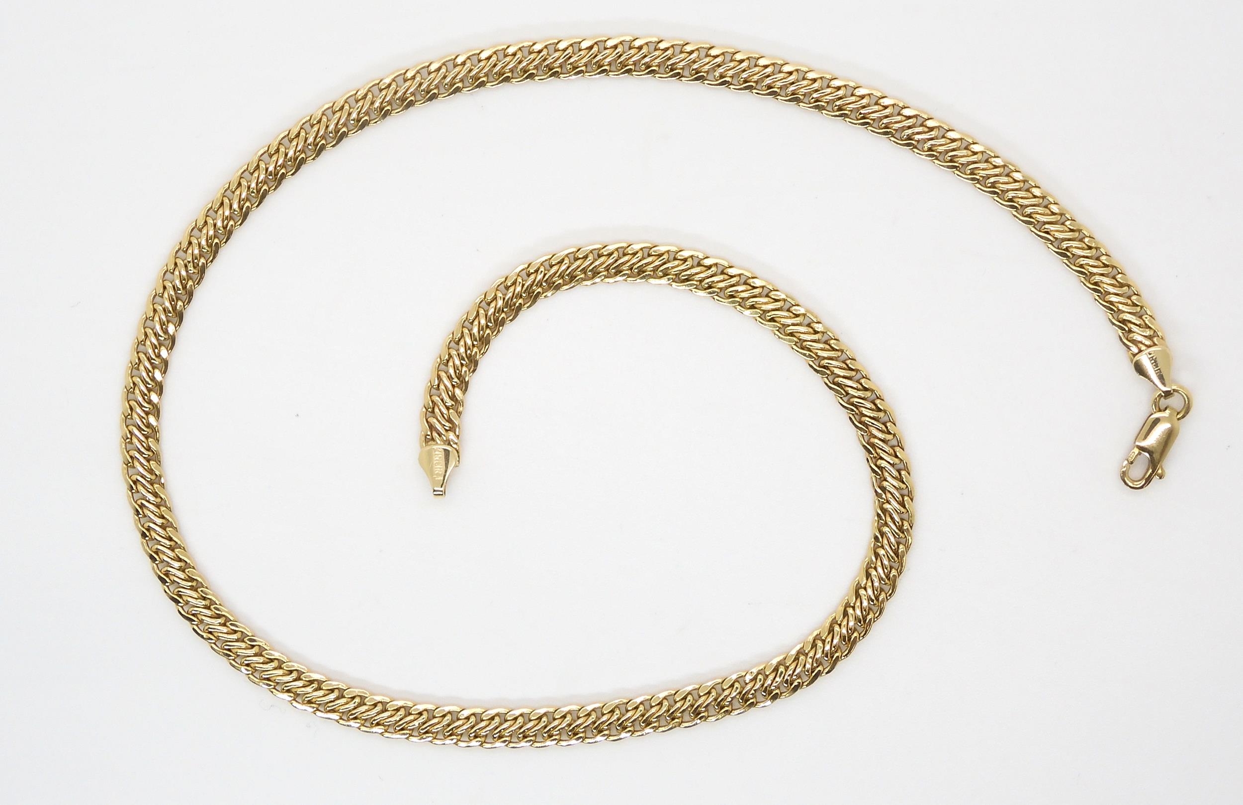 A 9ct gold flattened curb chain, length 42cm, weight 10.6gms