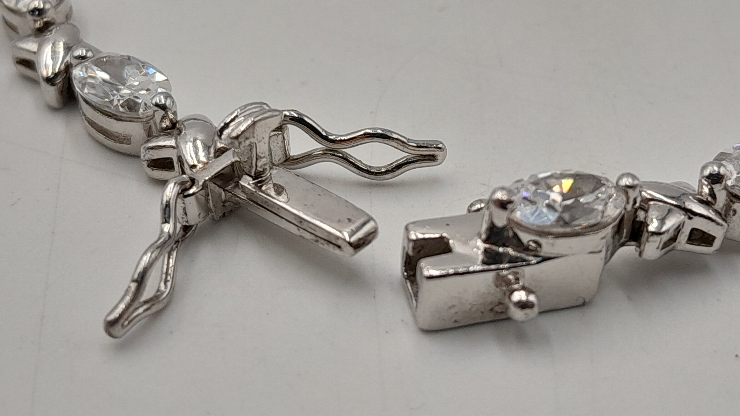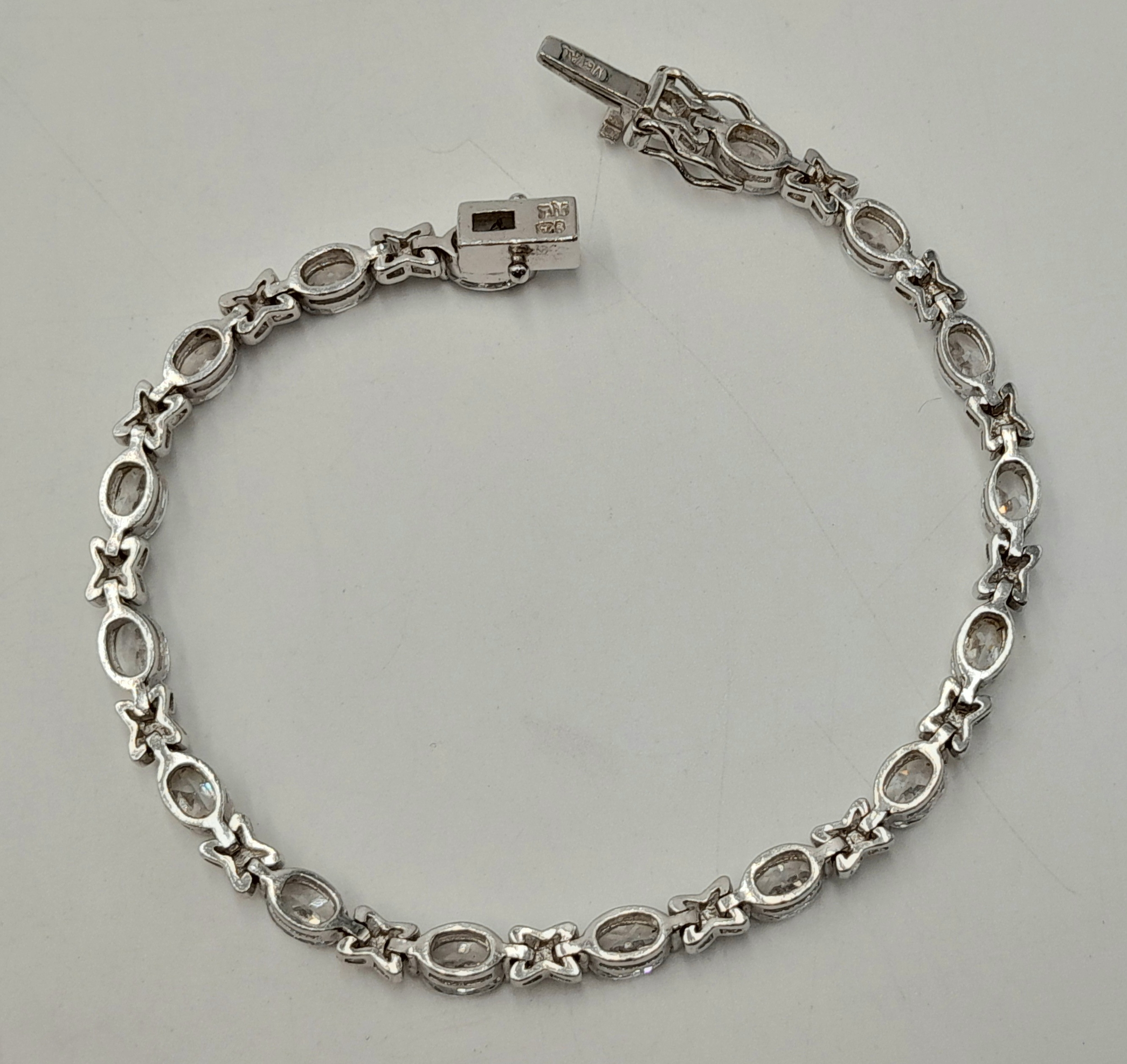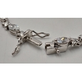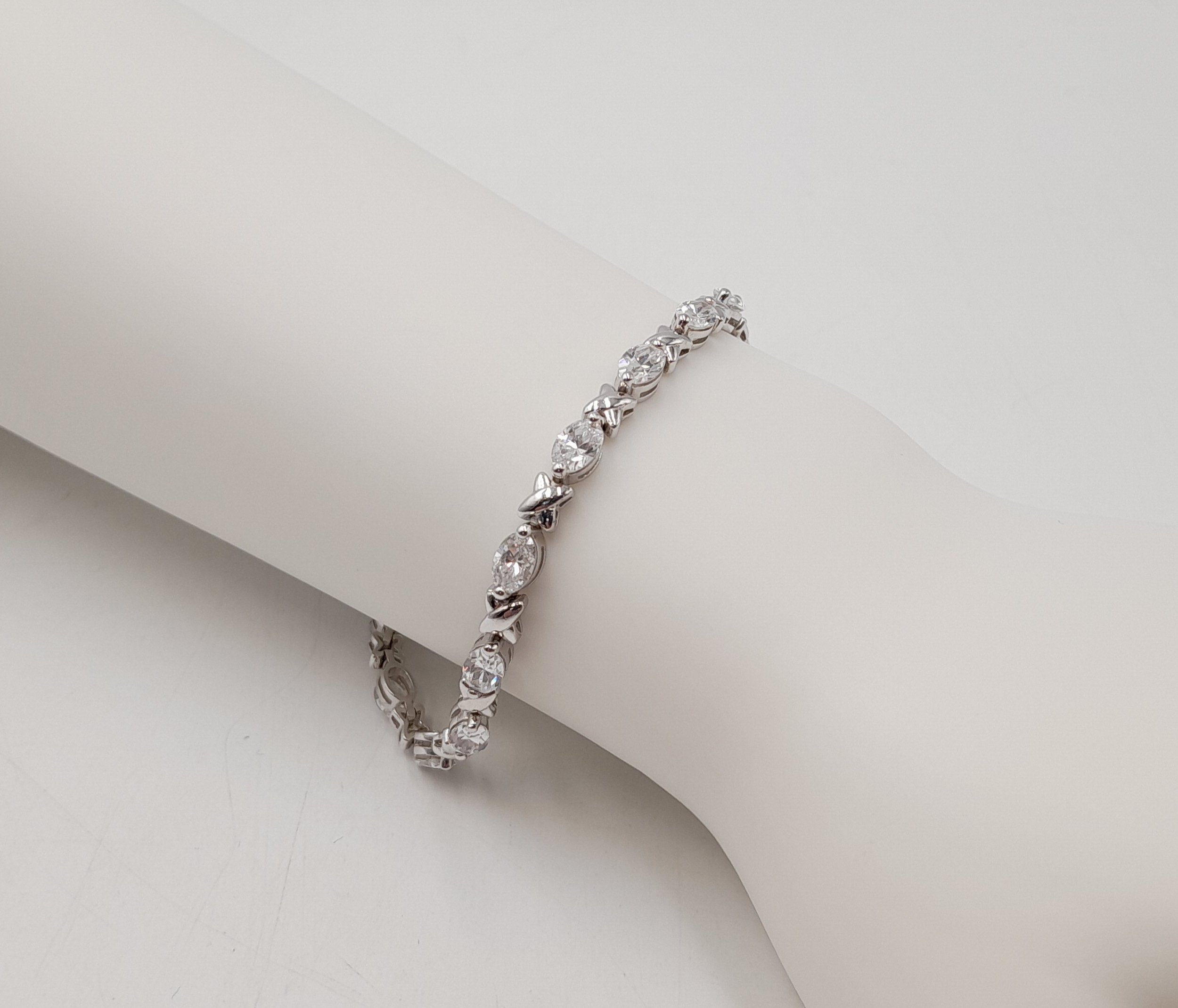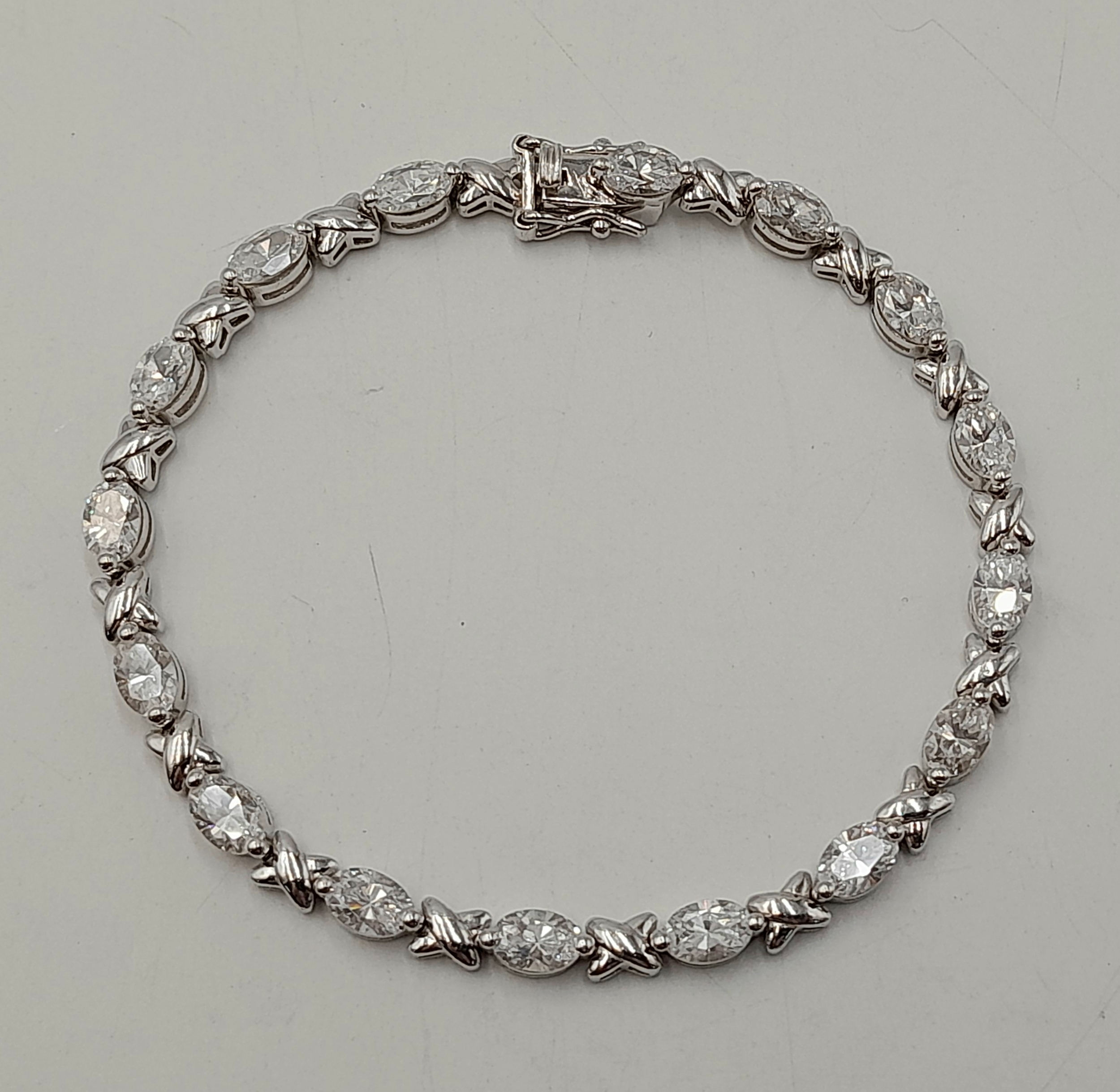 A Pretty Sterling Silver and Cubic Zirconia Love Bracelet-19cm length. Set with Sixteen 6mm Oval Cut Cubic Zirconias. Gross weight 12.62 Grams.