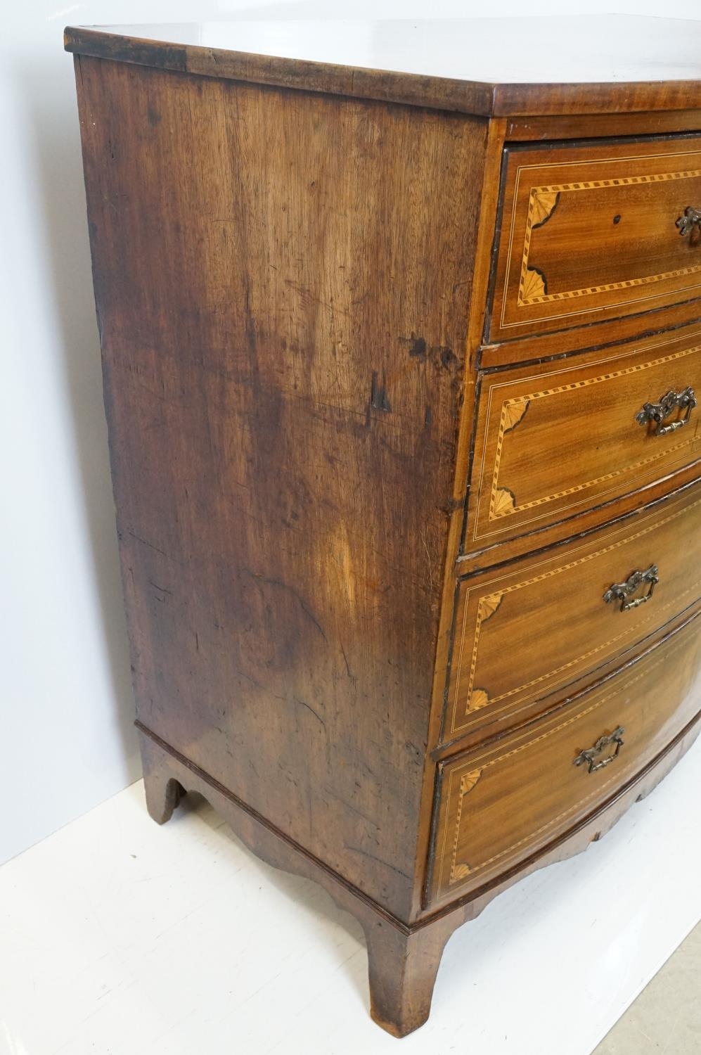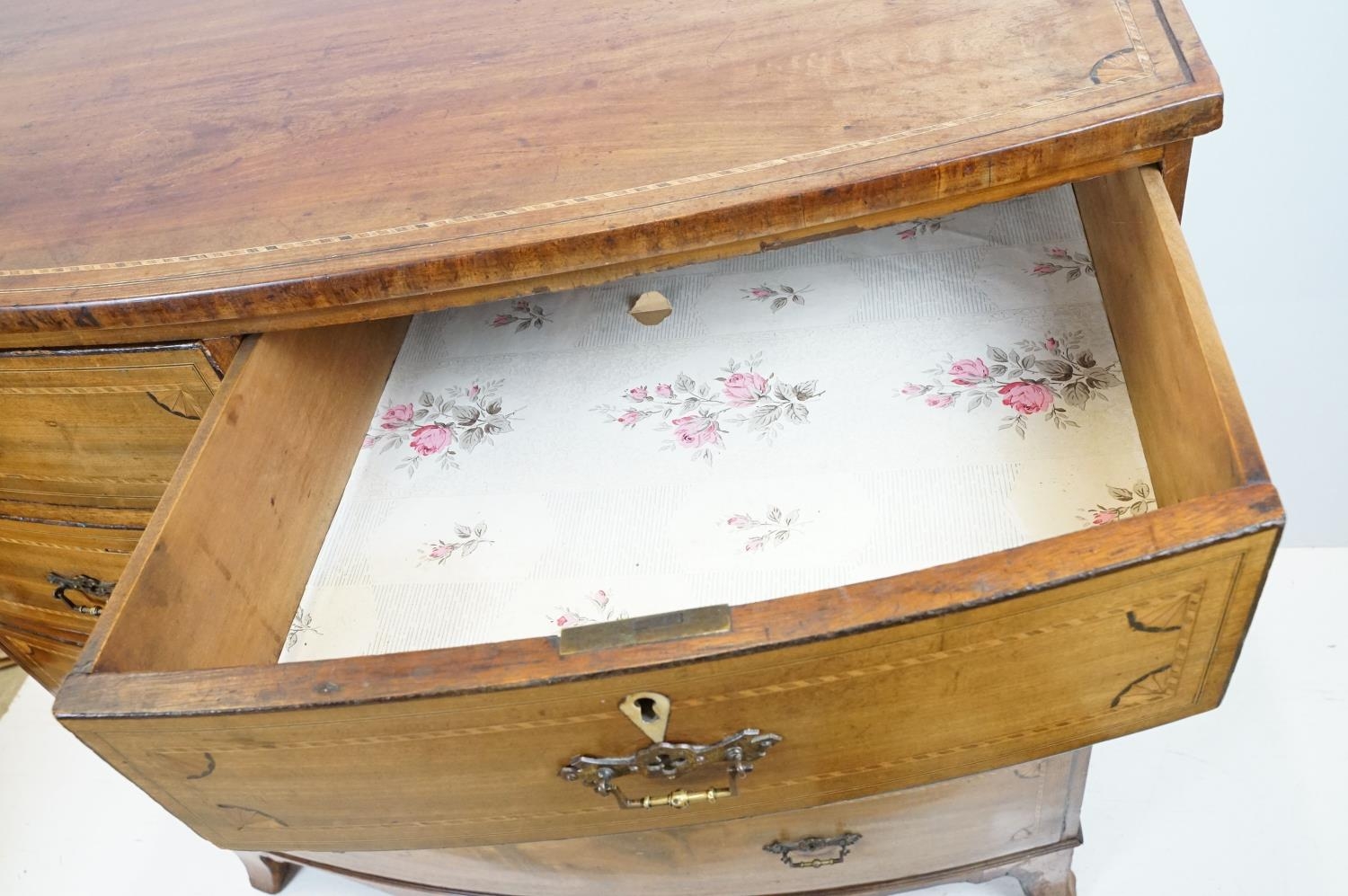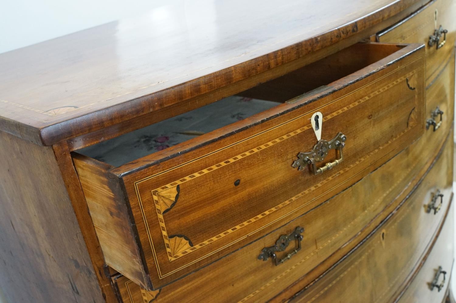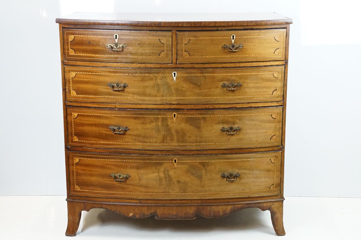 Edwardian mahogany inlaid bowfront chest of 2 short and three long drawers, 107cm high x 108cm wide x 59cm deep