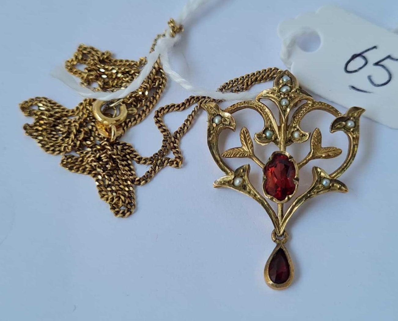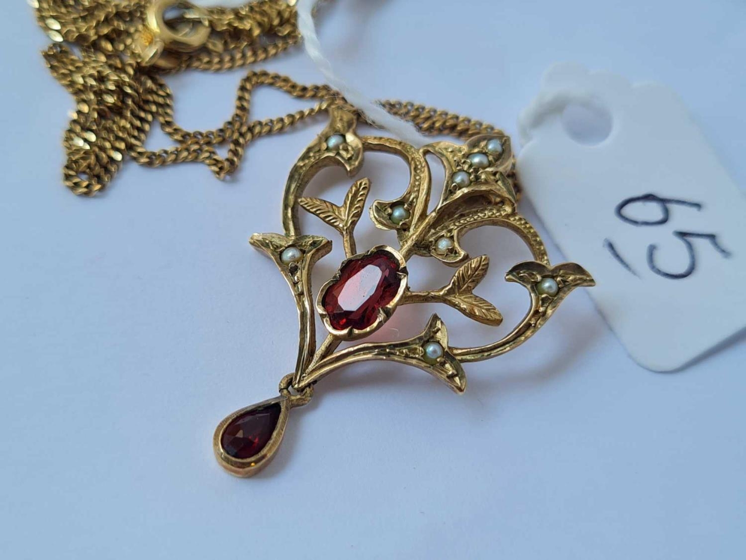 A garnet & pearl pendant set in 9ct on a fine link 9ct chain 4.8g