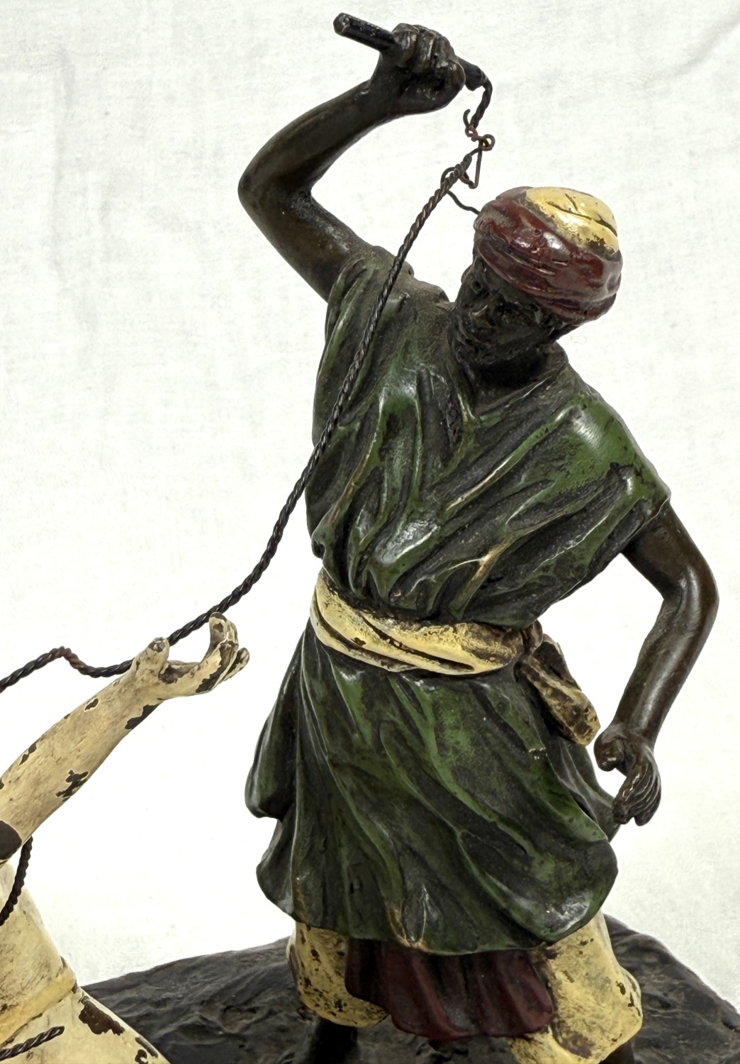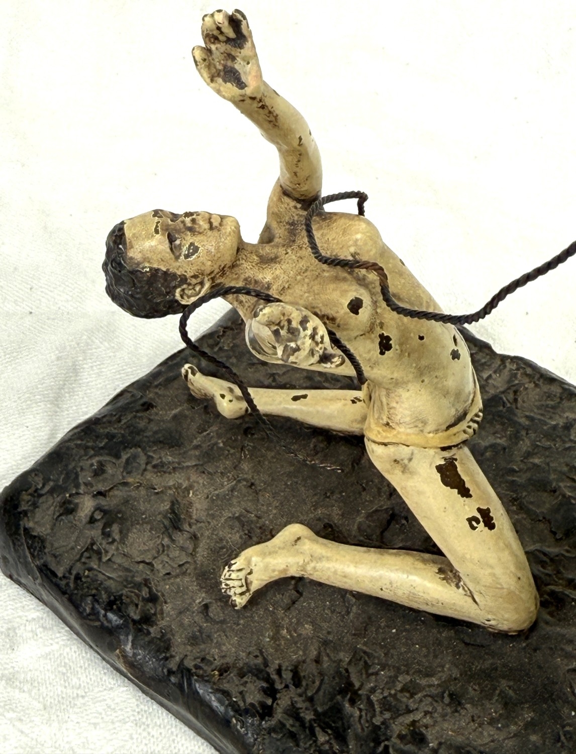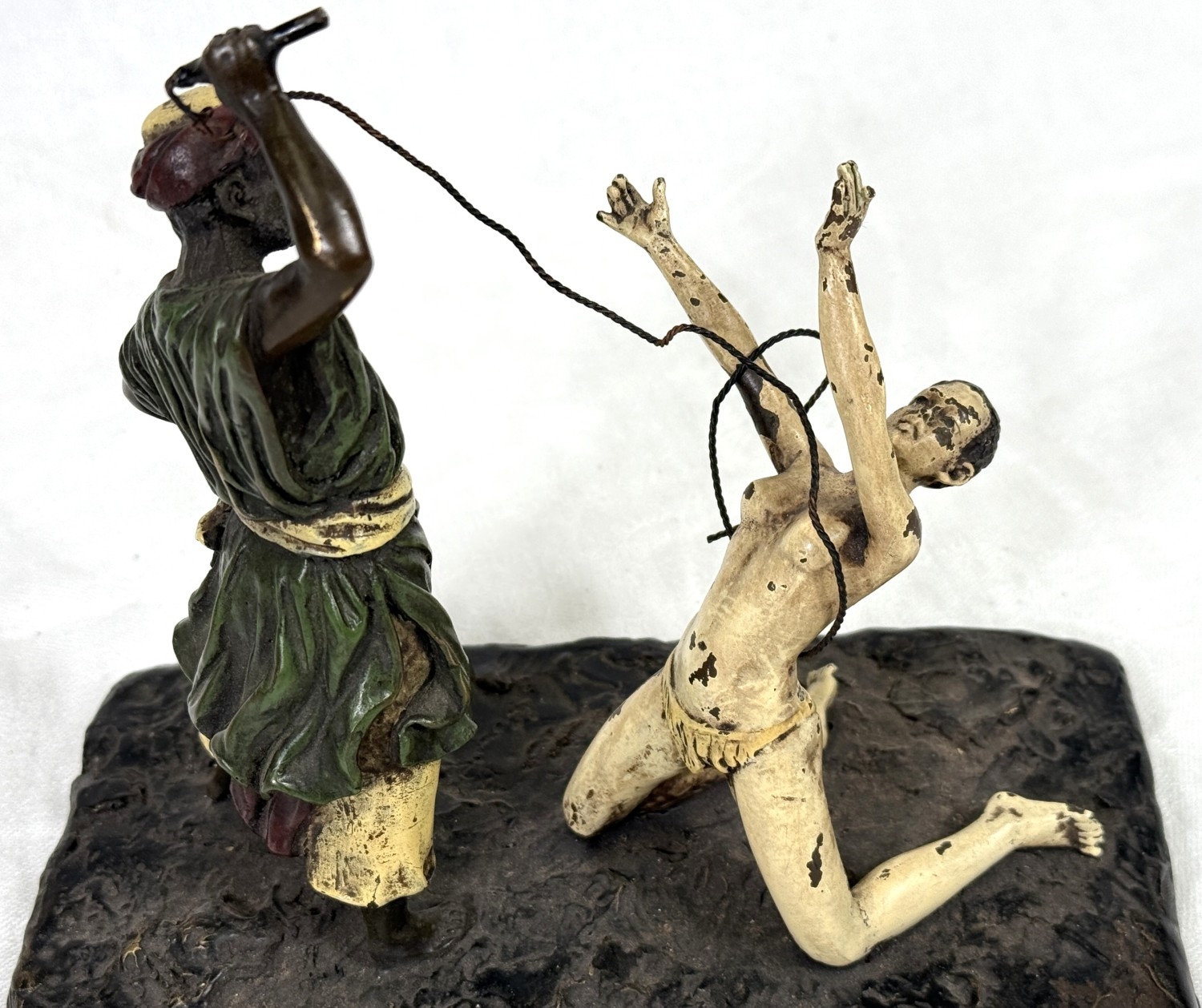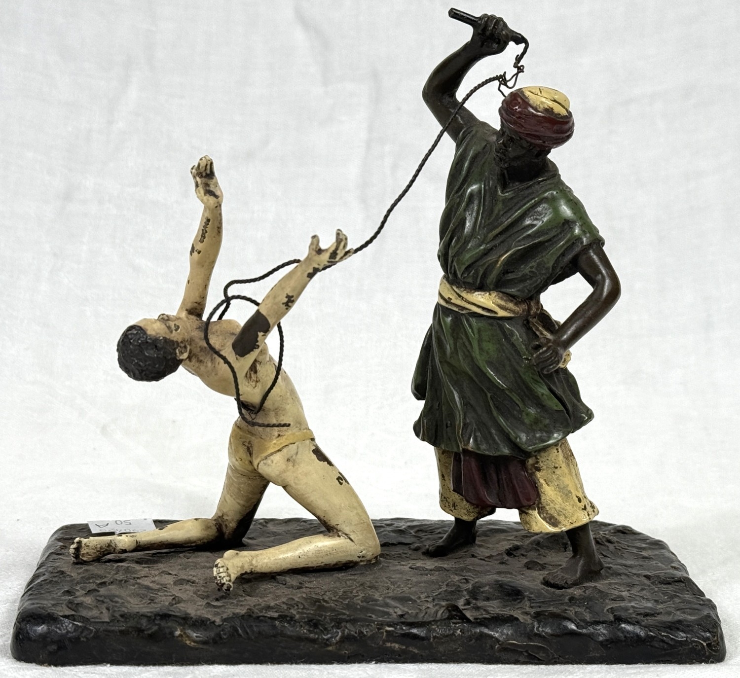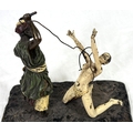 After Franz Bergmann, a cold painted bronze of a man and kneeling woman, impressed marks to base length 17.5cm
