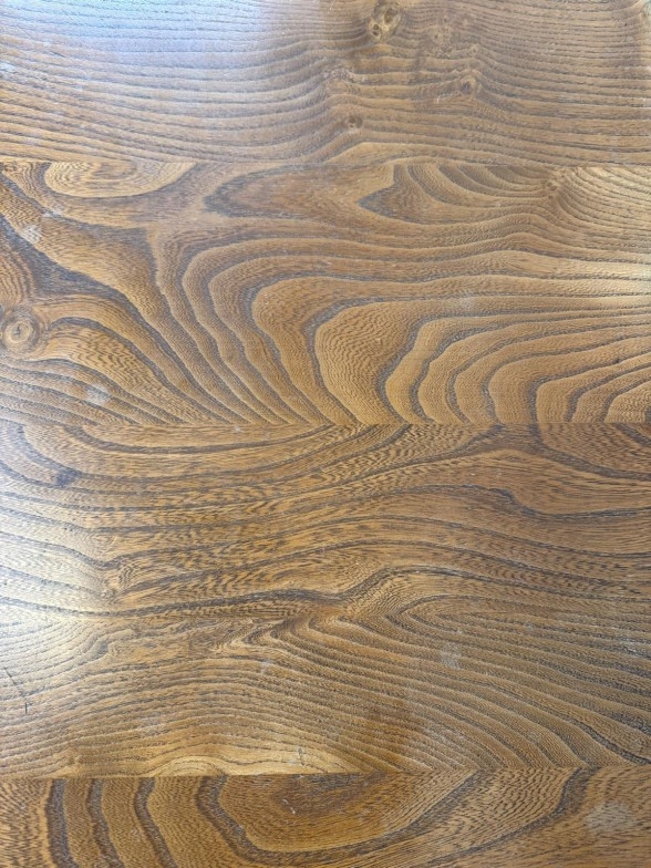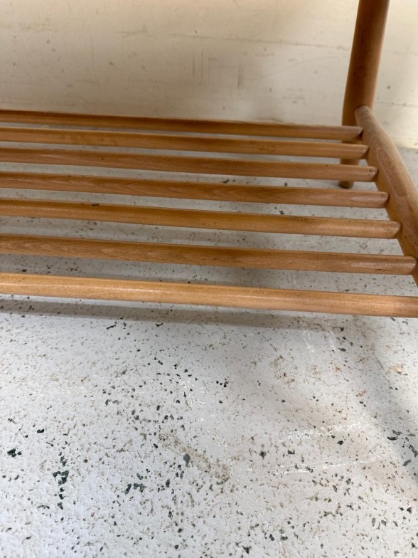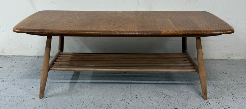 An Ercol plank coffee table with rack under H36cm W104cm D46cm