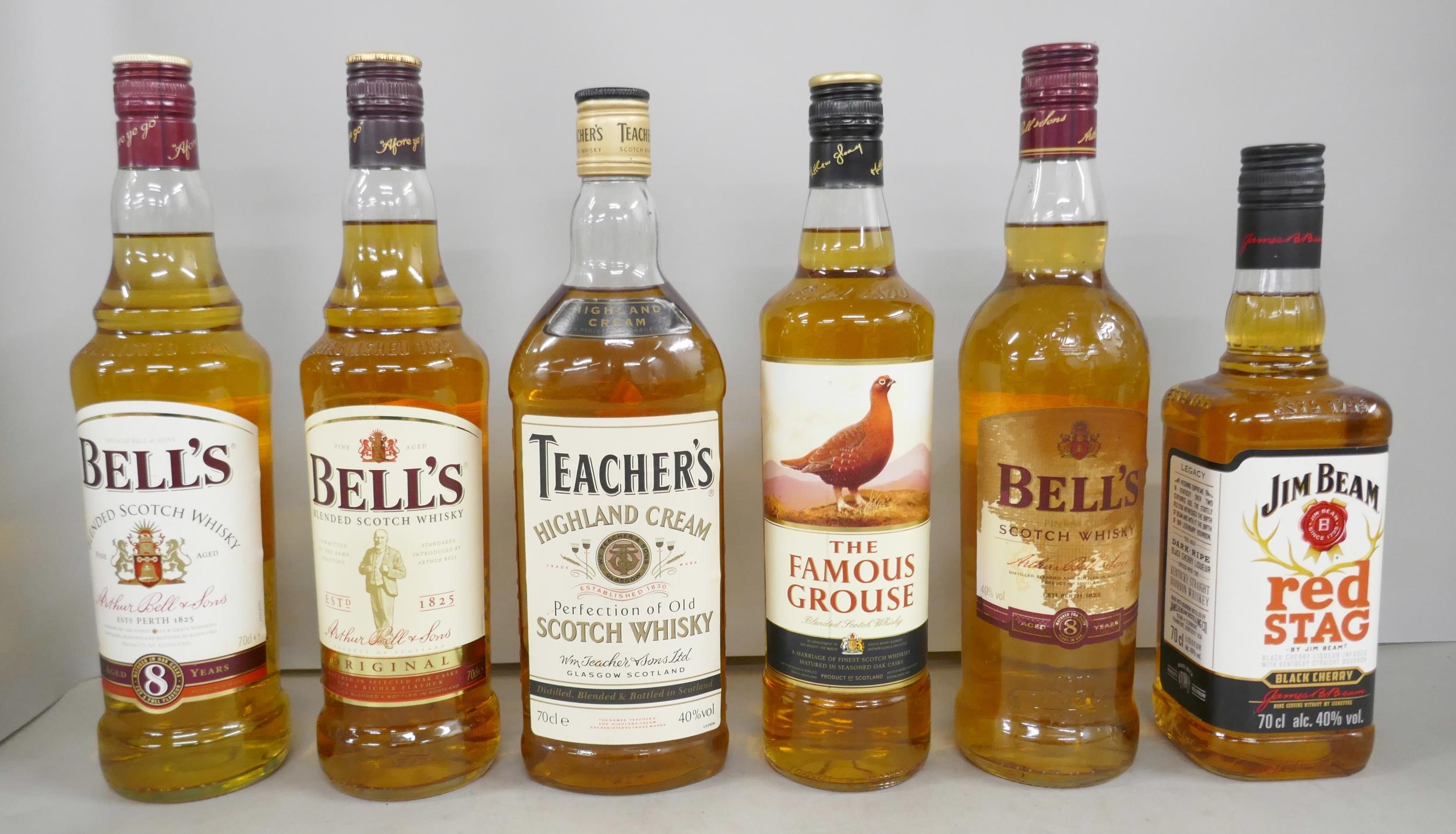 Five bottles of whisky and one bottle of Jim Beam Red Stag