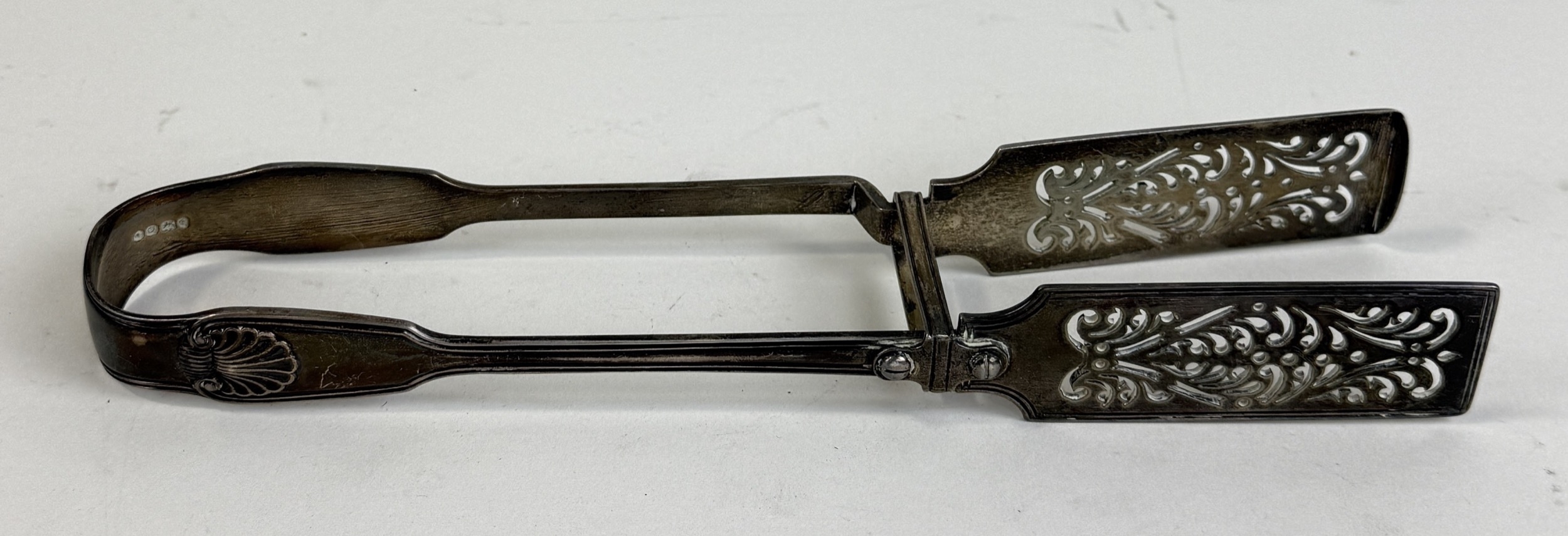 A LARGE VICTORIAN PAIR OF SILVER TONGS