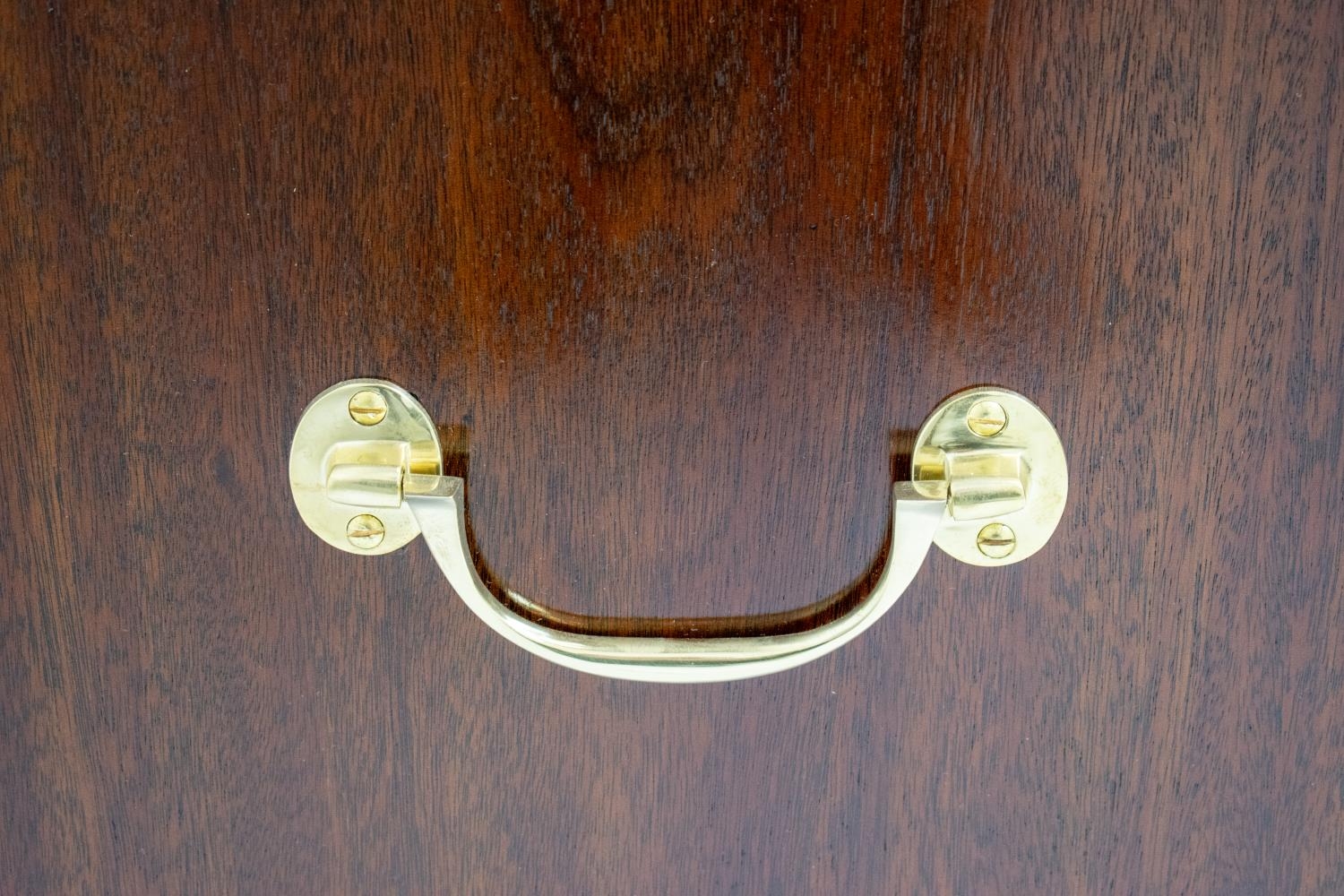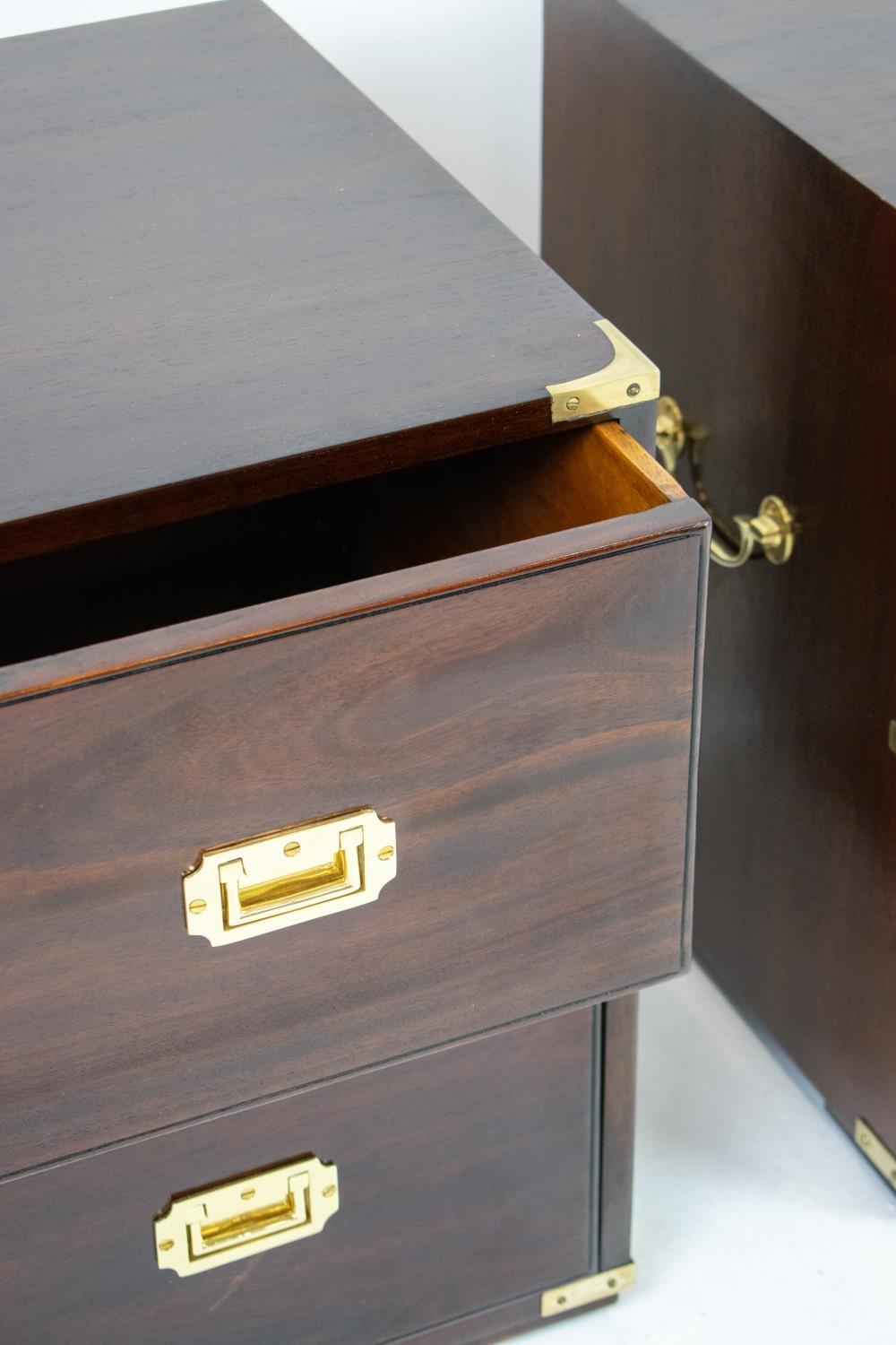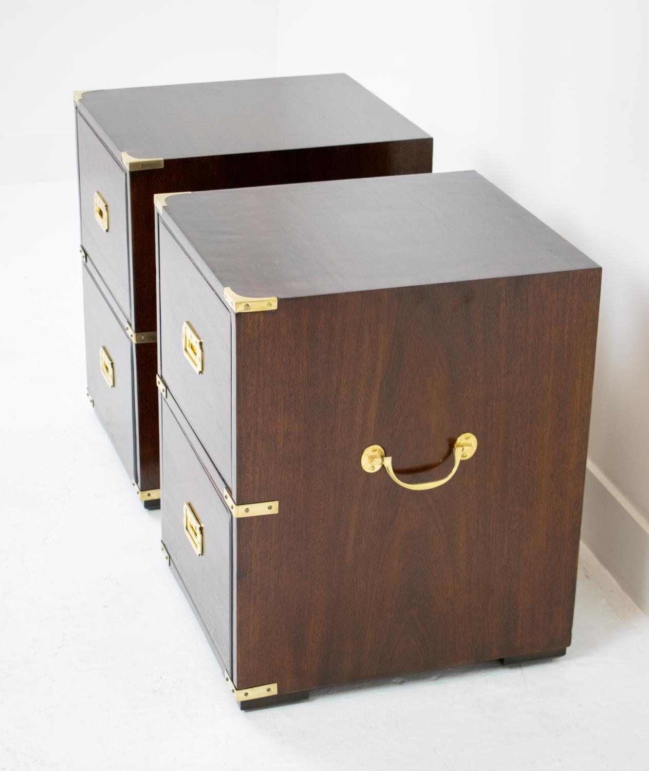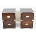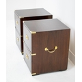 CAMPAIGN STYLE BEDSIDE CHESTS, a pair, mahogany and brass bound, each with two drawers, 57cm H x 41cm x 46cm. (2)