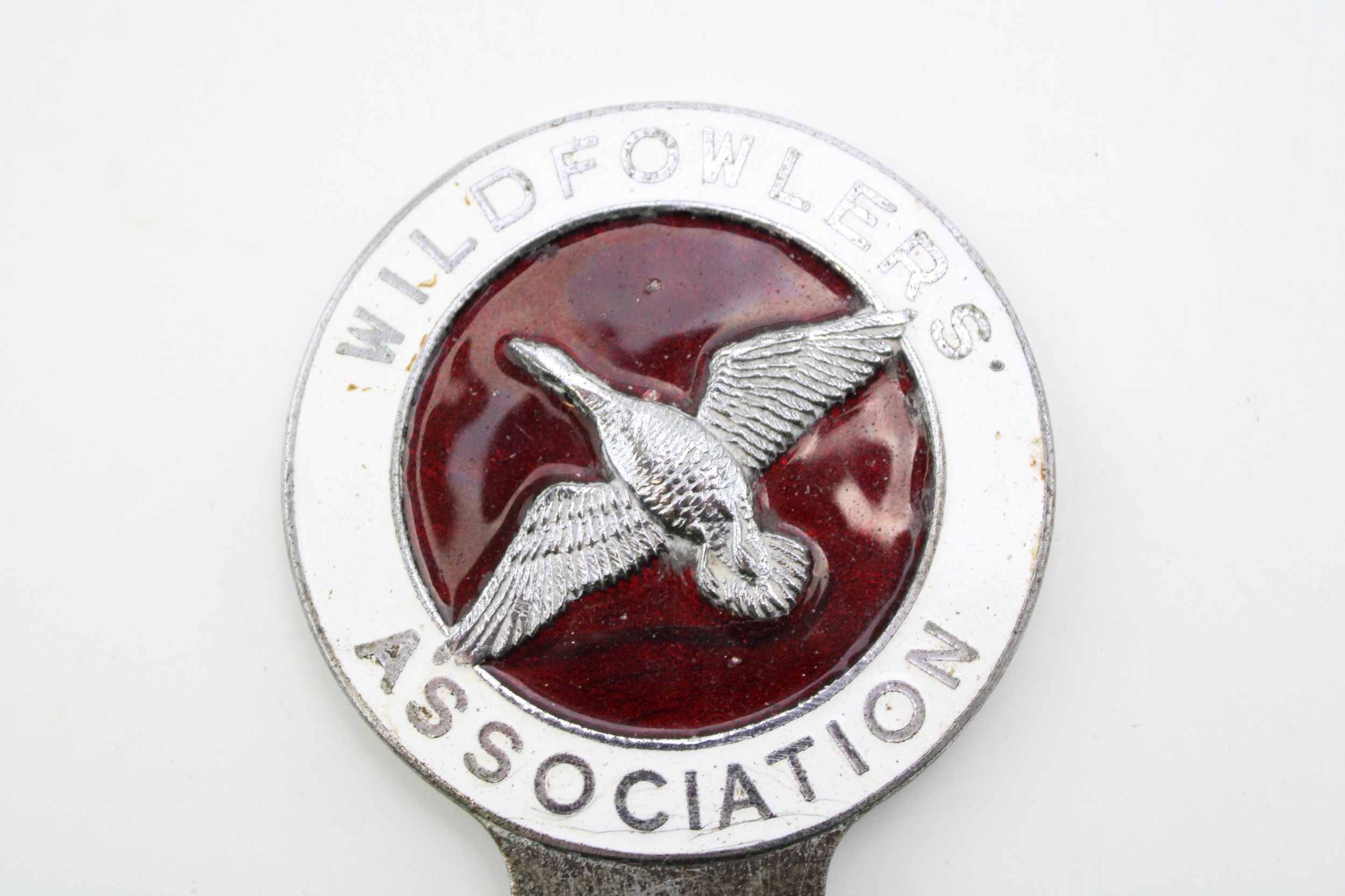 Wildfowlers Association vintage car club badge by Vaughtons Birmingham, 8cm wide.