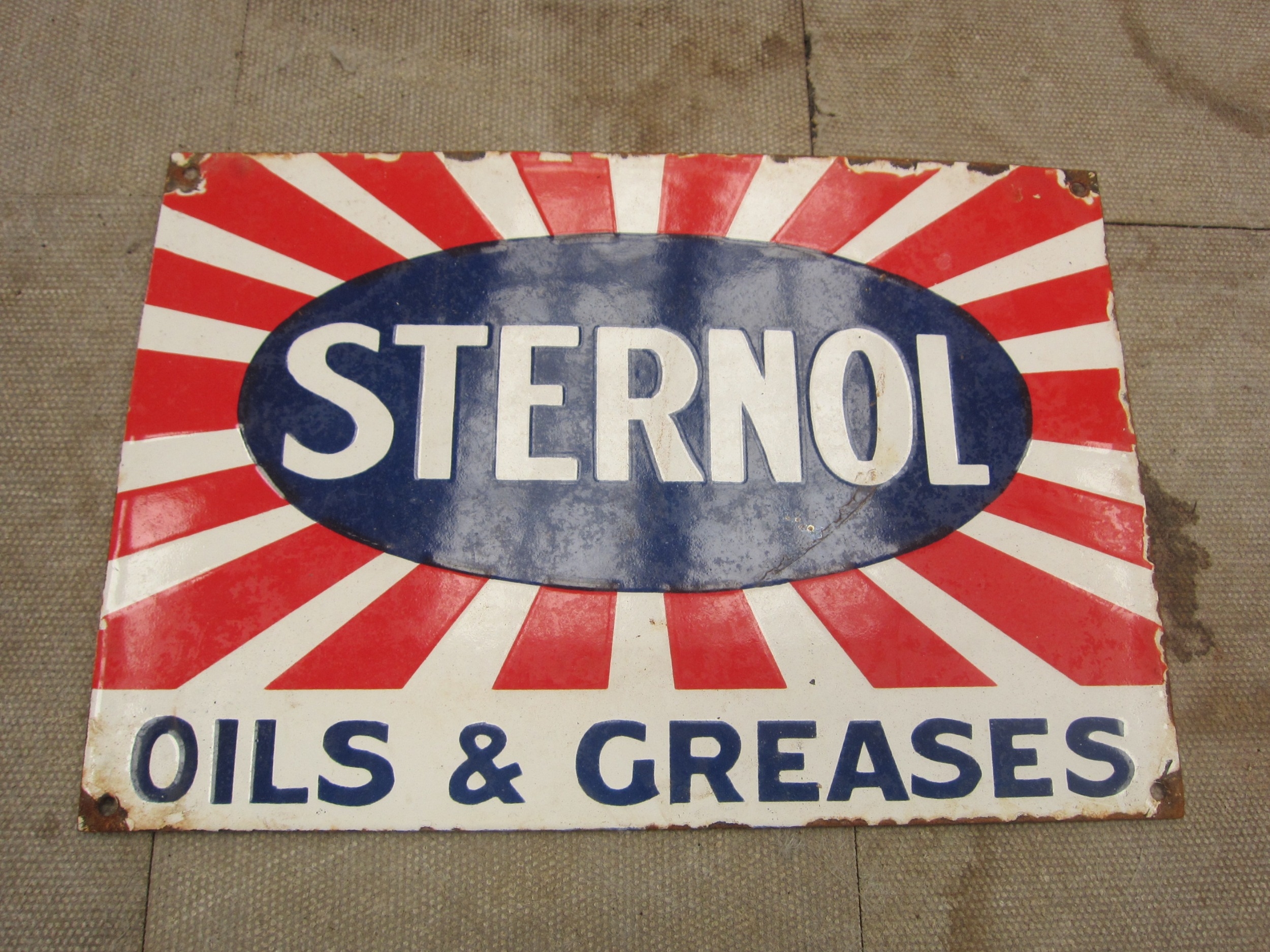 A modern reproduction "Sternol Oils & Greases" enamelled sign. 35.5cm x 24cm