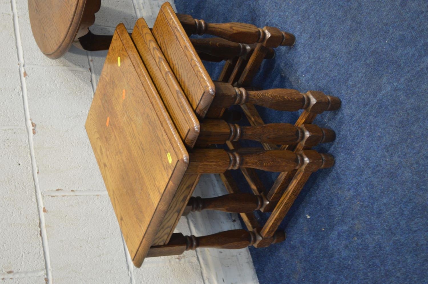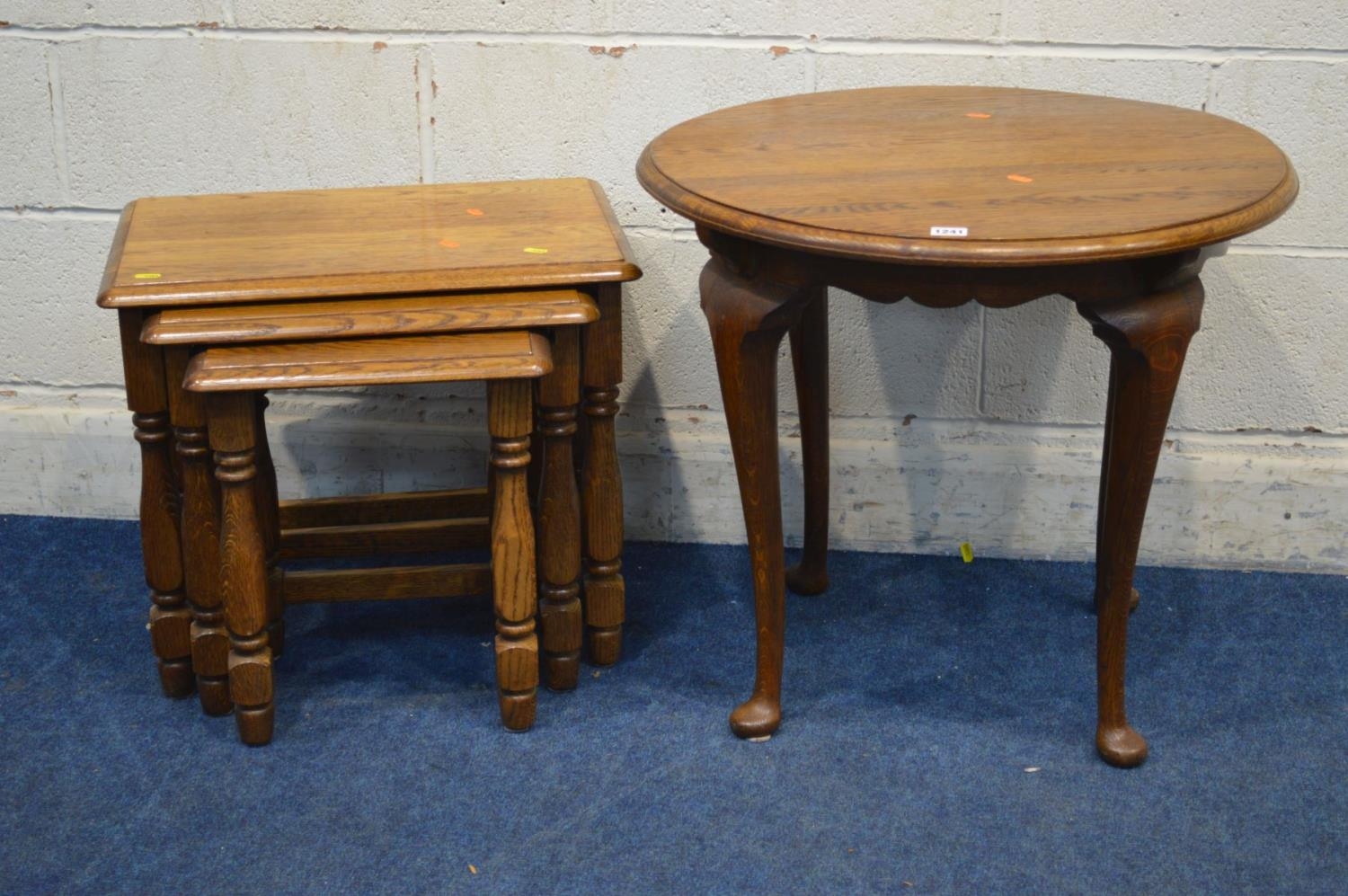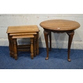 A SOLID OAK NEST OF THREE TABLES, together with an circular occasional table (2)