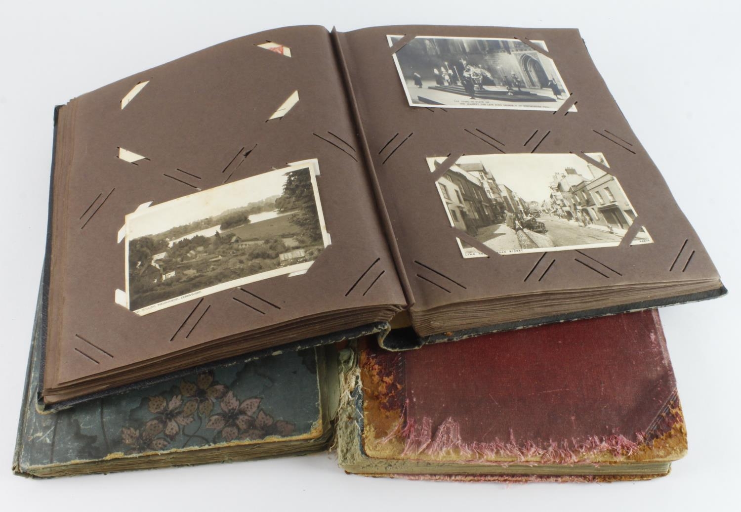 Three vintage albums housing original mixture, shipping disaster noted, etc (approx 355 cards)