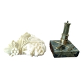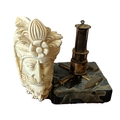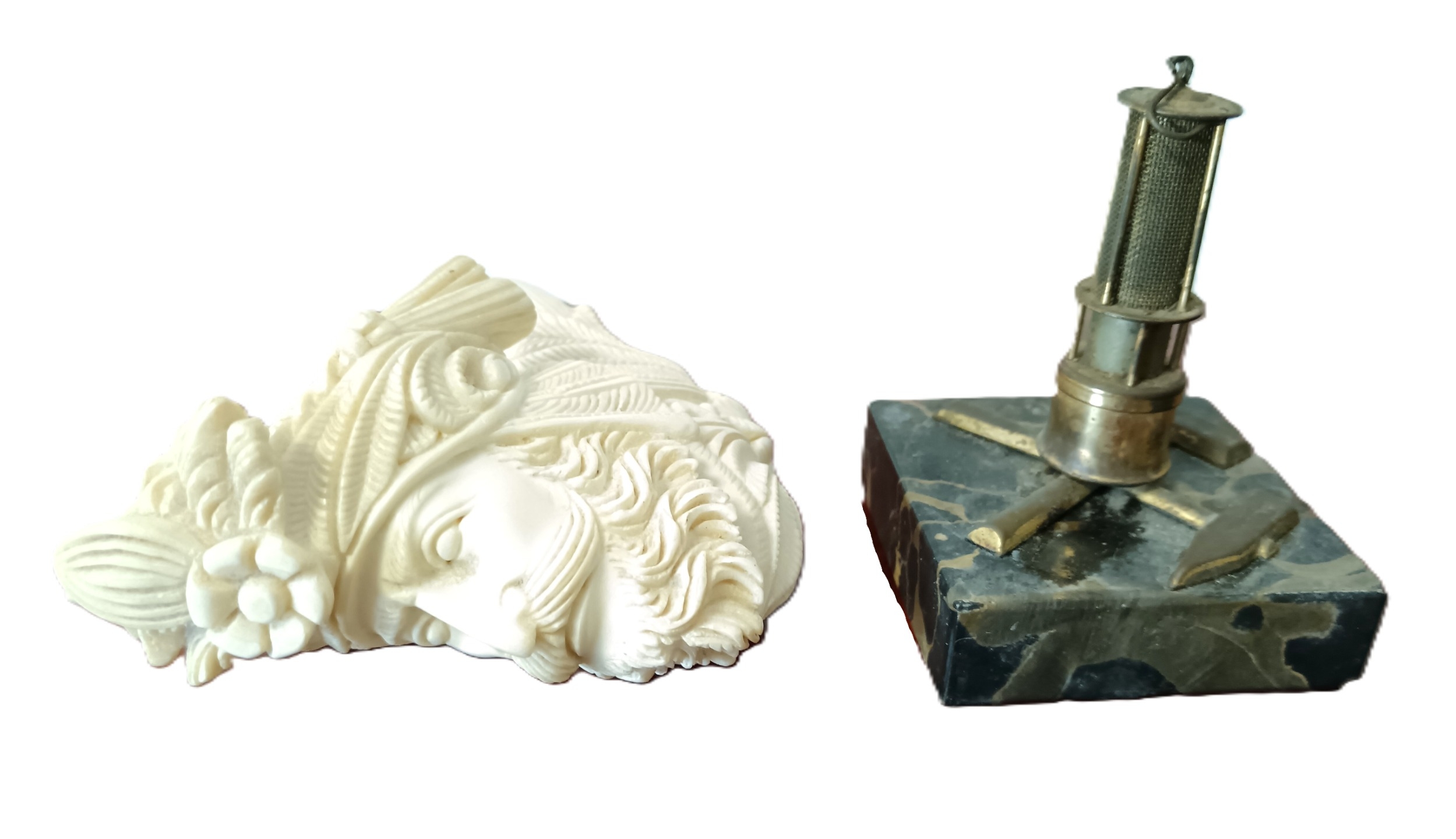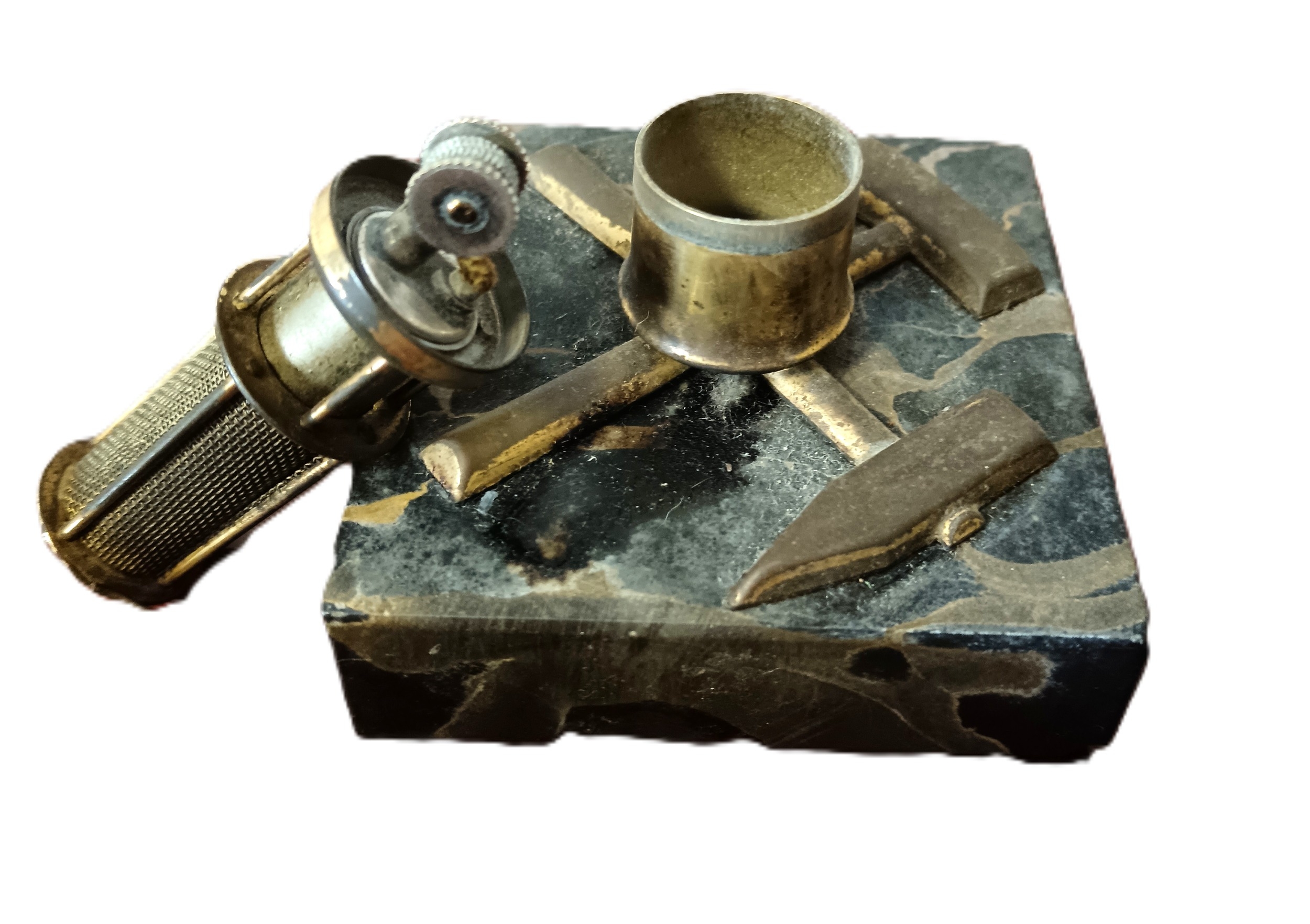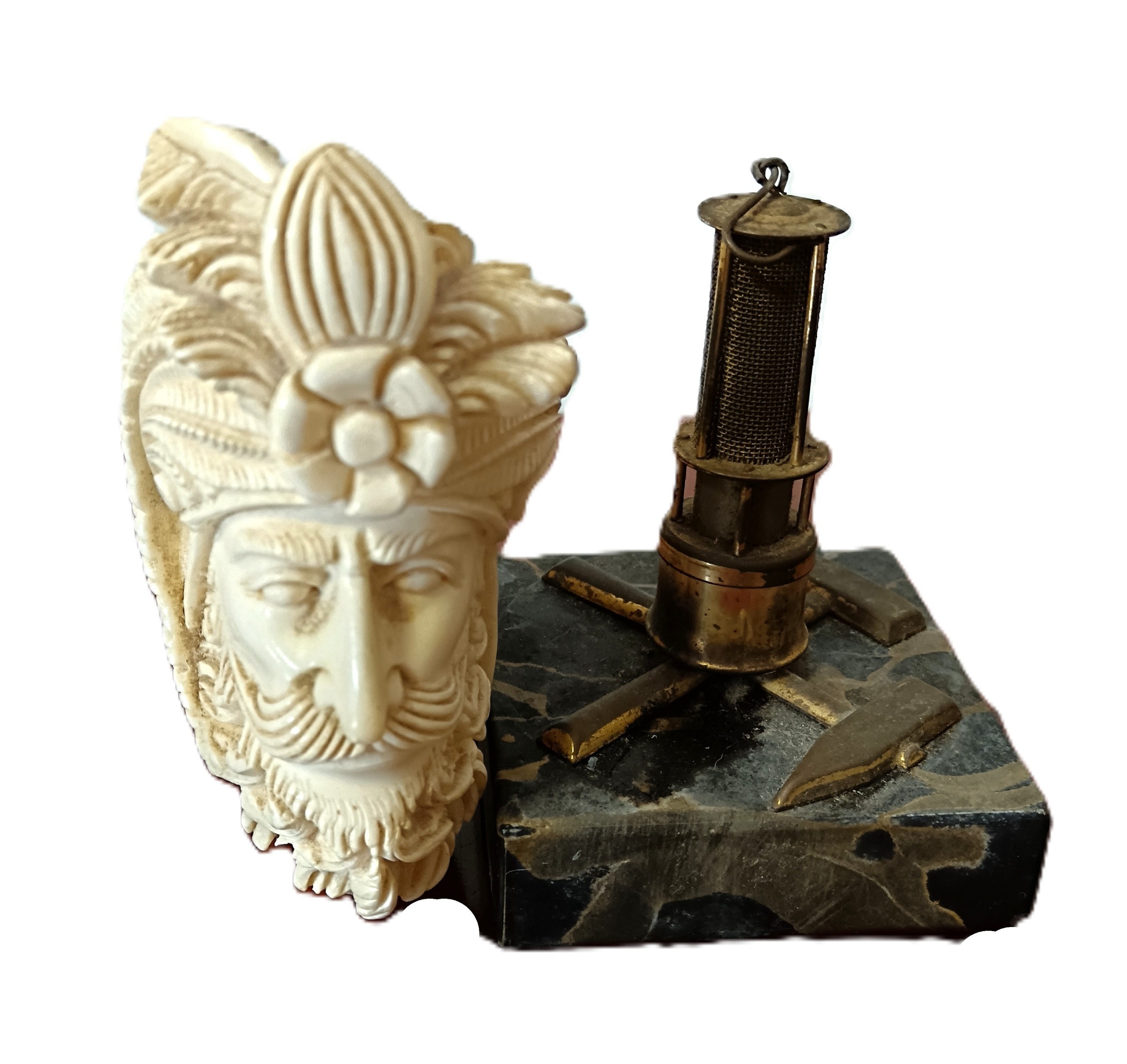 A vintage table lighter in the form of a Miner's lamp together with a vintage pipe (2)