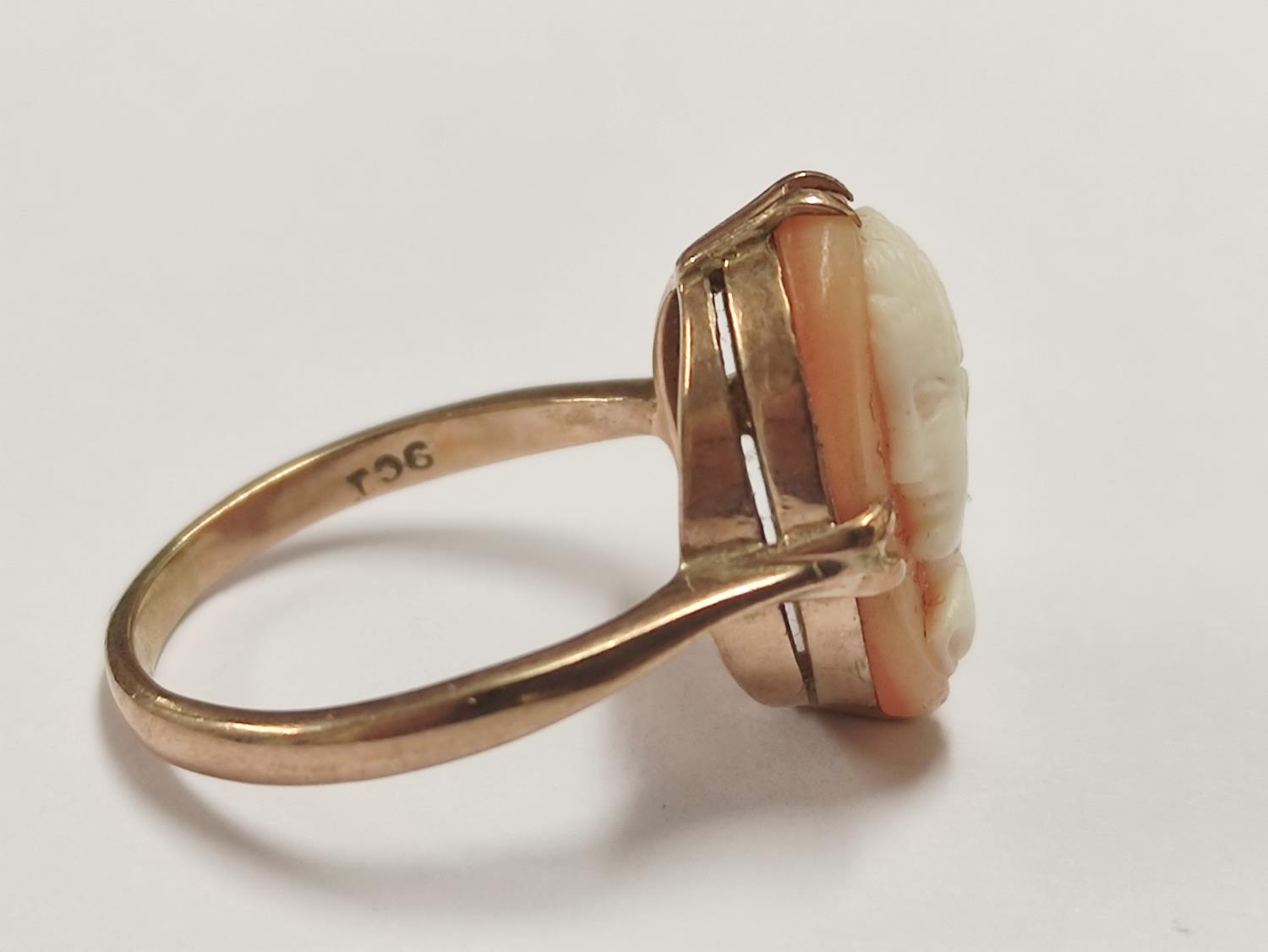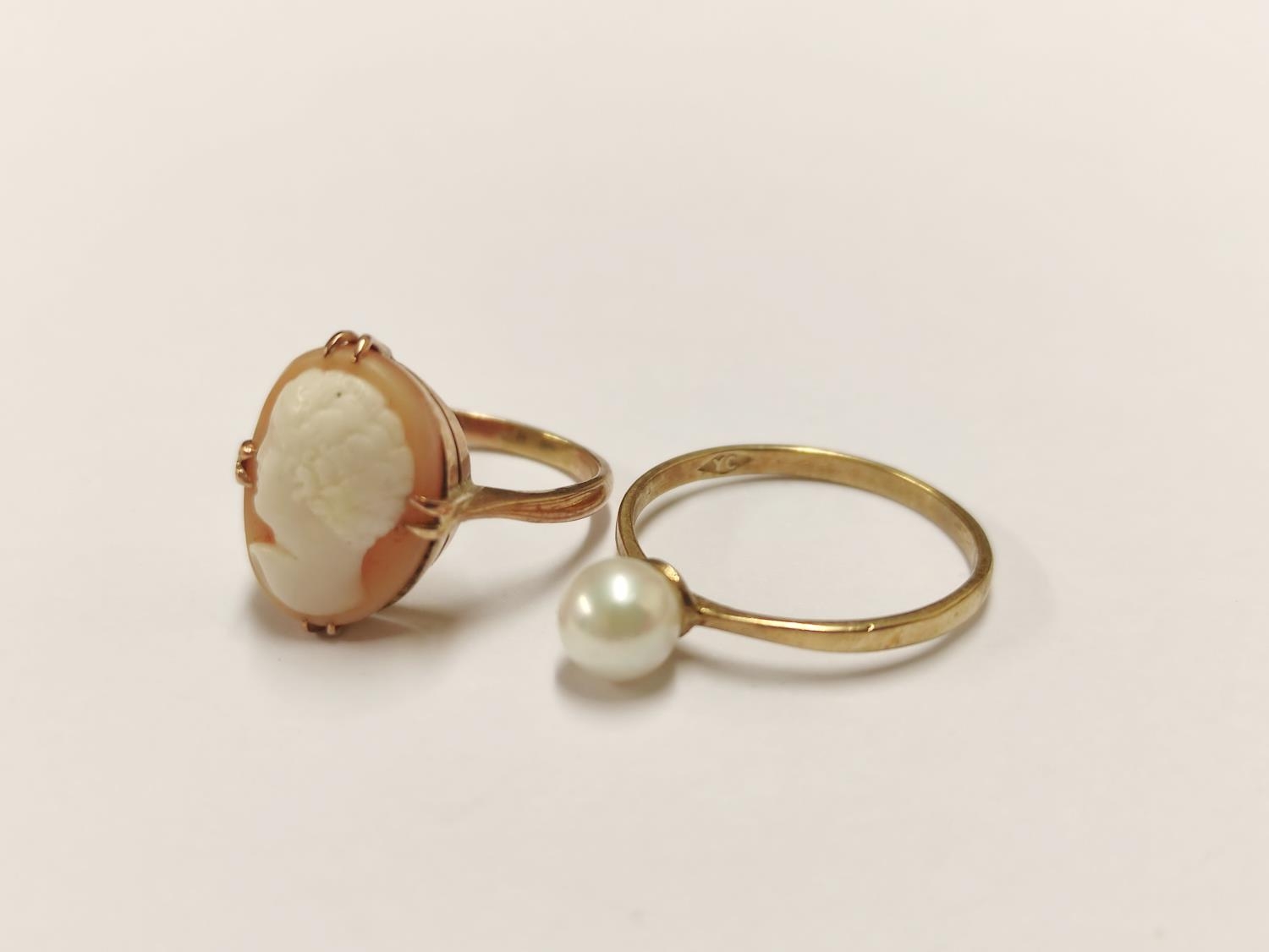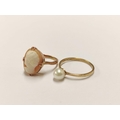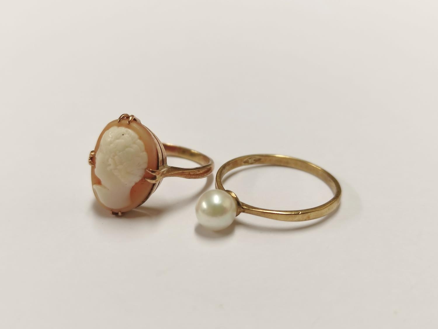 9ct gold cameo ring and a 9ct gold pearl-set ring, 3.7g gross. (2)