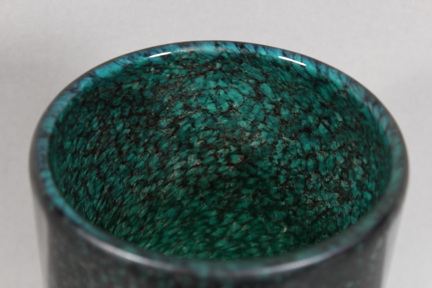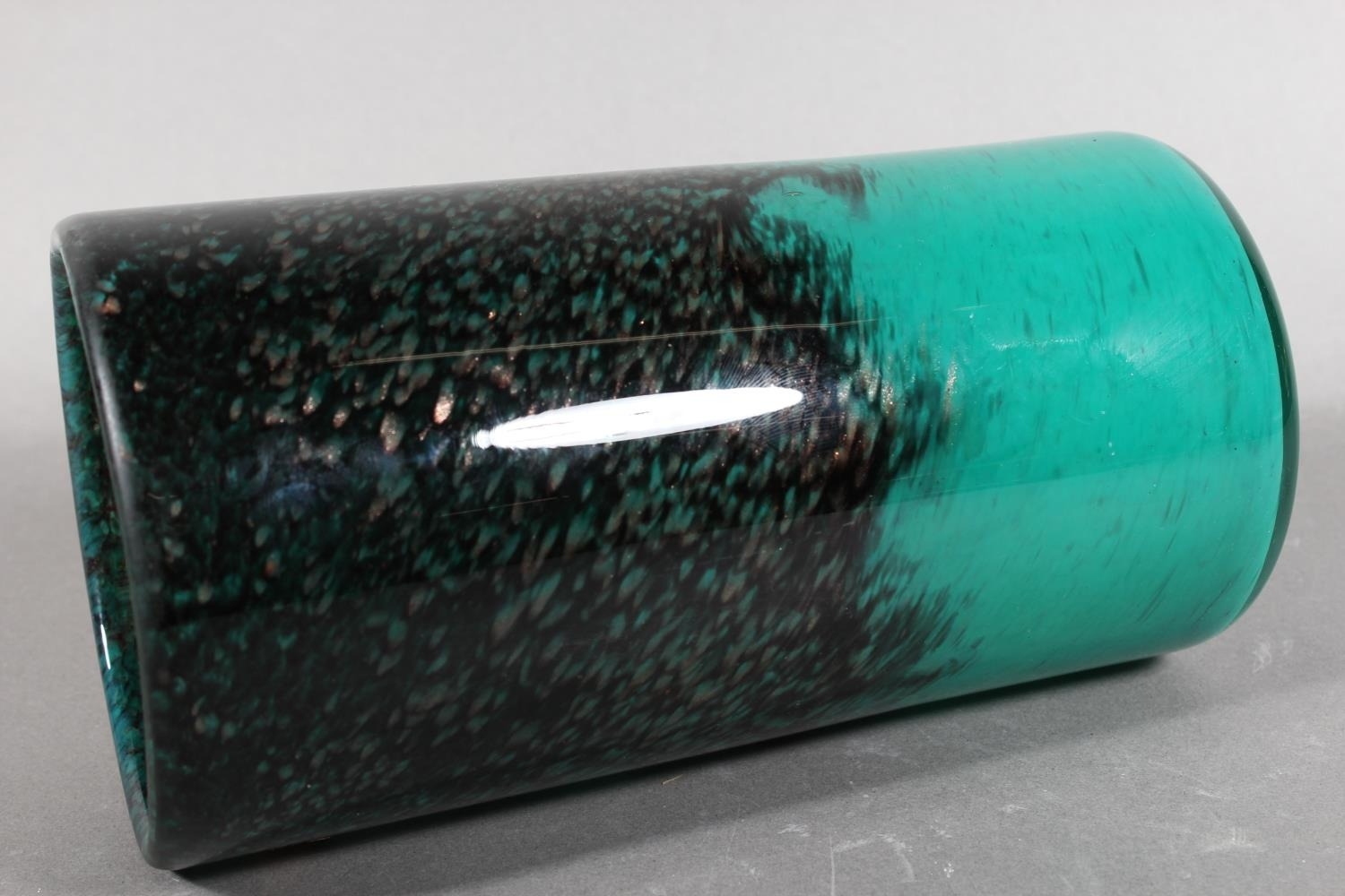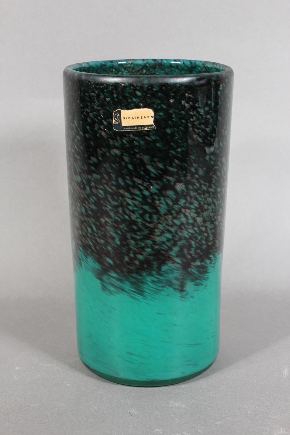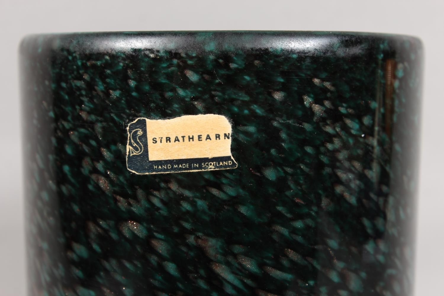 Strathearn Glass vase in green and black with gilt speckling, 20cm.