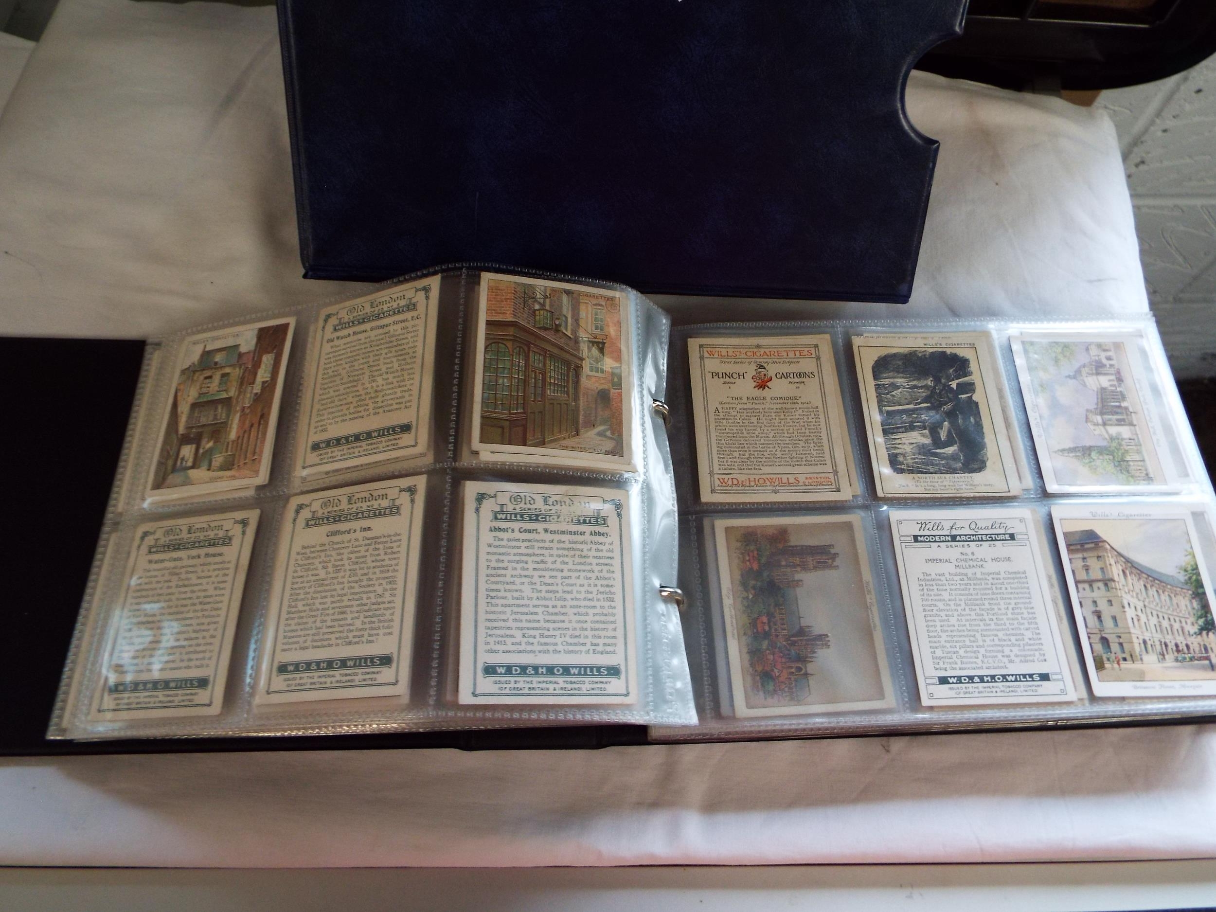 An album housing approx three hundred large Wills cigarette cards to include 'Racehorses & Jockeys 1938', 'Old Sundials', 'Old Pottery and Porcelain' etc