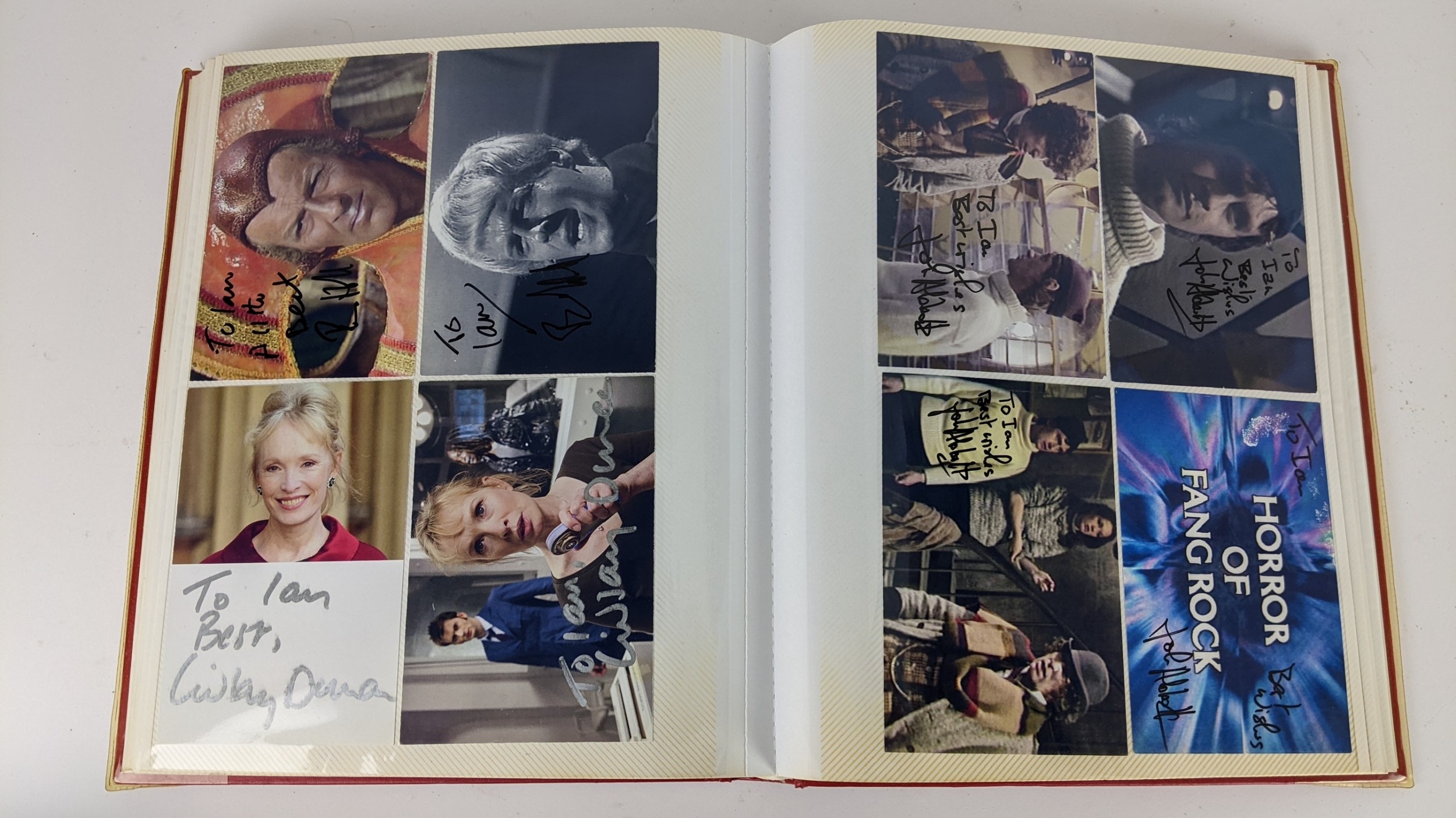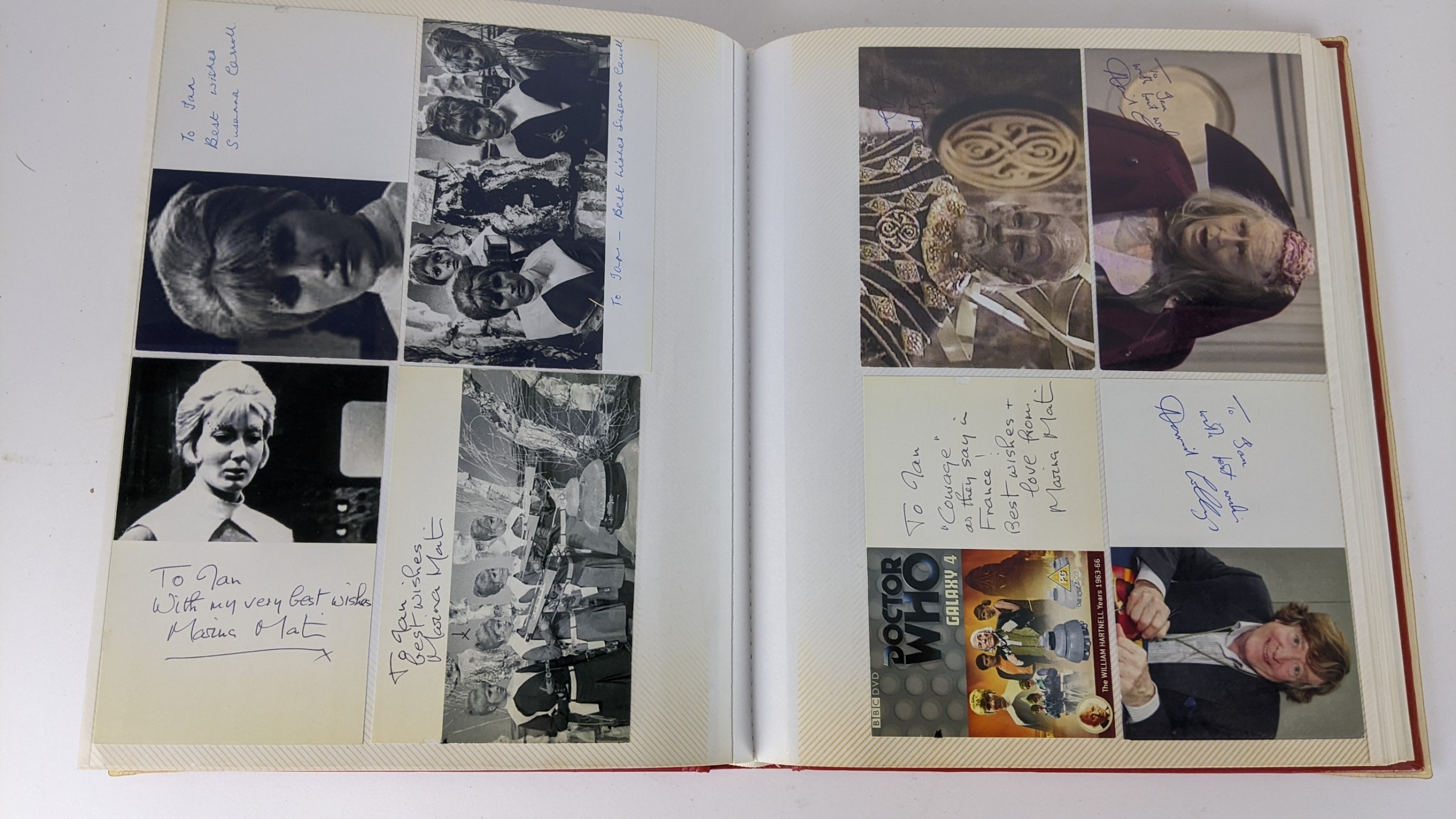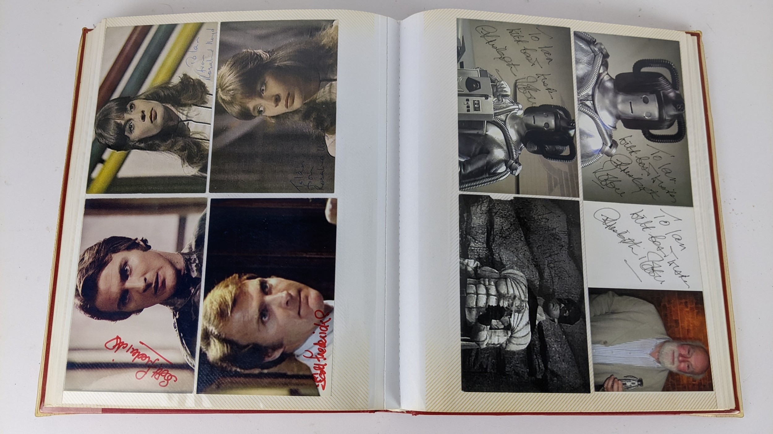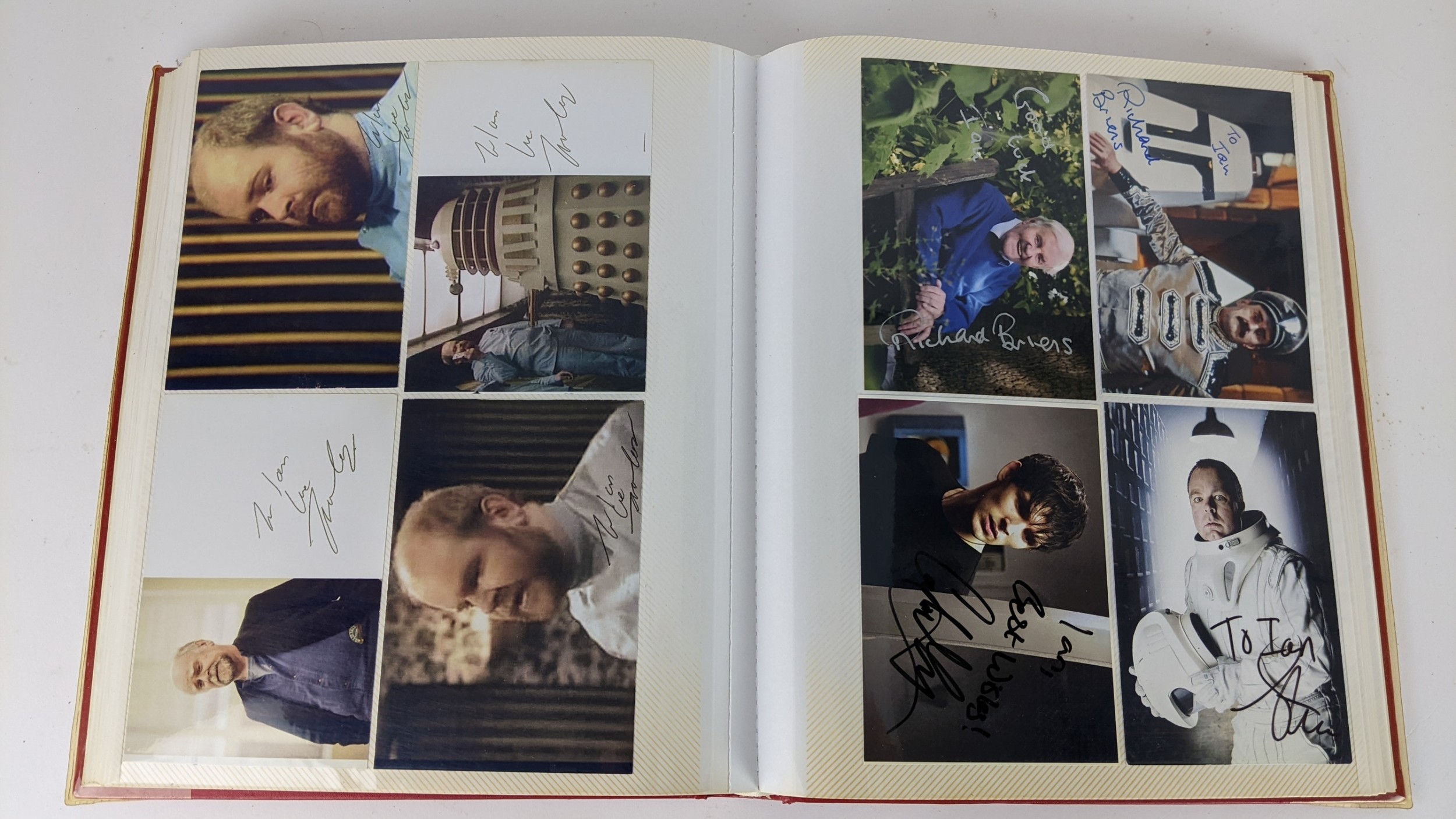 A Doctor Who album of autographs on photos, signed by several cast members to include Richard Briers, Peter Miles, Nina Thomas and others