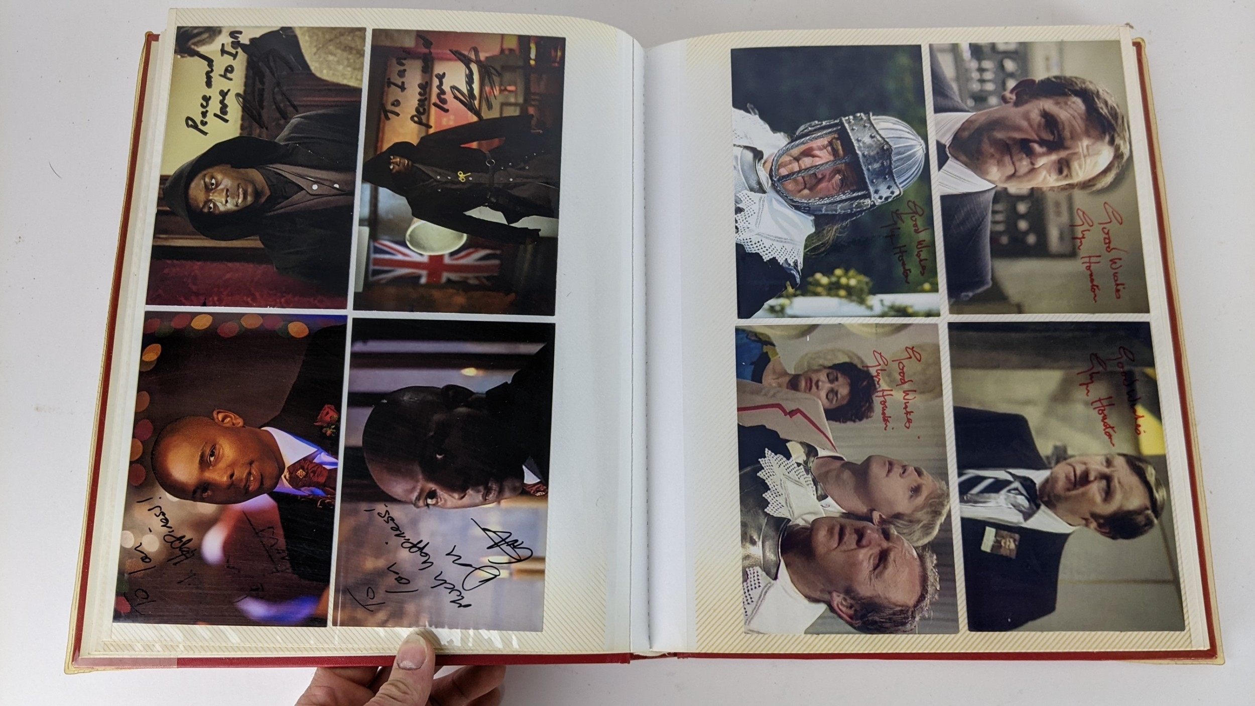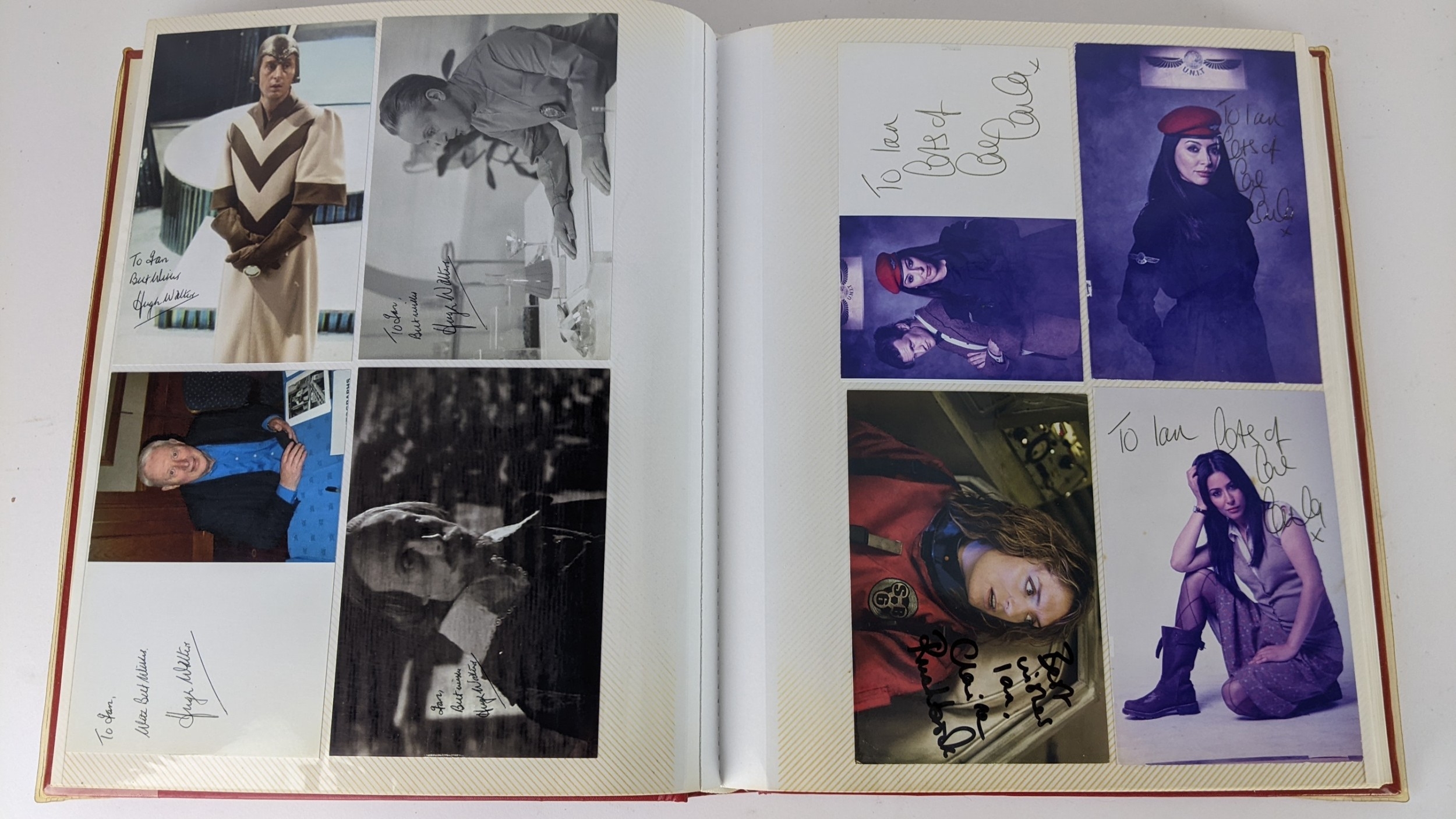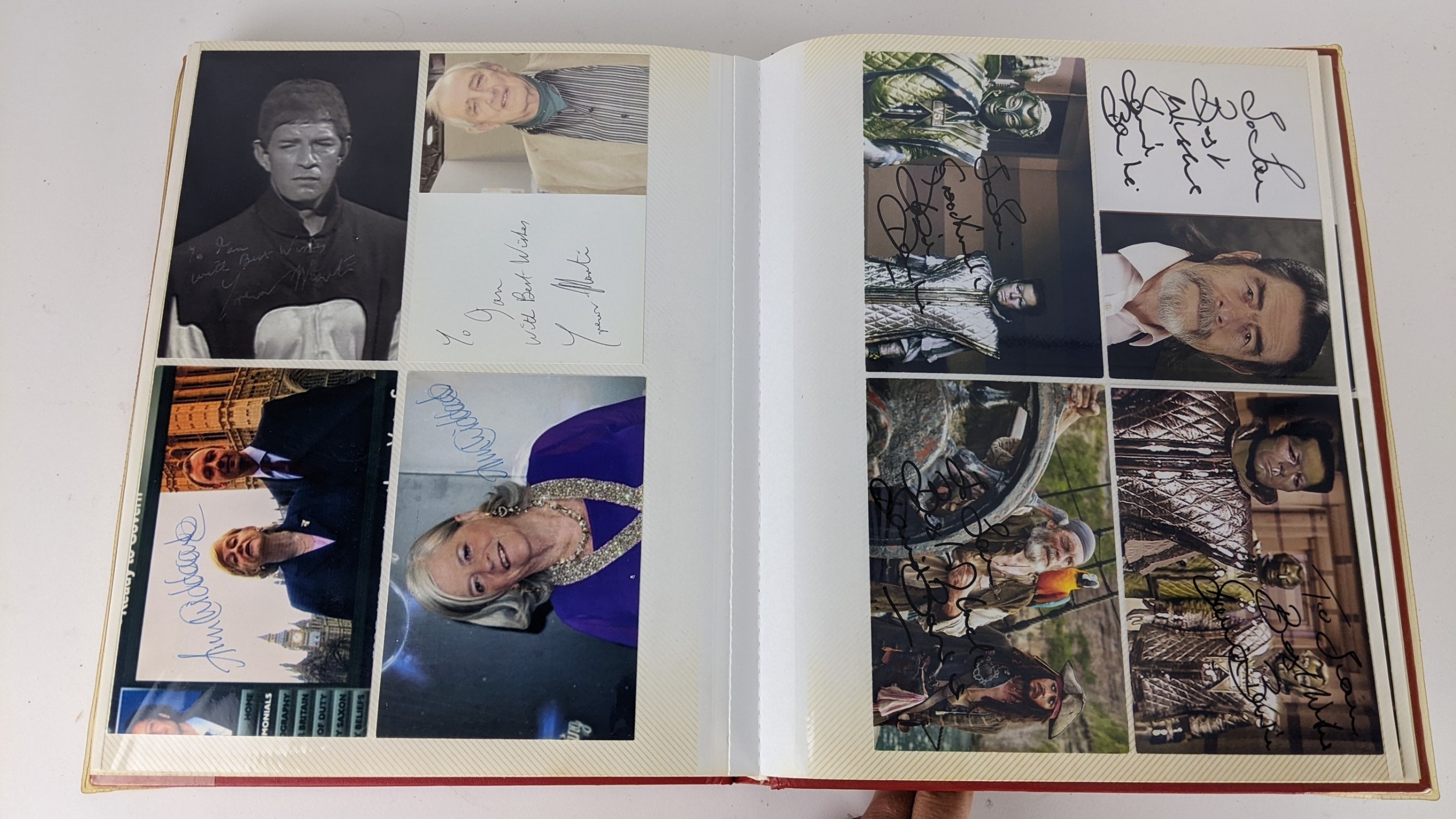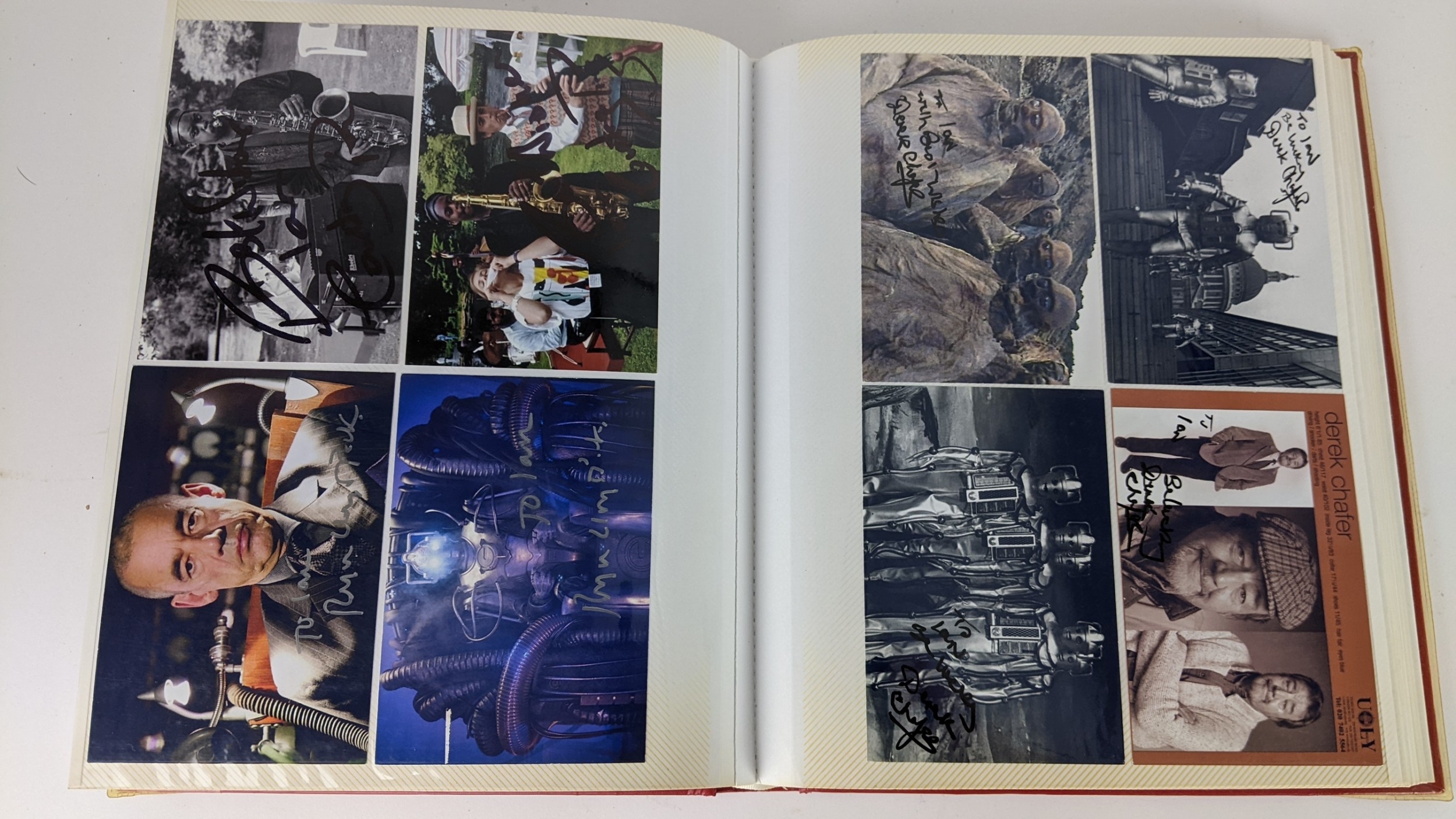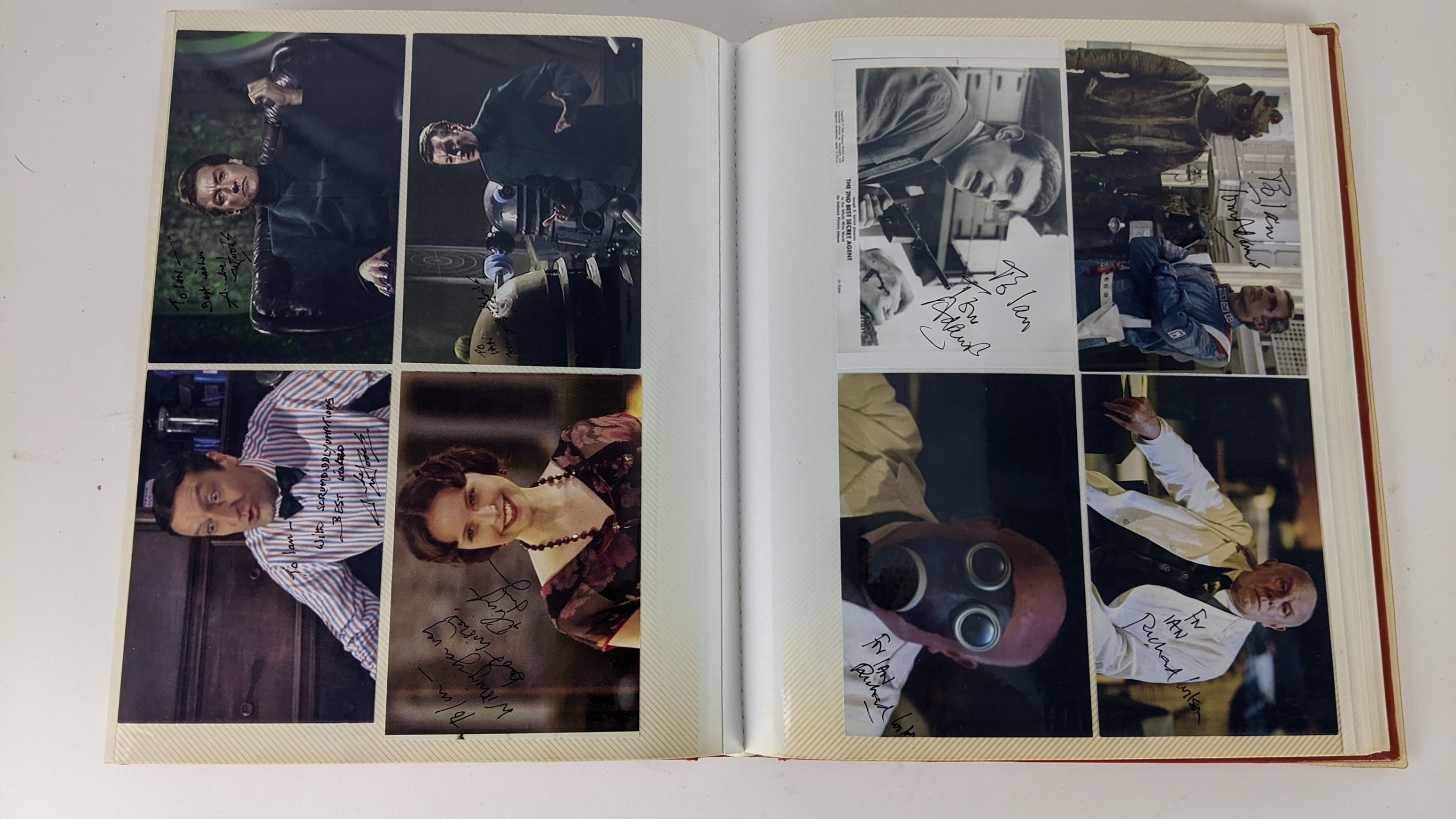 A Doctor Who album of autographs on photos, signed by several cast members to include Richard Briers, Peter Miles, Nina Thomas and others