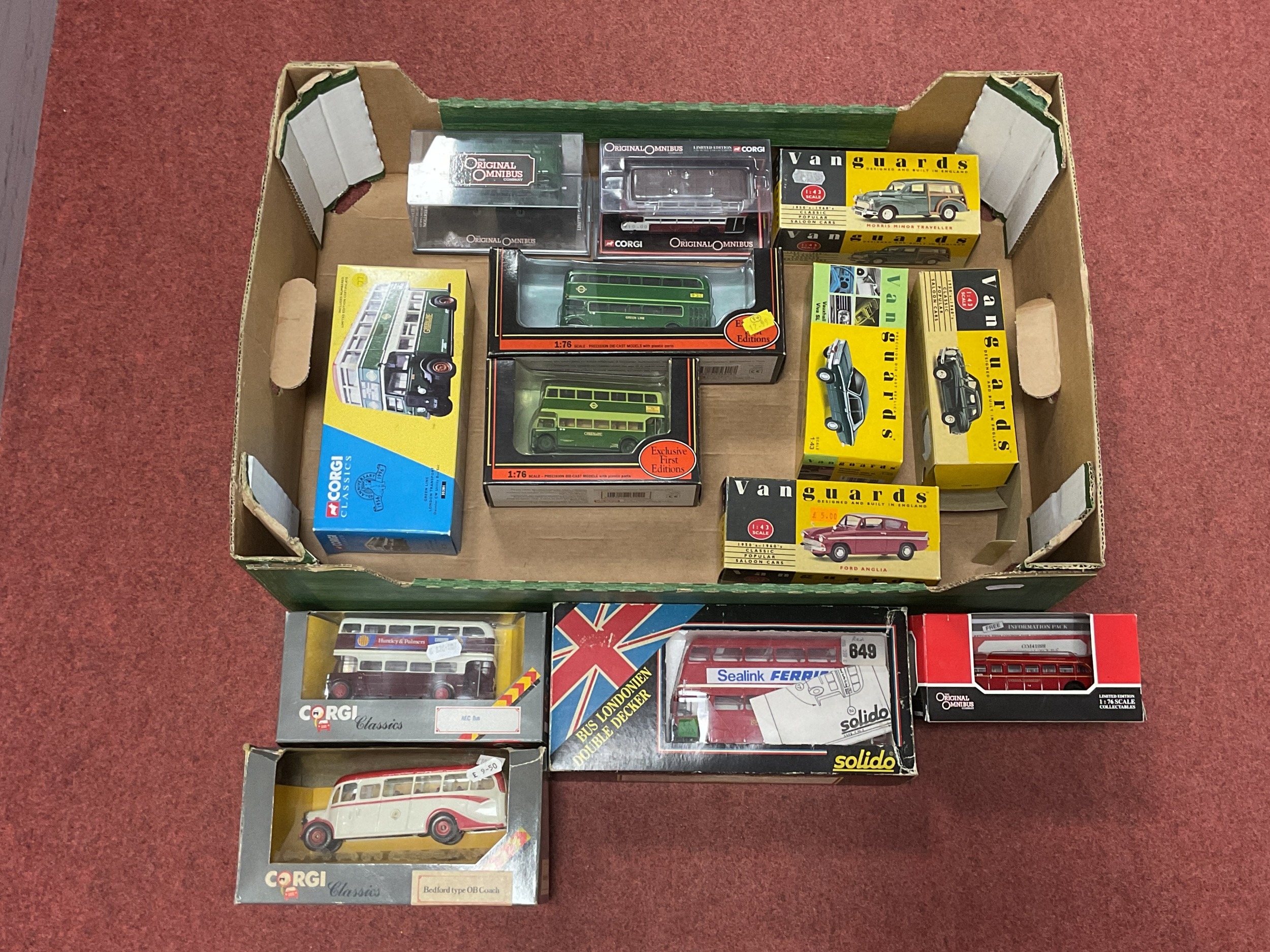 Thirteen Diecast Model Vehicles by EFE, Corgi, Lledo and other. 1:43 Scale Vanguards noted. Bidder to assure themselves for condition of the models as most boxes are spoiled/damaged with a greasy substance. [443757].