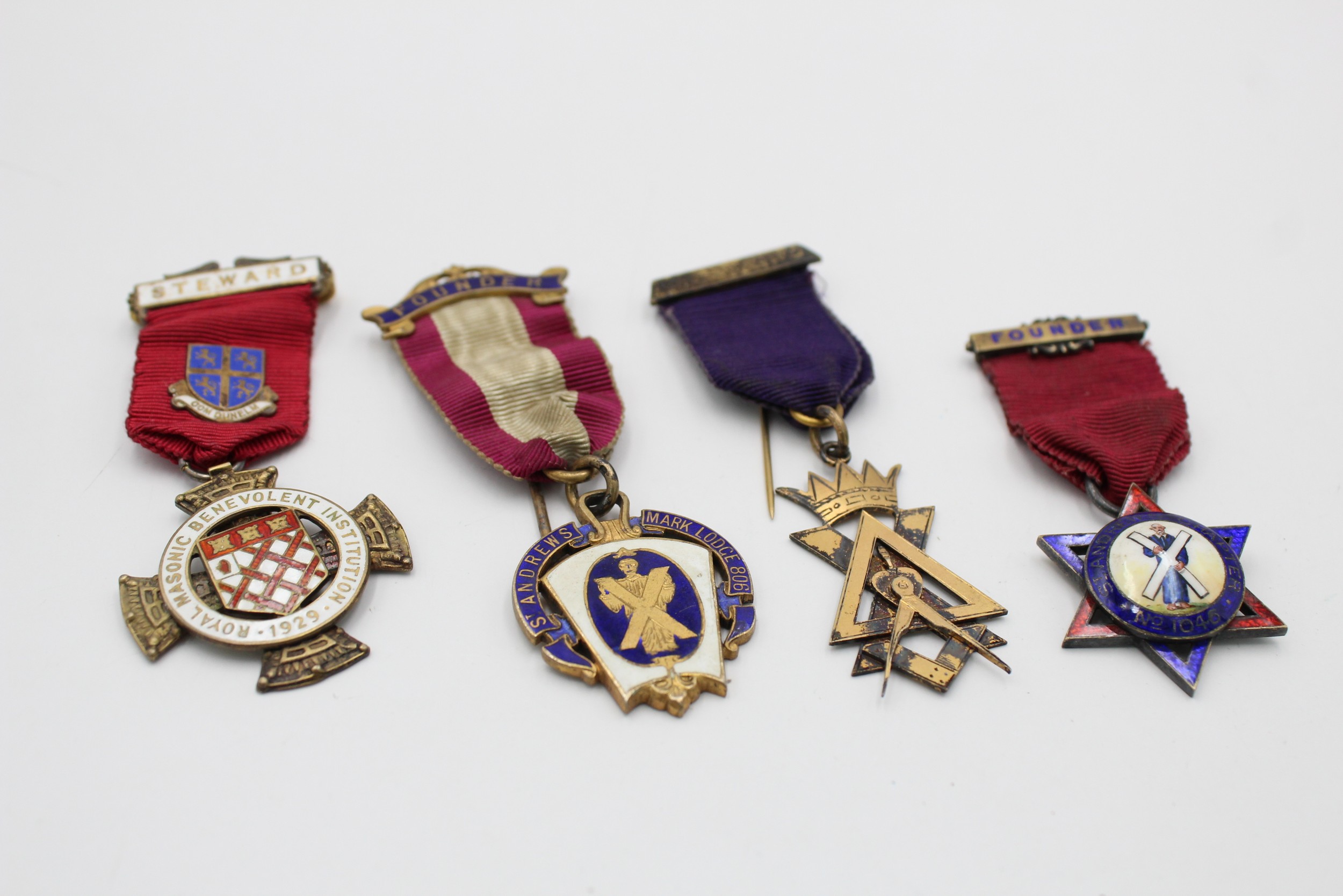 Vintage Hallmarked .925 STERLING SILVER Masonic Medals / Jewels Inc Scottish St Andrews, Founder Etc In vintage condition Signs of use & age Please see photographs