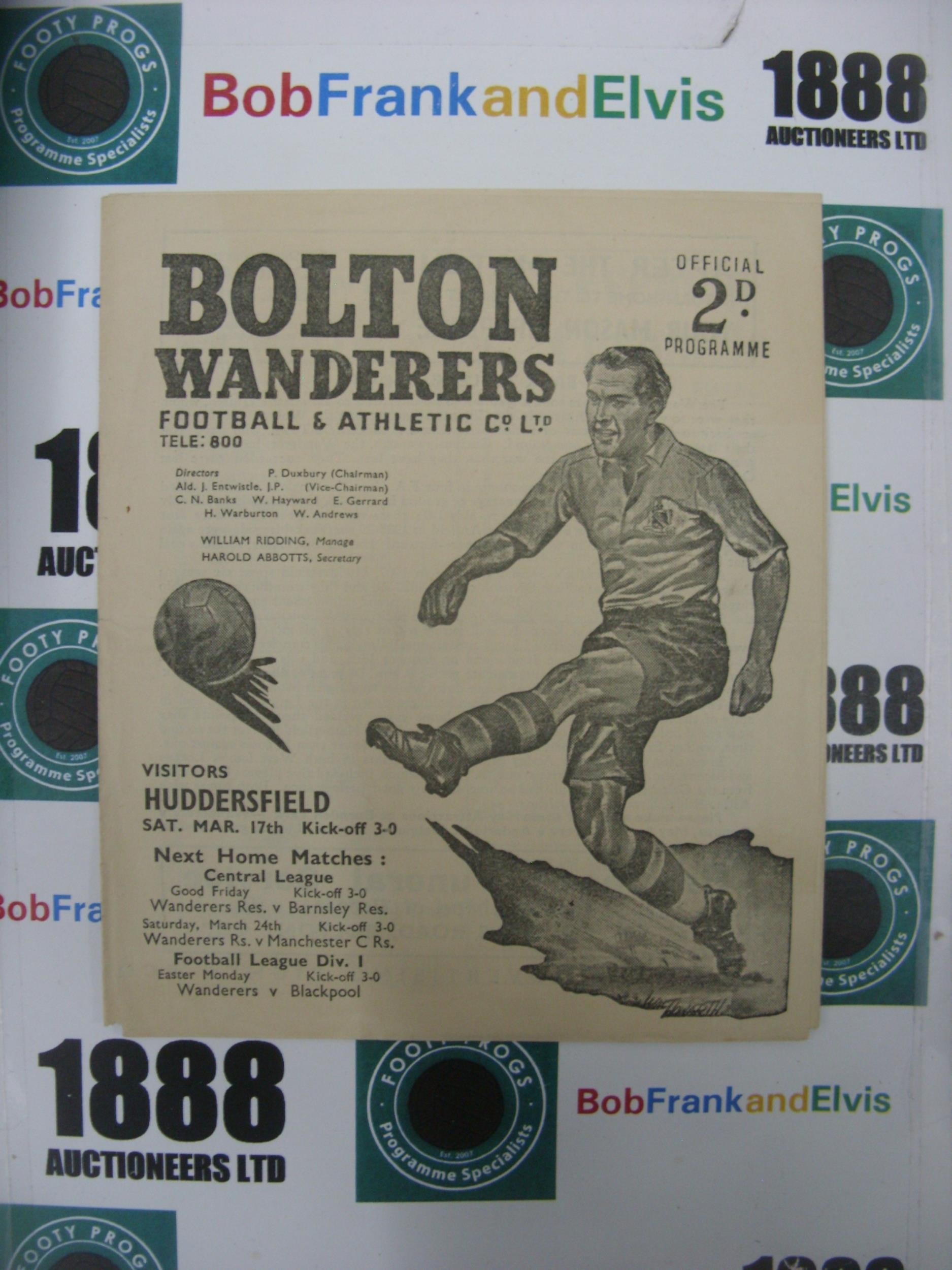 BOLTON WANDERERS, 1950/1951, a football programme from the game versus Huddersfield Town, played on 17/03/1951 (folded).