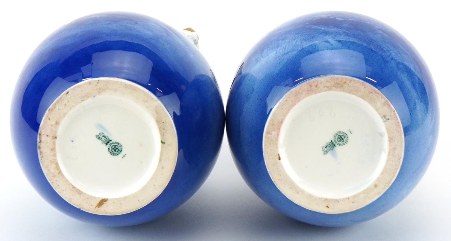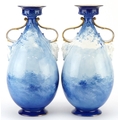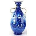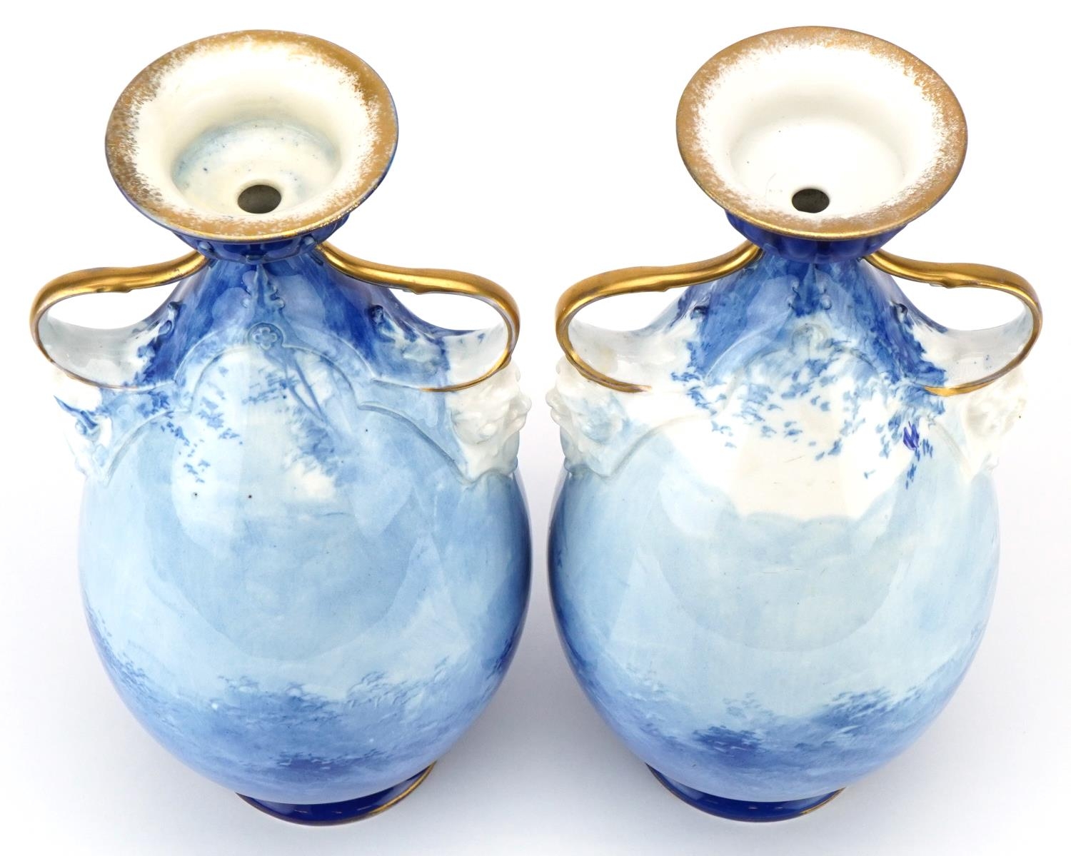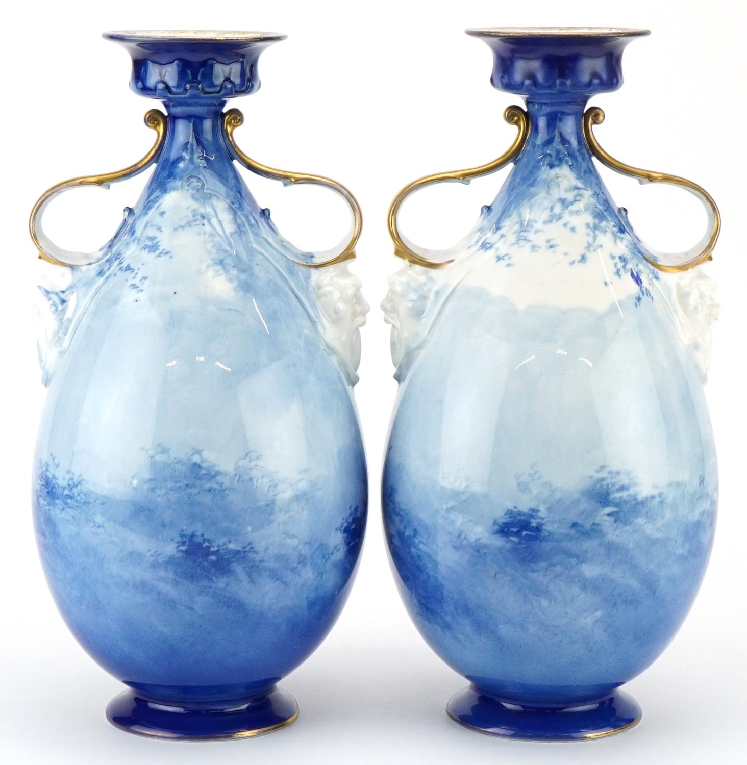 A pair of Royal Doulton Blue Children series ware vases with twin grotesque mask handles, 29.5cm high.