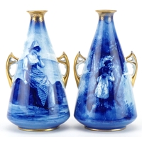 A pair of Royal Doulton Blue Children series ware vases with...