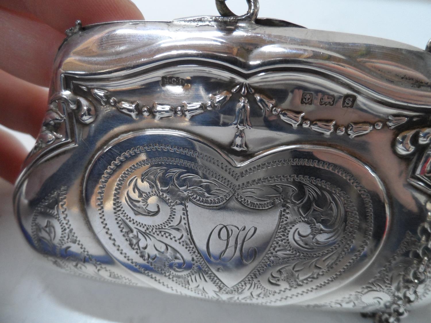 Finely engraved ladies Birmingham 1917 silver evening purse,...