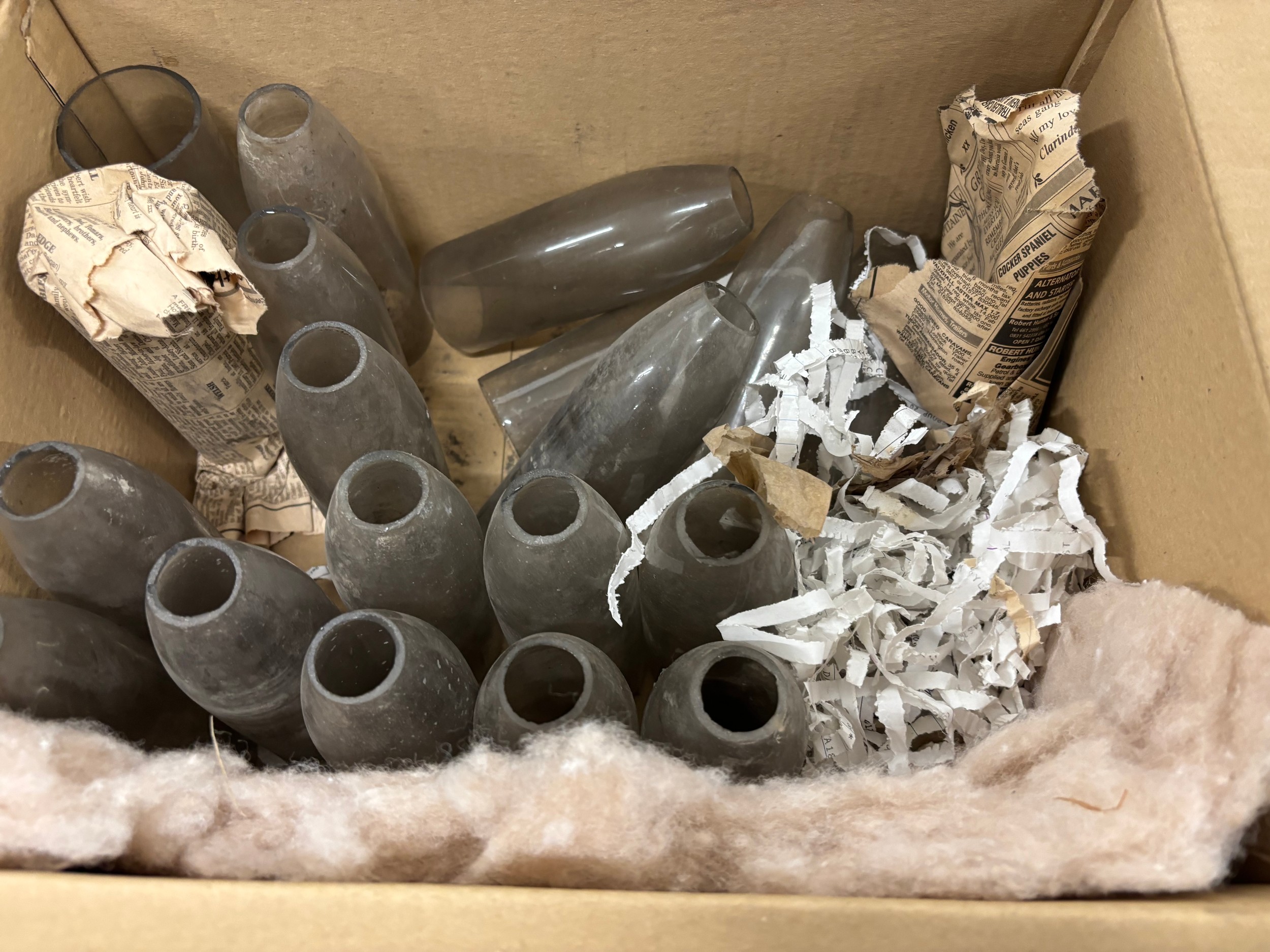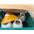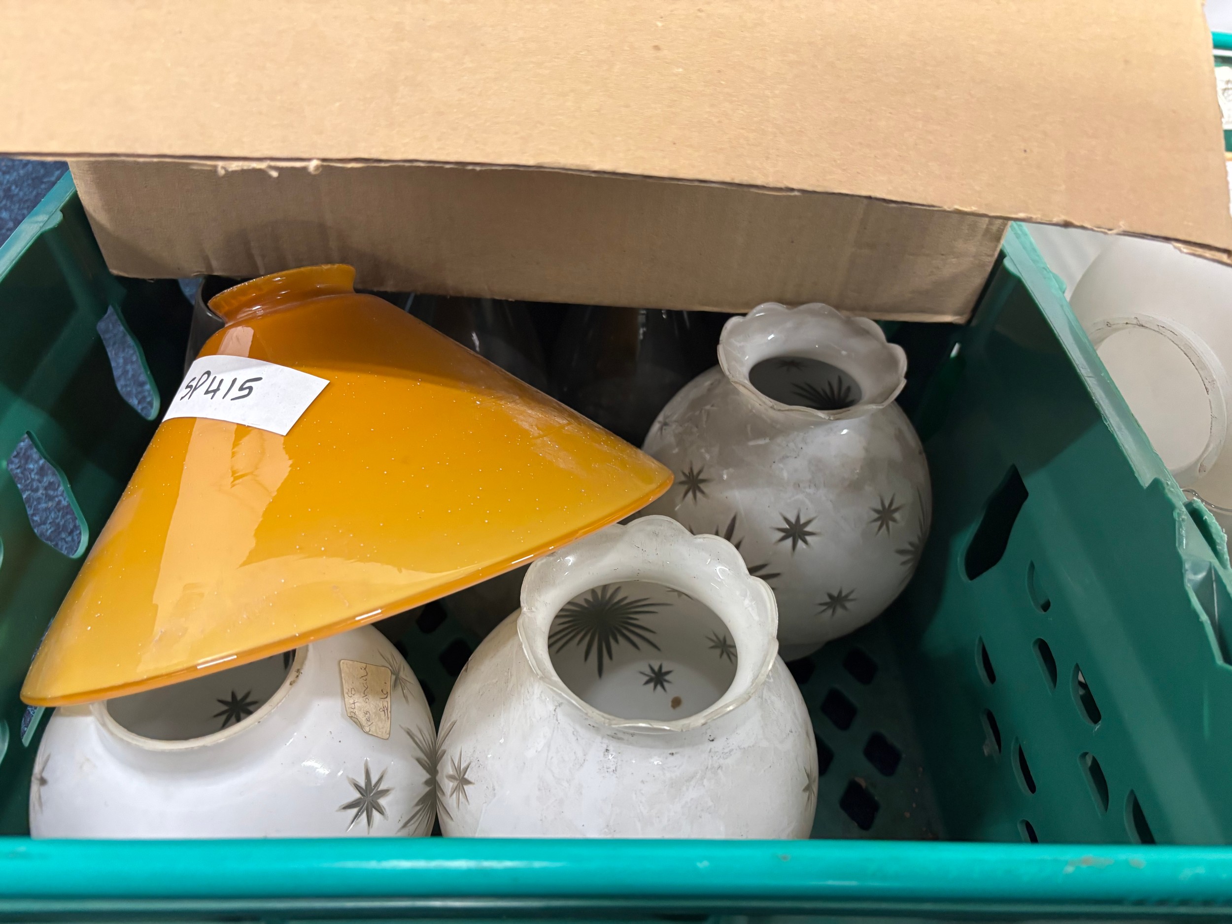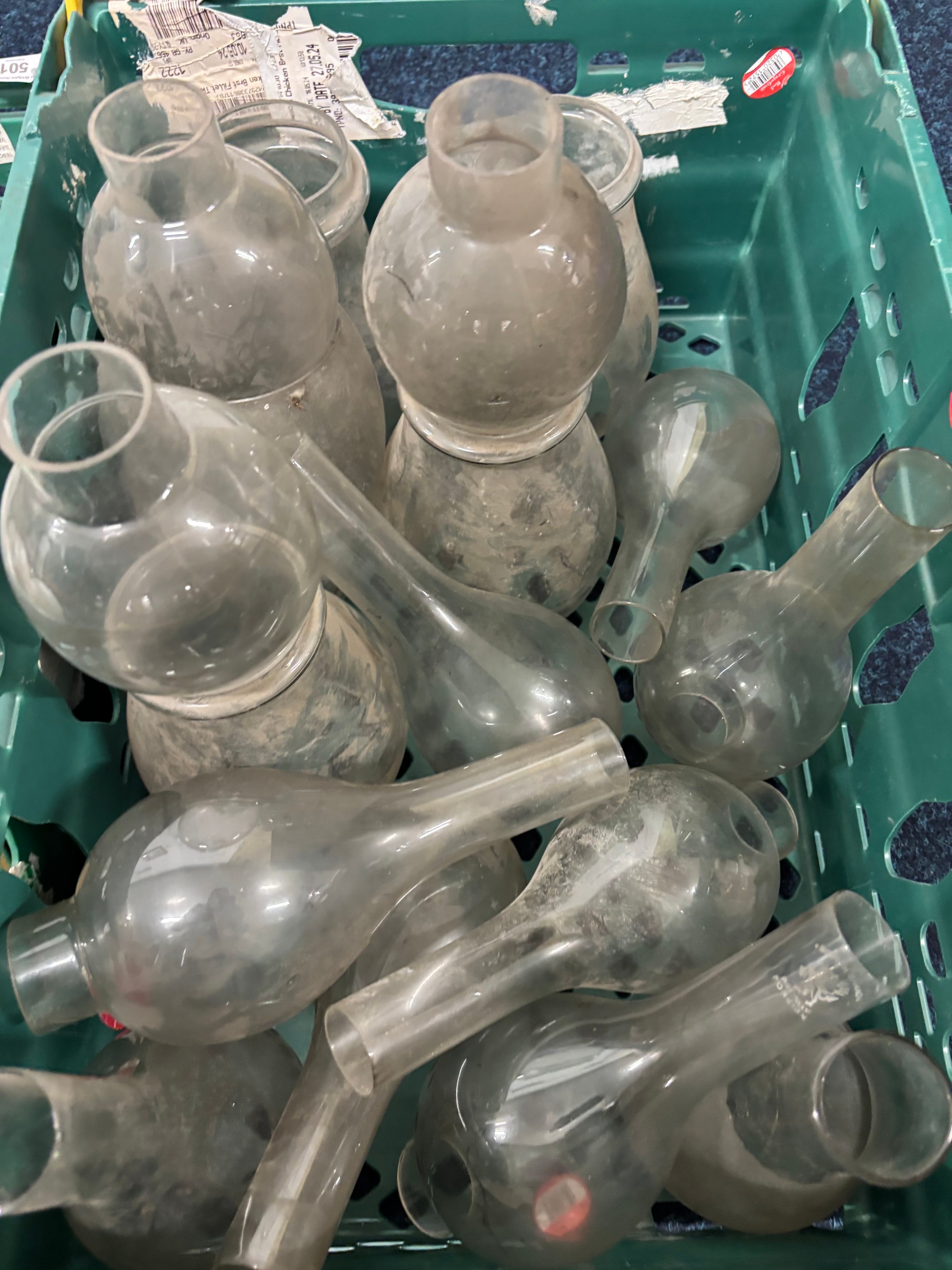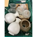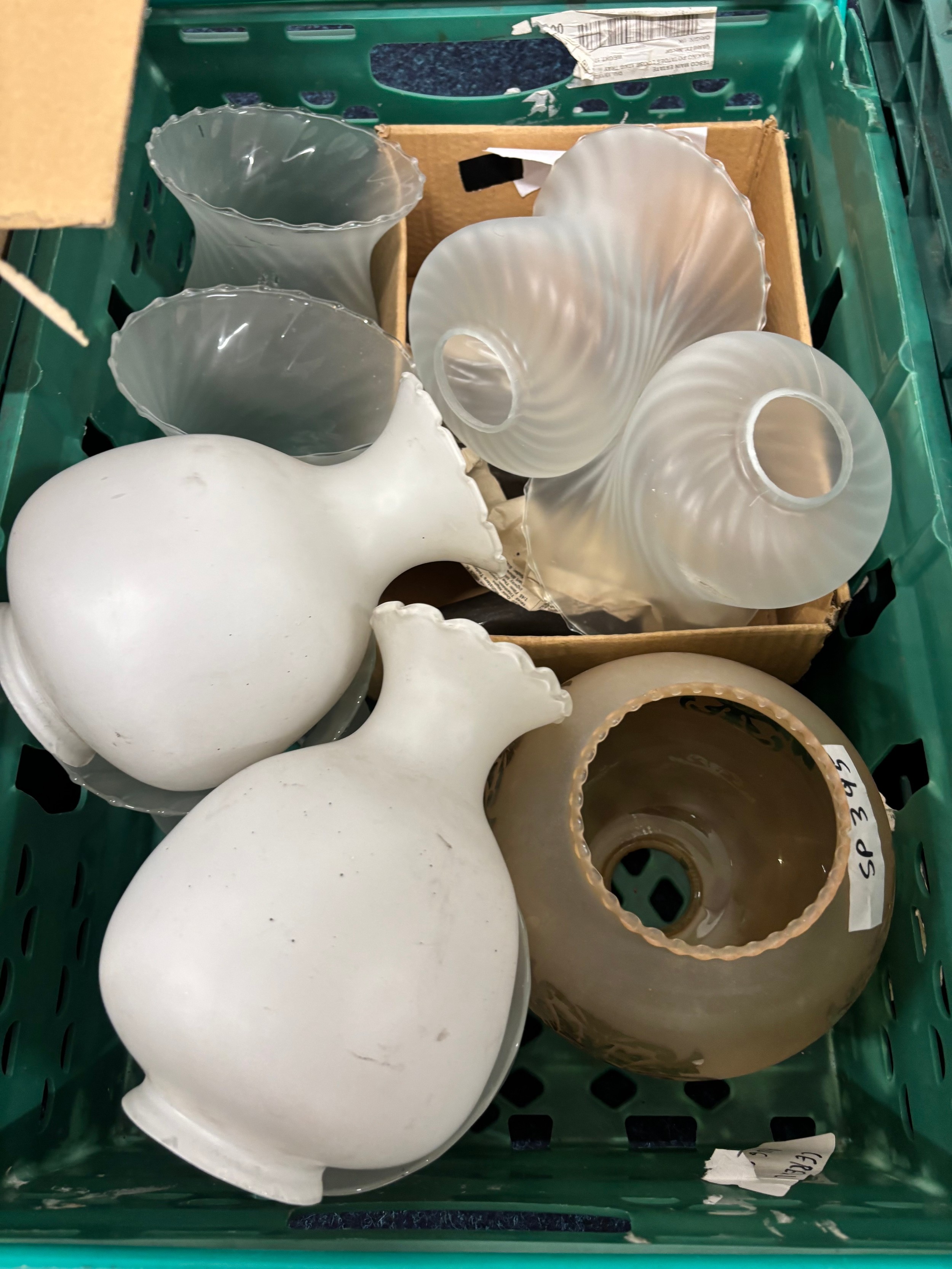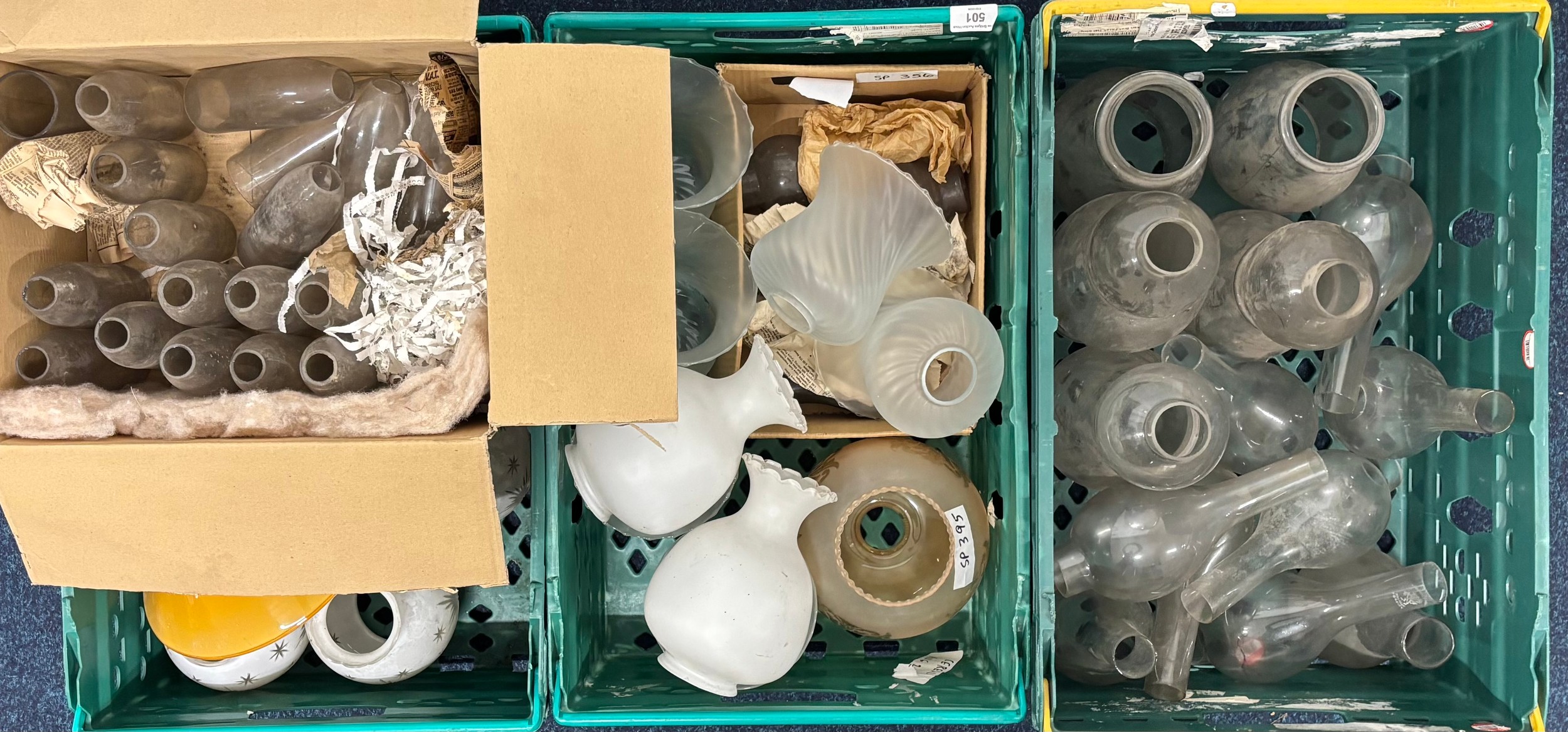 Three Crates and one box of Oil lamps funnels, Shades & fittings