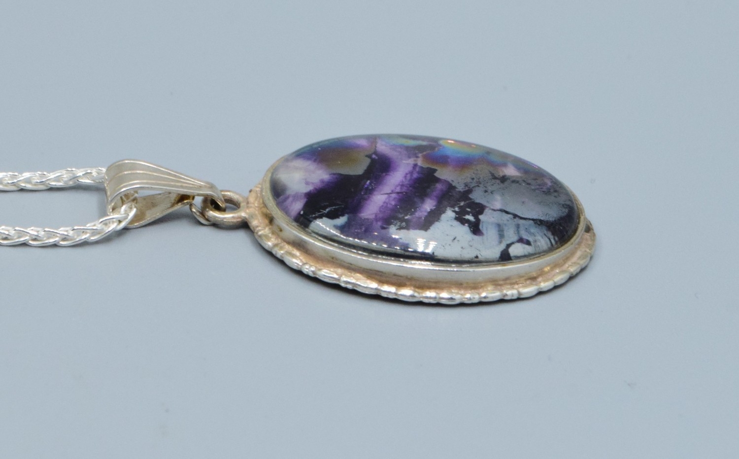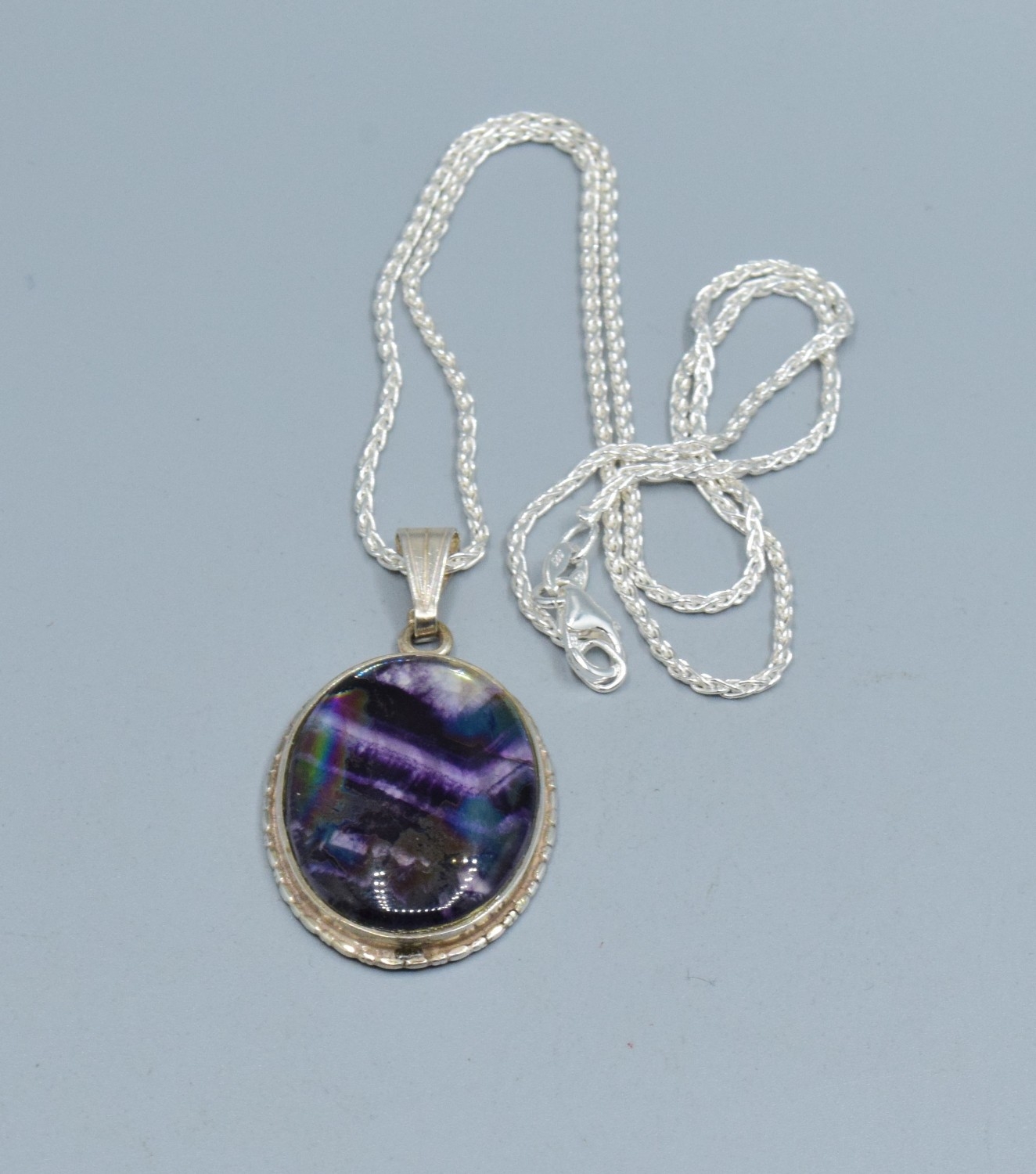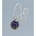 925 silver polished Amethyst effect pendant necklace on a new 925 silver neck chain