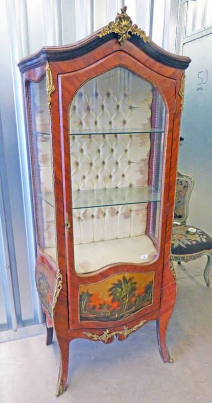 EARLY 20TH CENTURY CABINET WITH SHAPED DECORATED FRONT & ORMOLU MOUNTS, MAX. HEIGHT 174CM