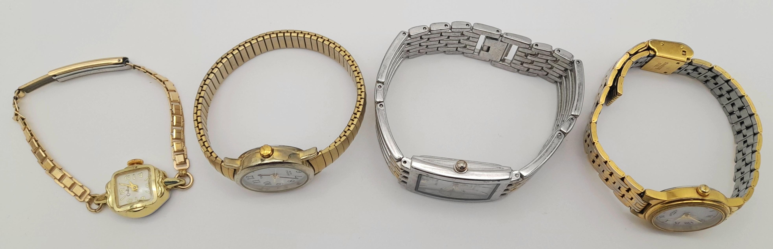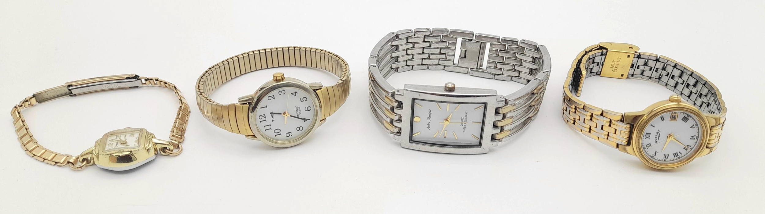 A collection of four watches, featuring brands such as Rotary and Timex, as found