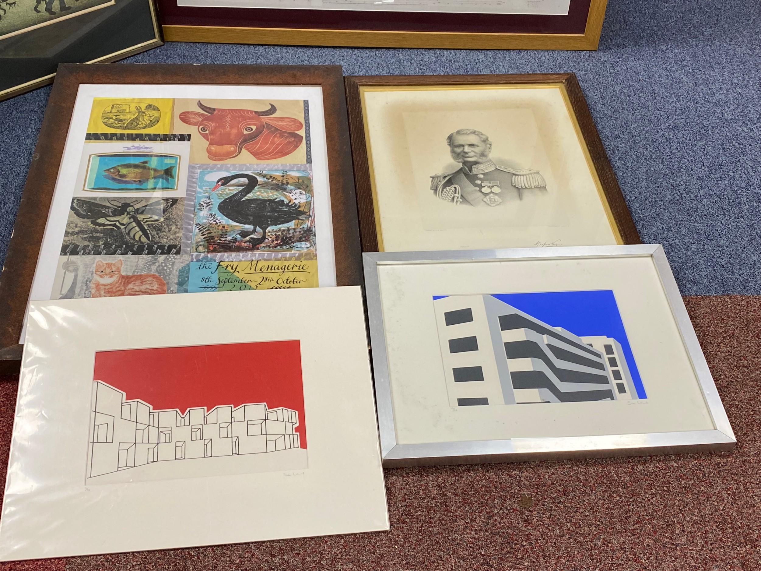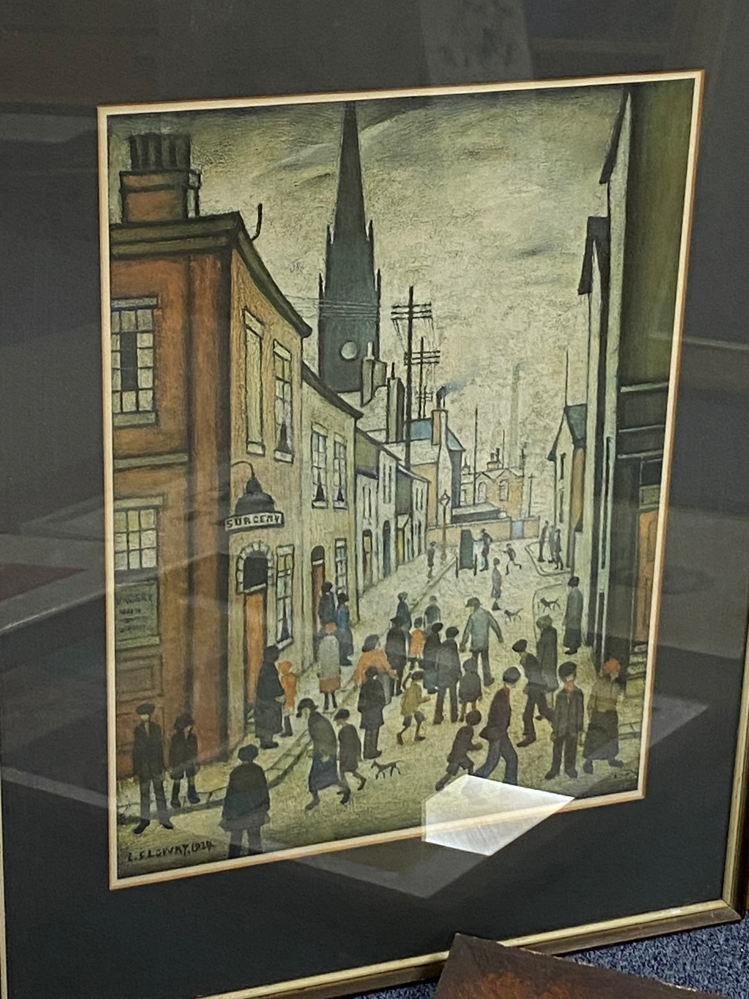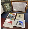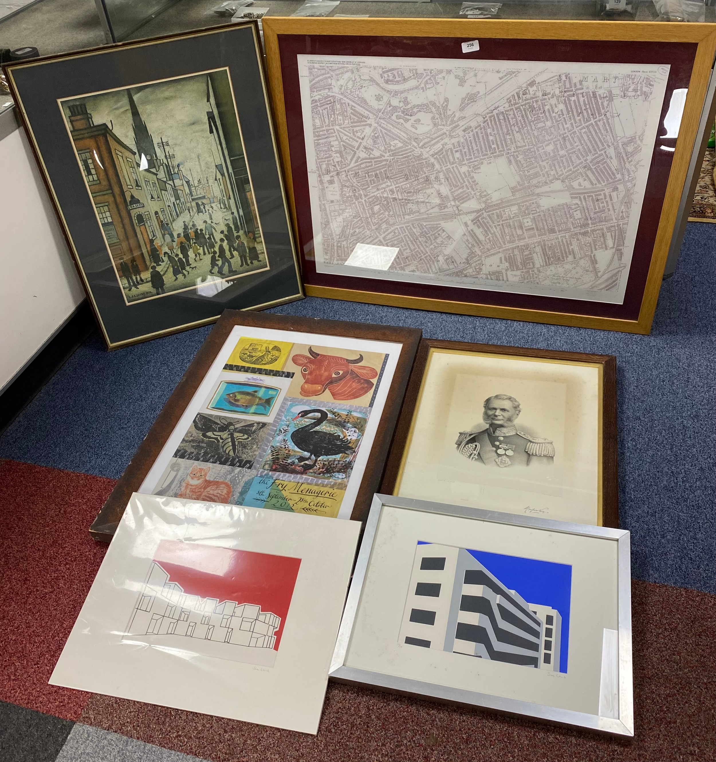 A mixed lot of prints, to include 'Organ Grinder' print after LS Lowry -