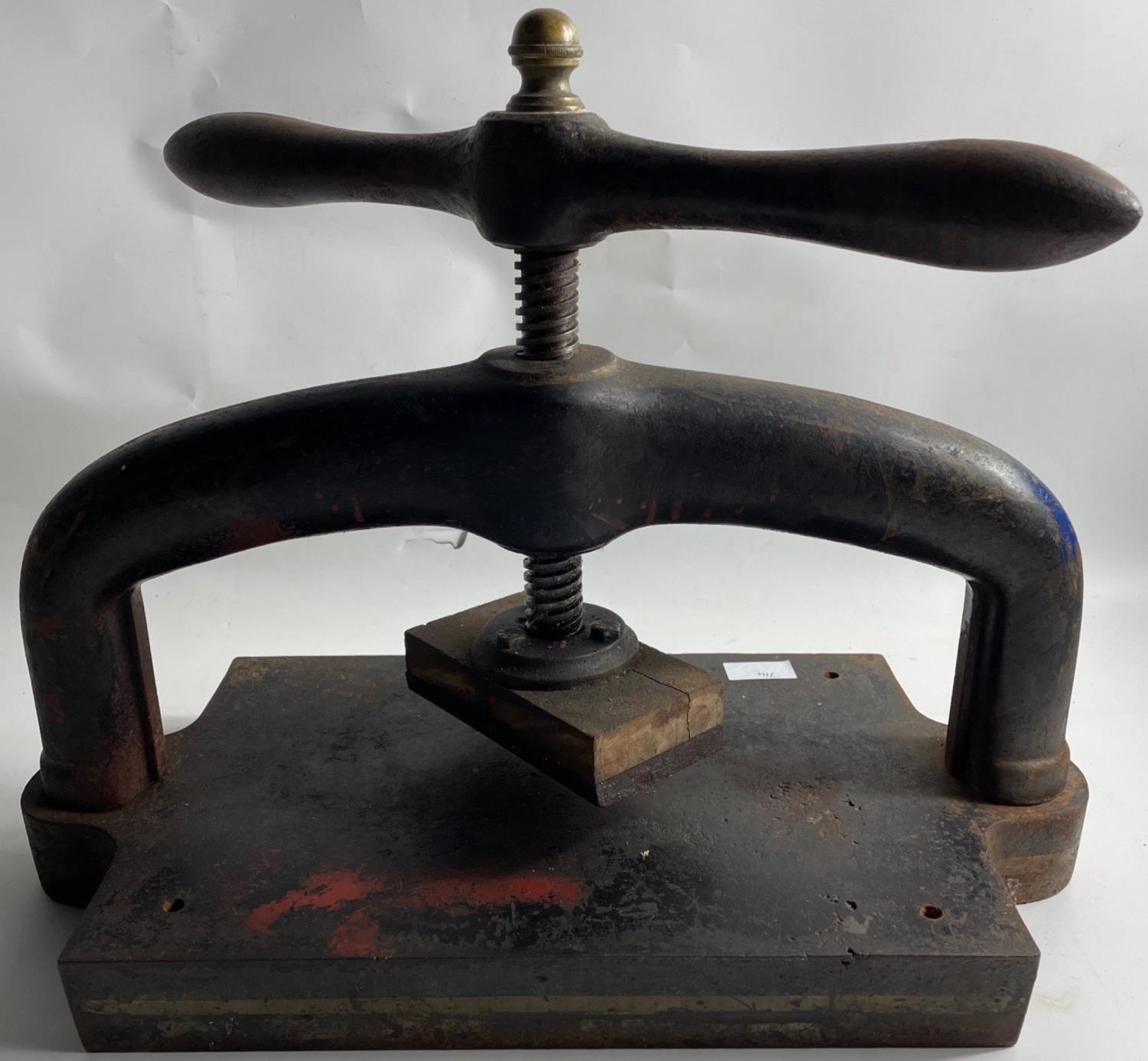 UNUSUAL to find - an antique bookbinding press. This a solid piece of iron measuring approx. 45 x 50cm. Weighs a ton!
