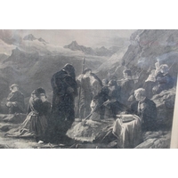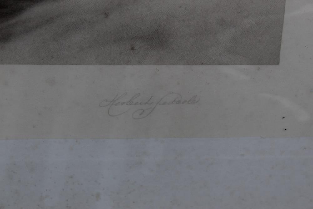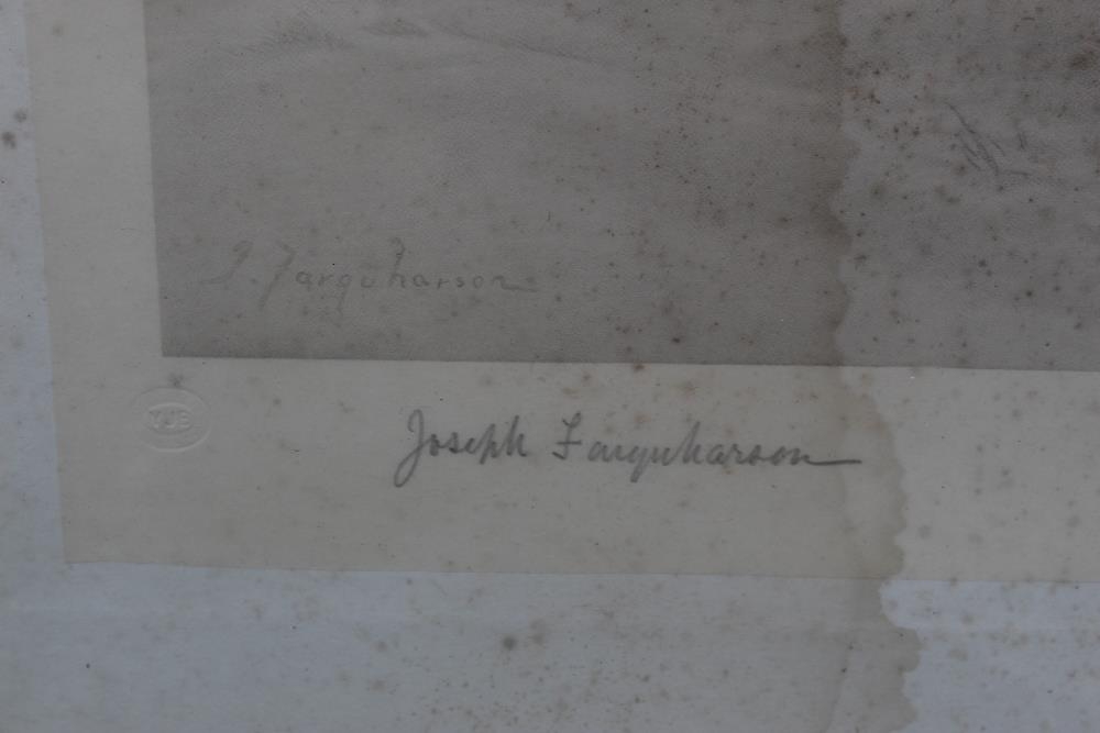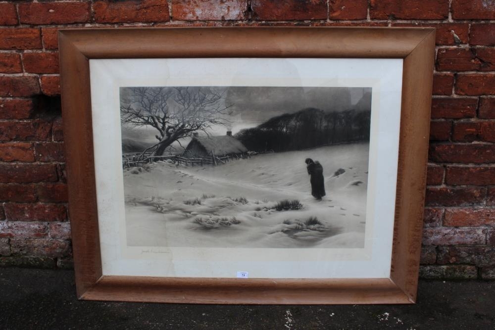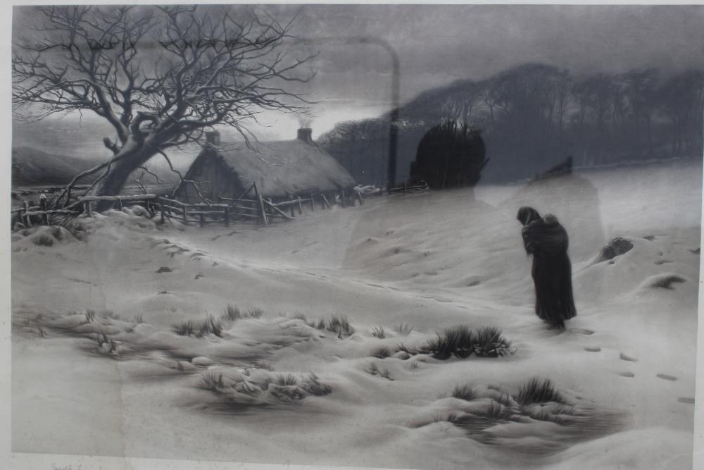 JOSEPH FARQUARSON. A wooded winter landscape with figure and thatched cottage. Signed in pencil lower left, engraving 1906 on paper, framed and glazed, 64 x 90 cm