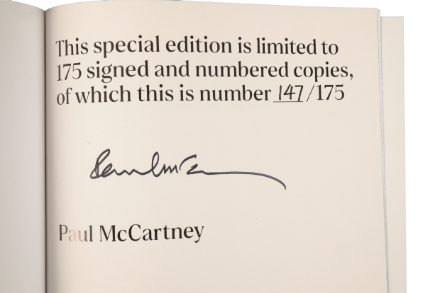 PAUL MCCARTNEY (B. 1942): 'The Lyrics: 1956 to the Present' special edition limited to 175 signed and numbered copies, of which this is 147/175, with the accompanying exclusive print of the lyrics for "When I'm 64", hardback two volume set in embossed orange clamshell case, publ. Allen Lane, 2021, together with the rare tote bag that was sold with the book only through independent book stores, in original box and packaging