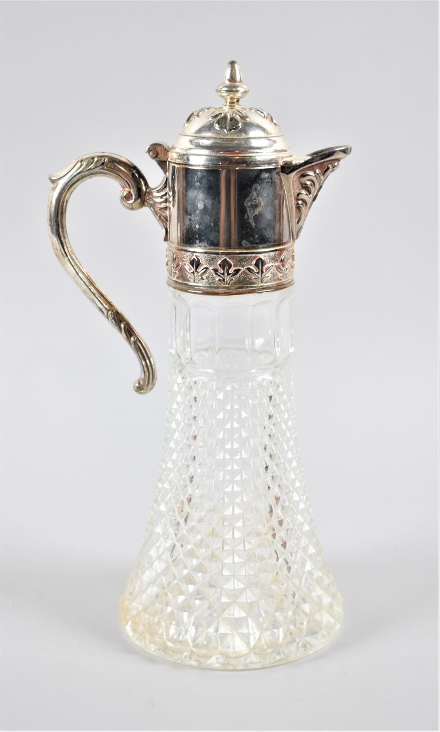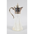 A Silver Plate Topped Moulded Glass Claret Jug, 31cm high