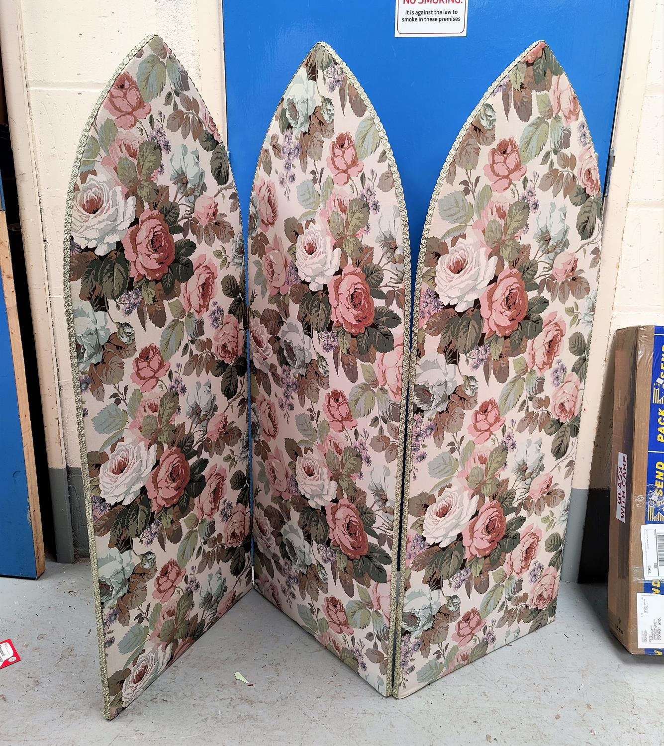 A 3-fold vanity screen; linen 124cm high
