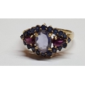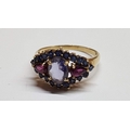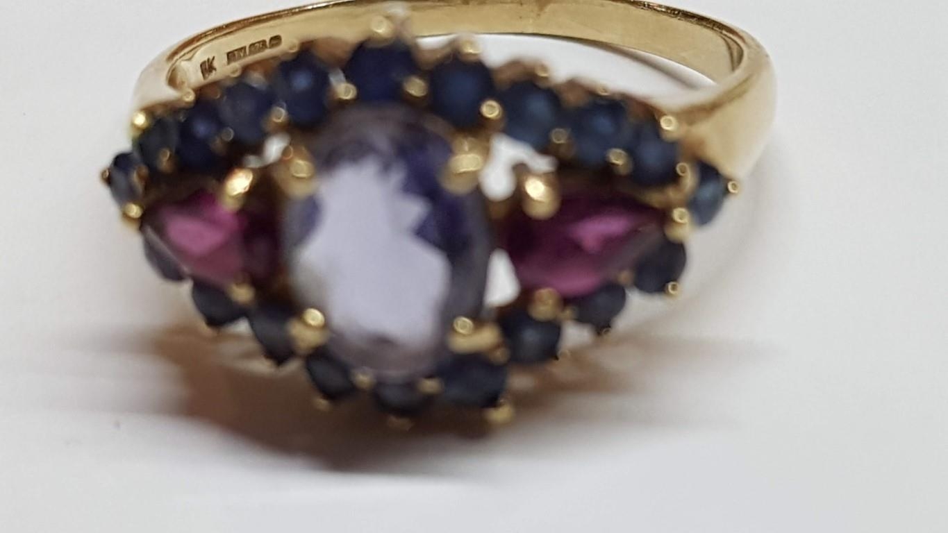 Vintage Style Yellow Gold 9ct with Purple Colour Natural Stones (Amethyst, Ruby, Sapphire), Size R, Total Weight 3.2gr