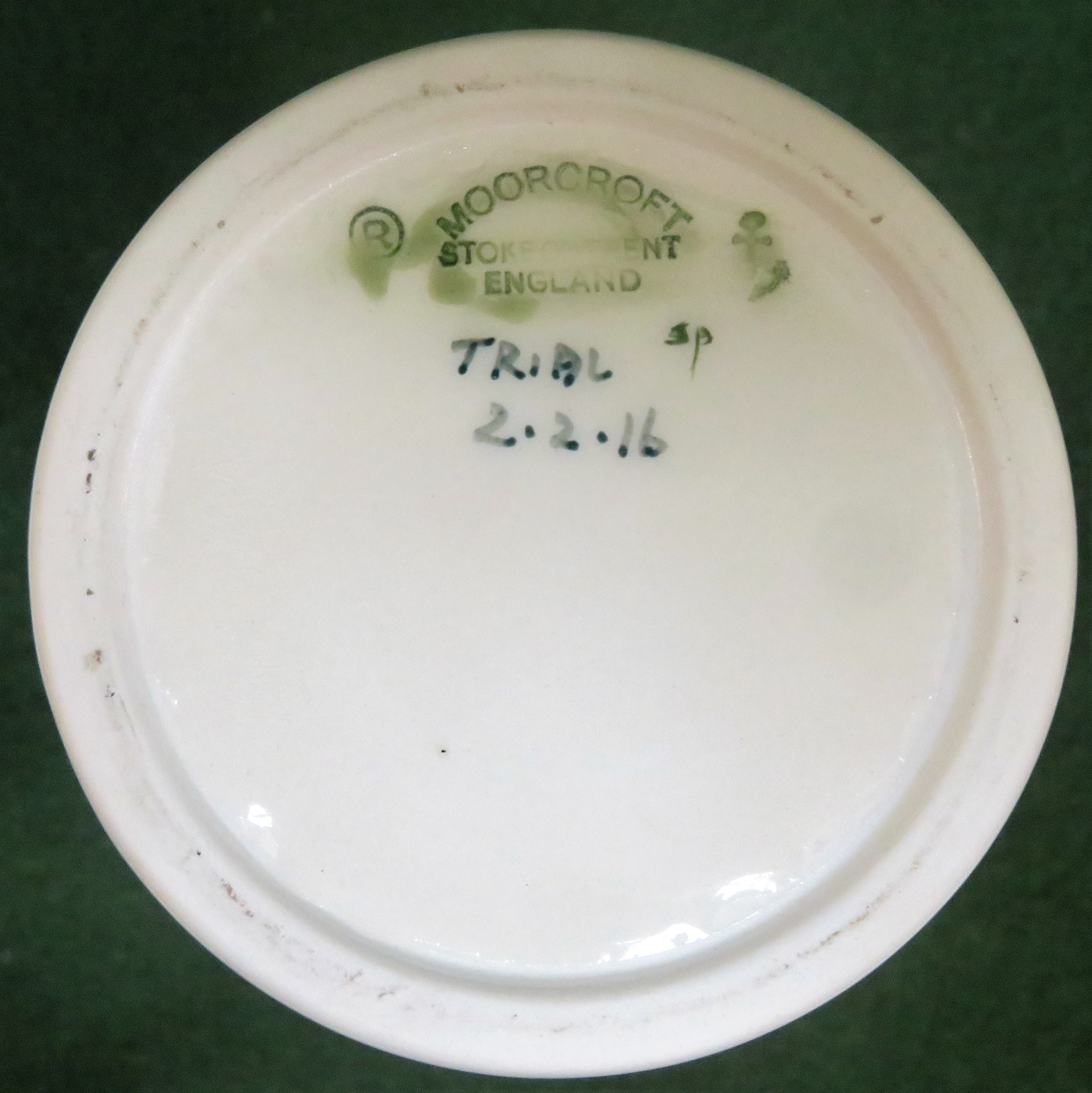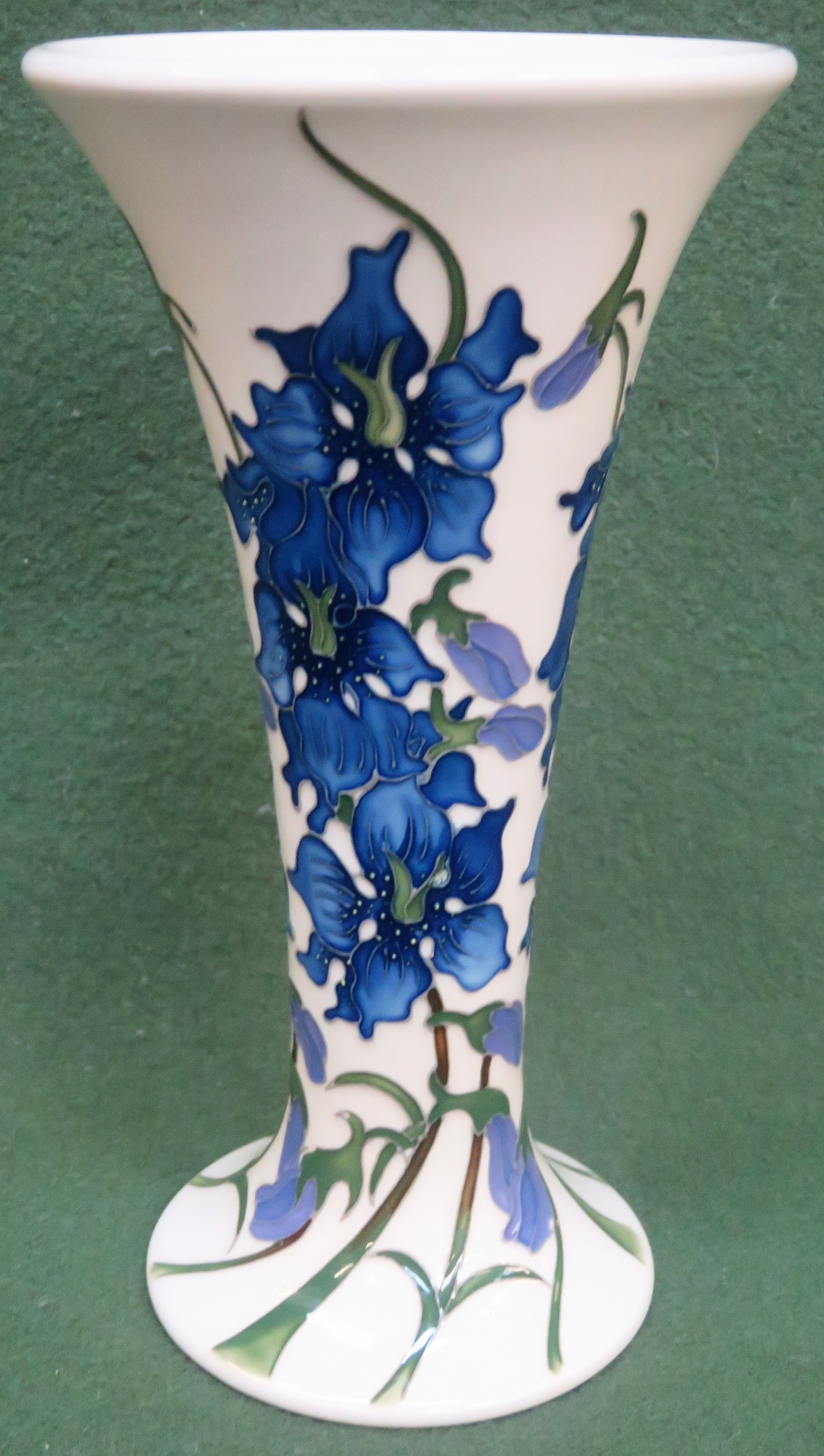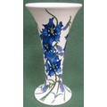 Moorcroft Trial Piece - Tube line and glazed 'Delphinium' pattern ceramic vase, dated 2.2.16. Approx. 21.5cms H