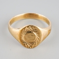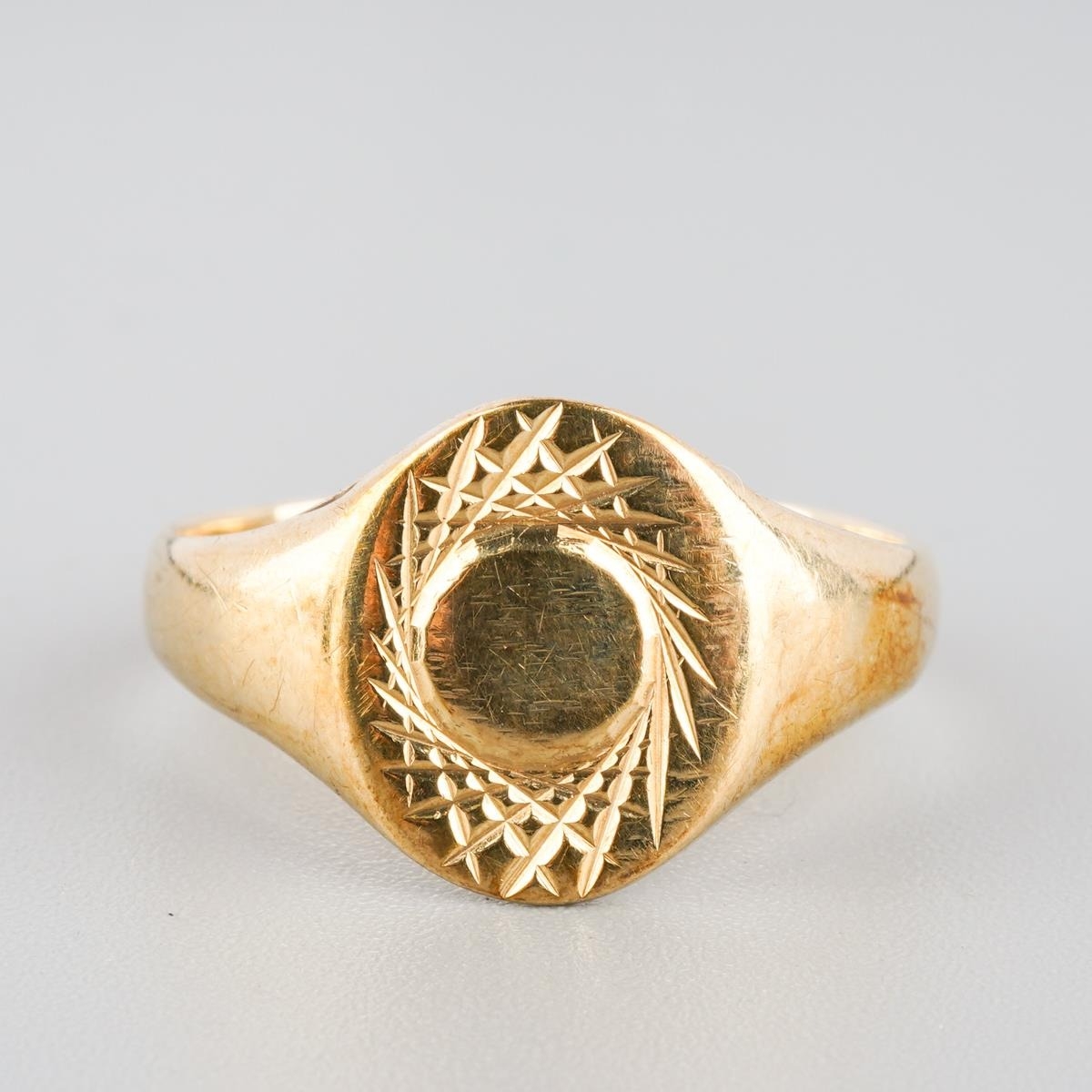 A 9ct gold signet ring. Hallmark 9ct gold, approx ring size N 1/2, approx gross weight 2.5 grams.